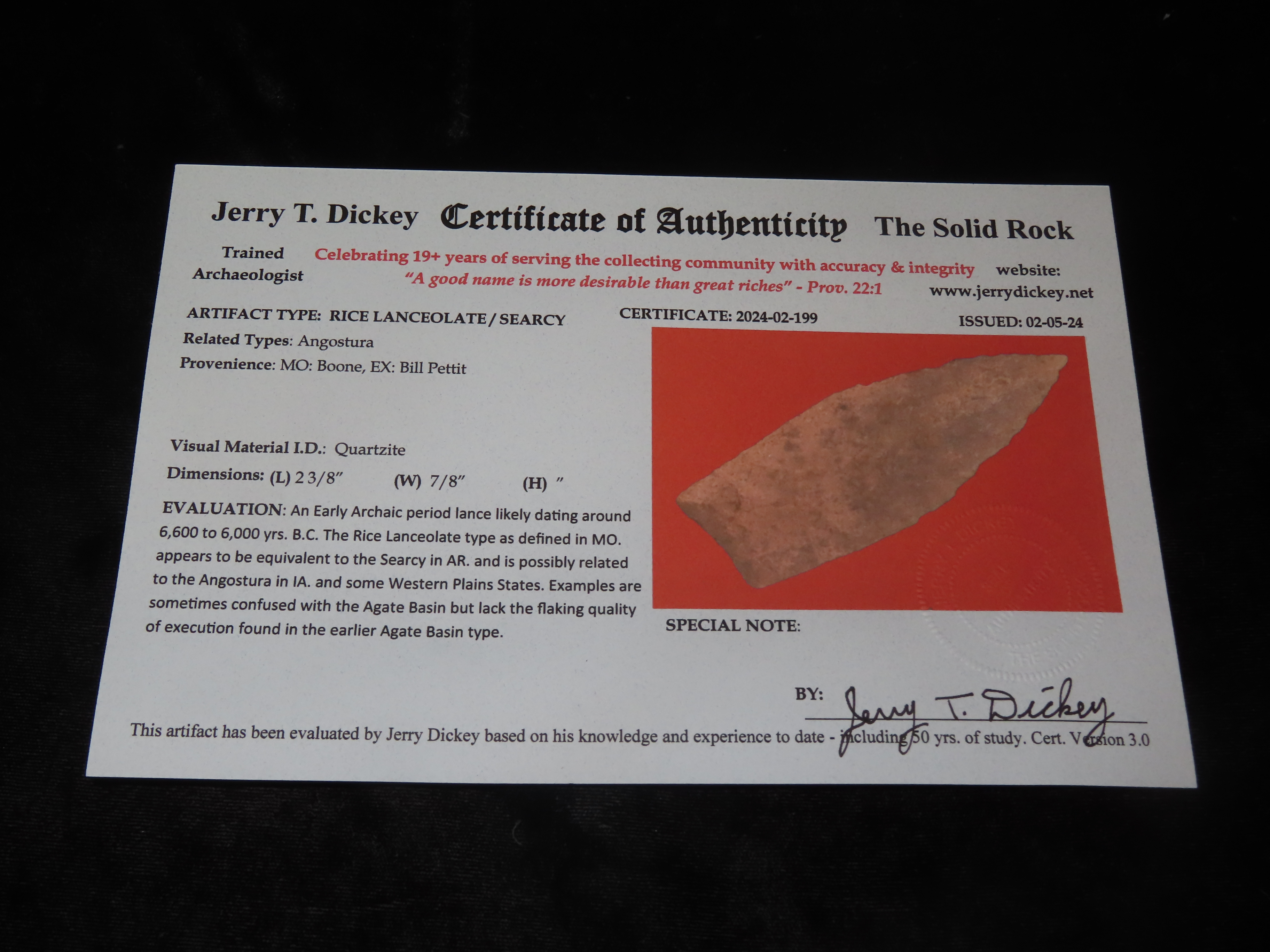 2 3/8″ Angostura, Quartzite, Dickey COA, EX Bill Pettit, Missouri Boone