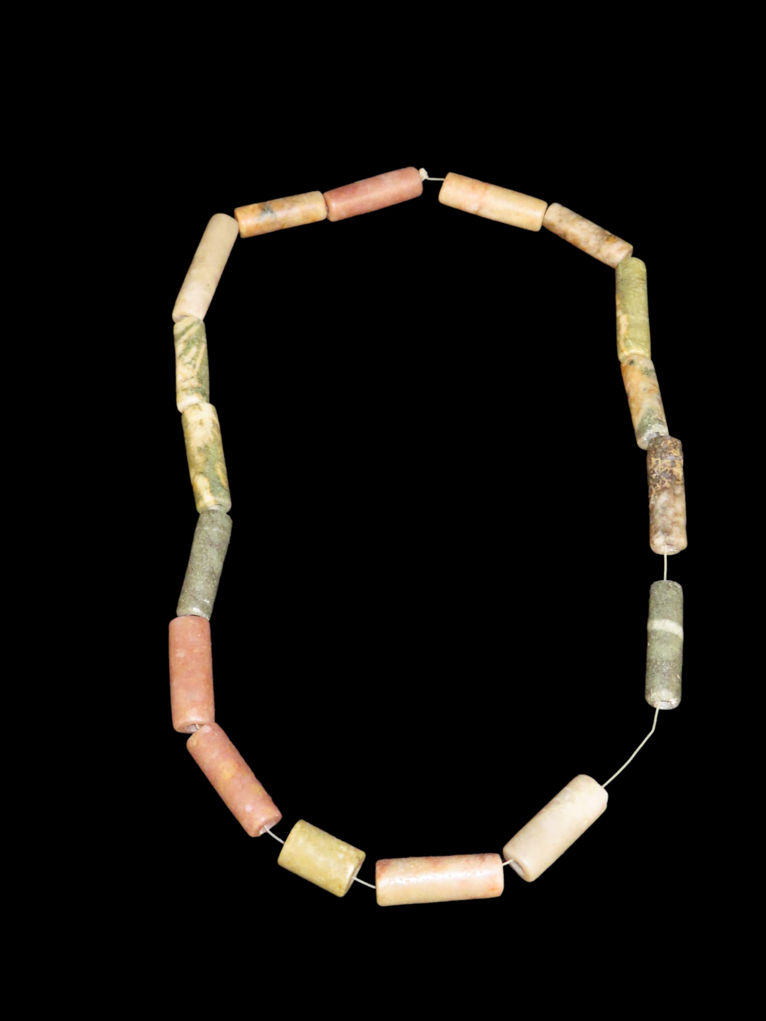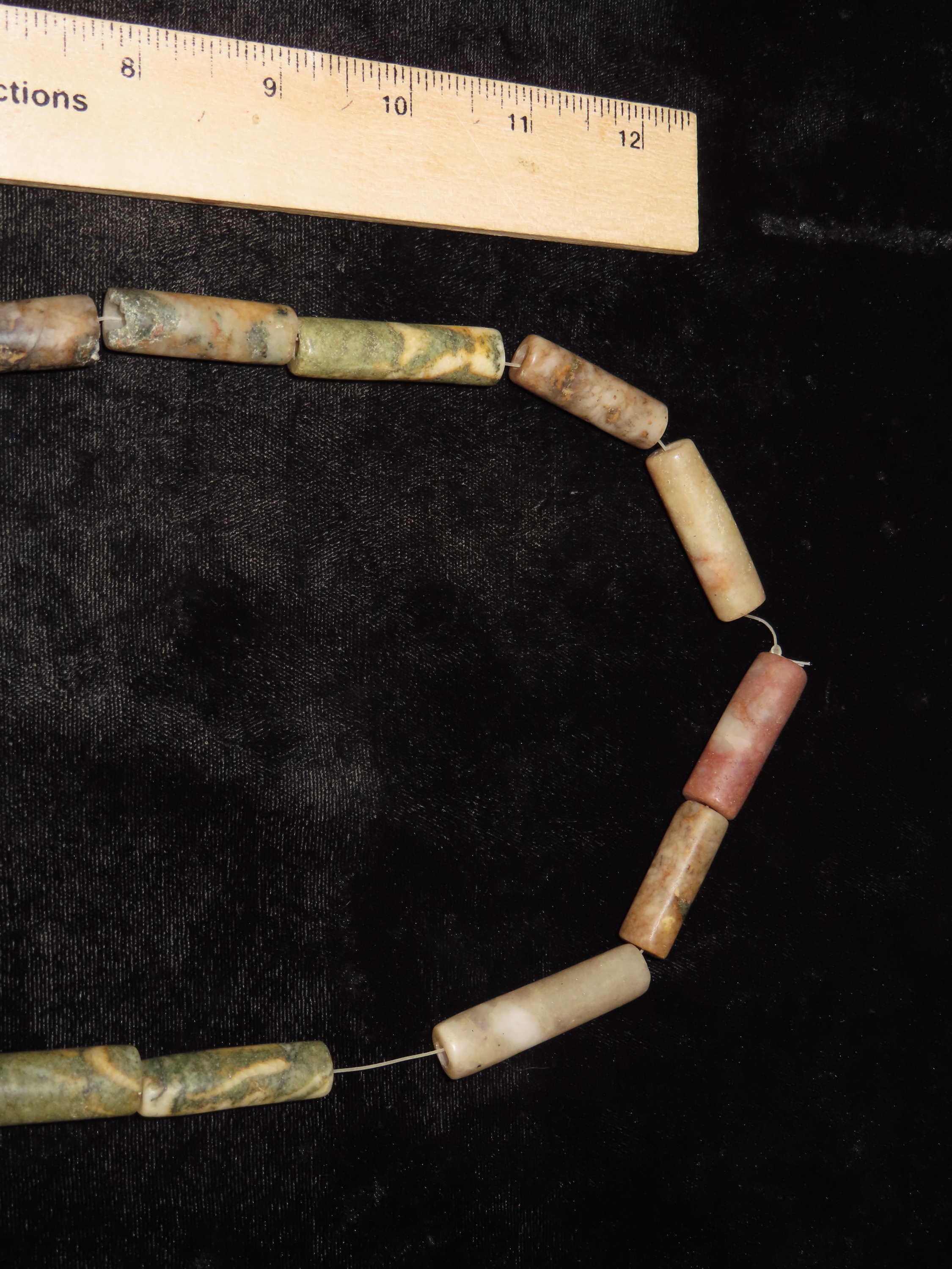 24″ long, Superior Pre-Columbian Tube Bead Necklace, Jade/Quartz/Jasper, Columbia