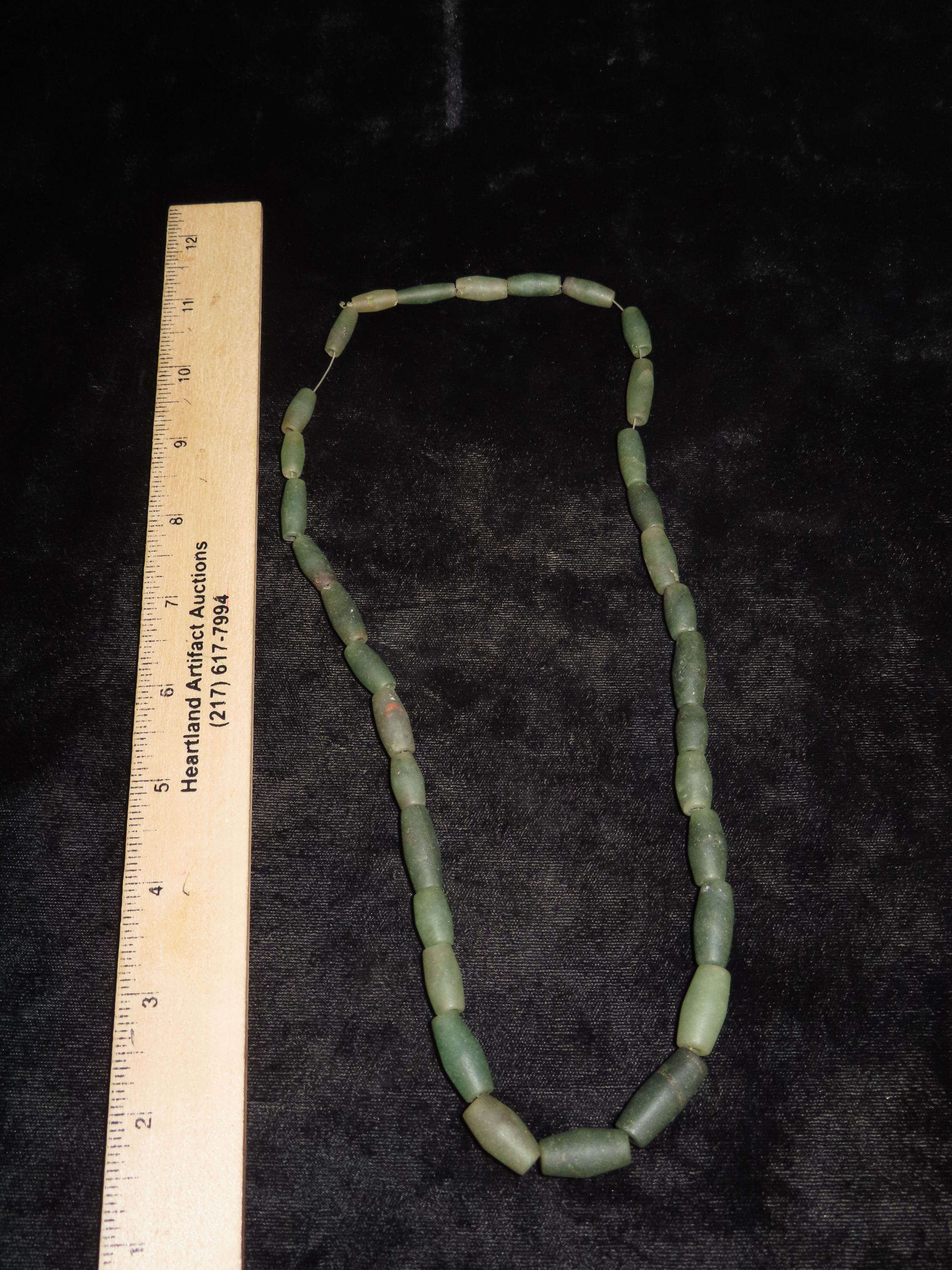 Superior Pre Columbian Jade Bead Necklace 23″ Long