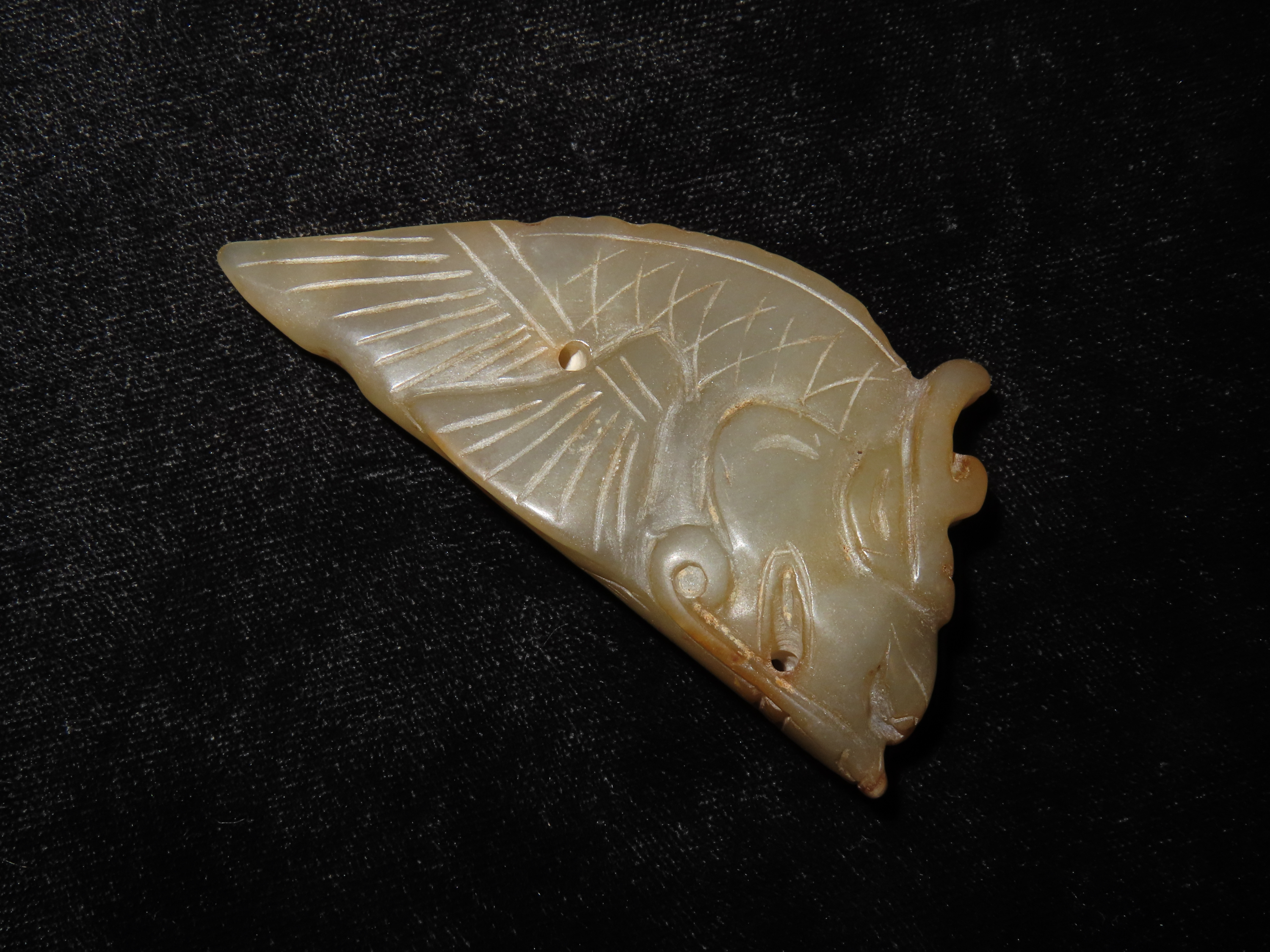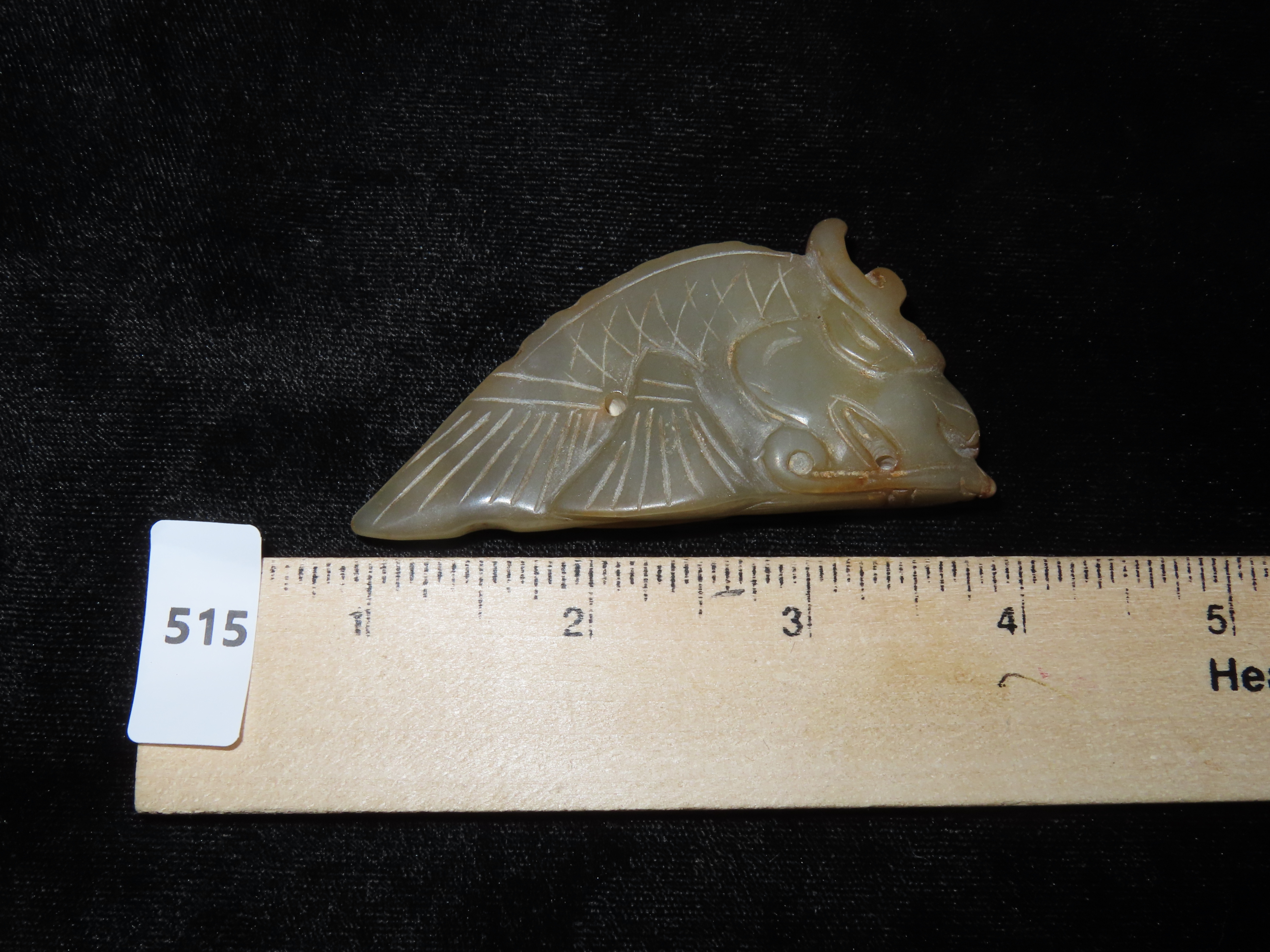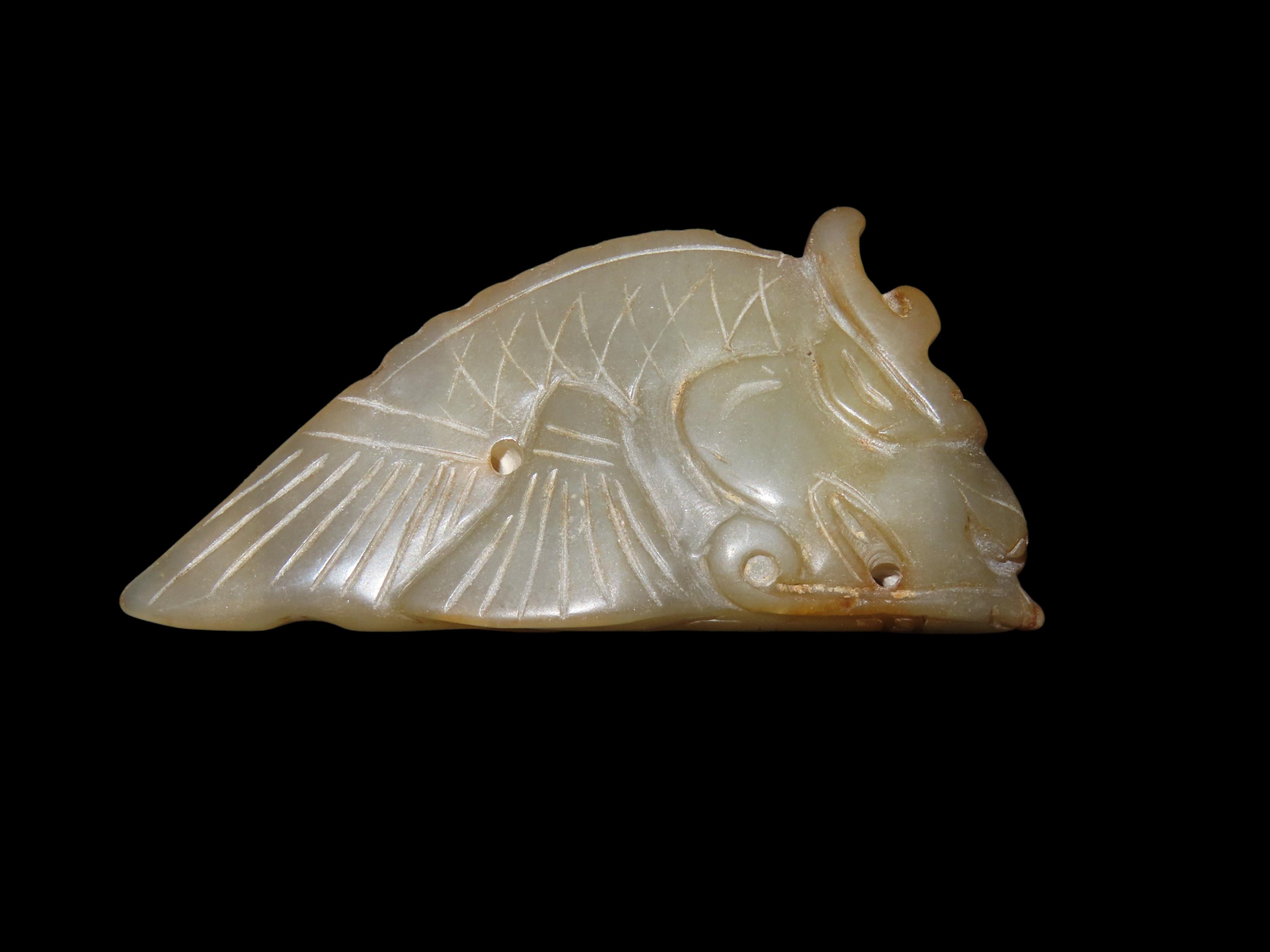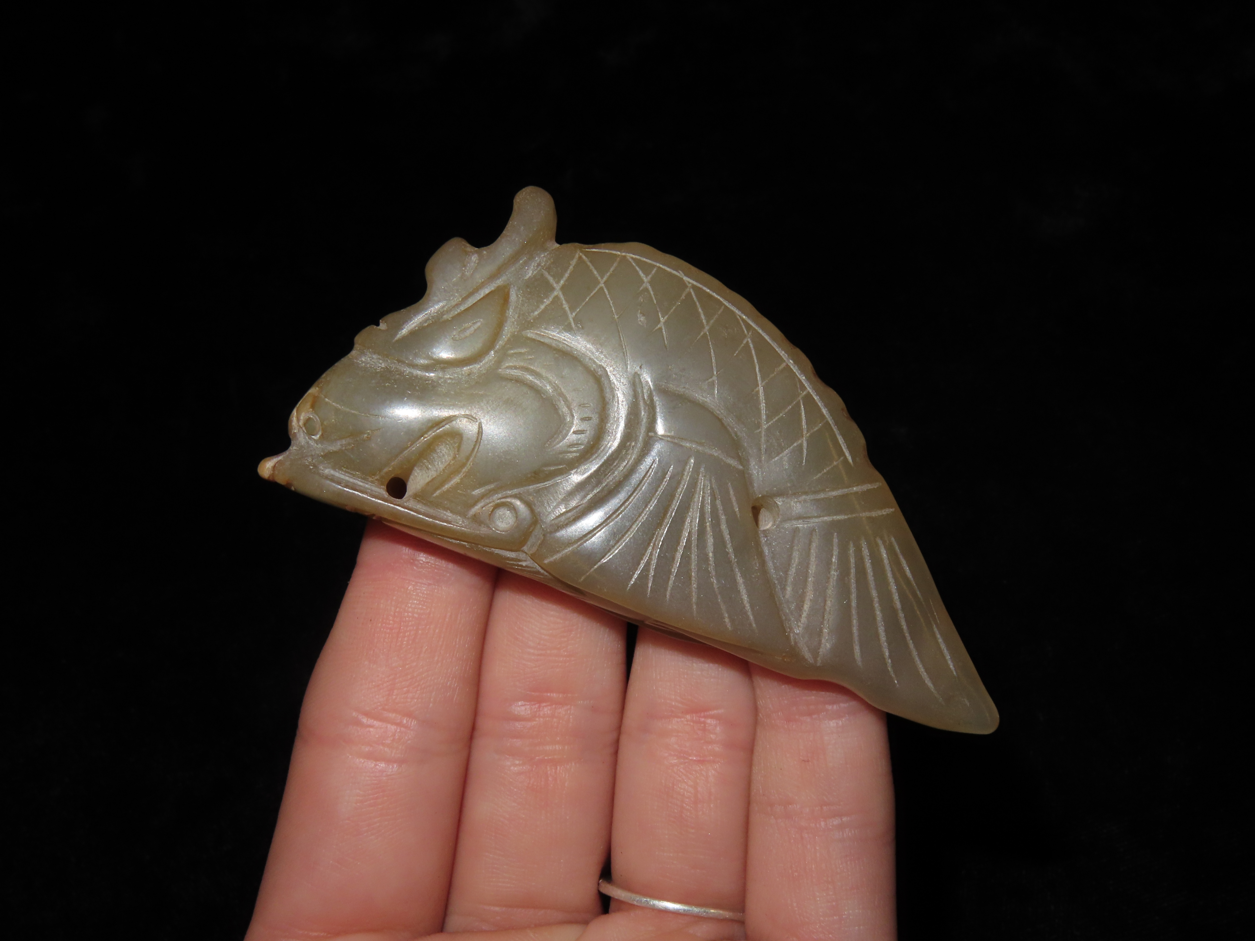 Hand Carved Chinese Jade Pendant, Dragon Head Fish Effigy