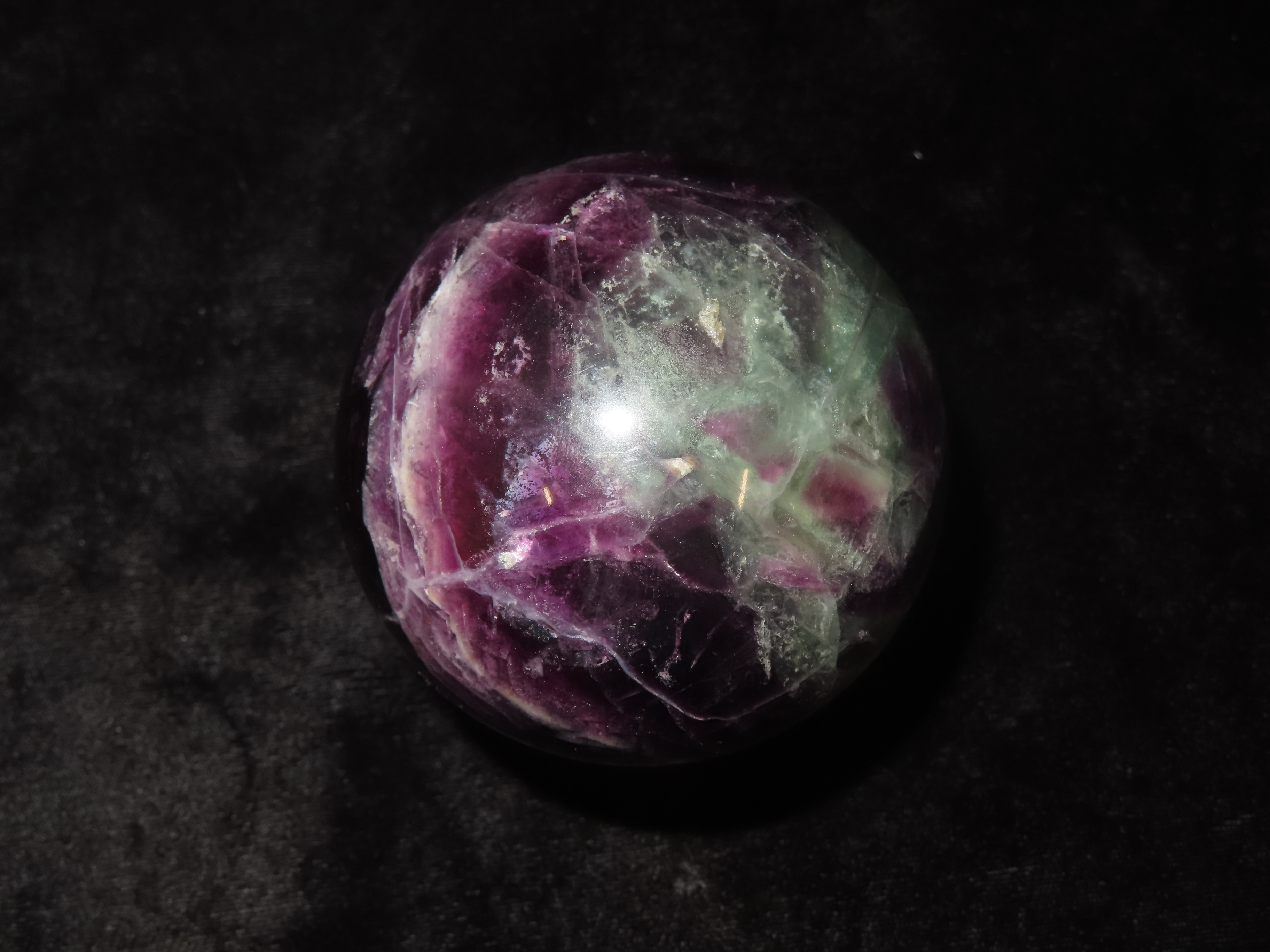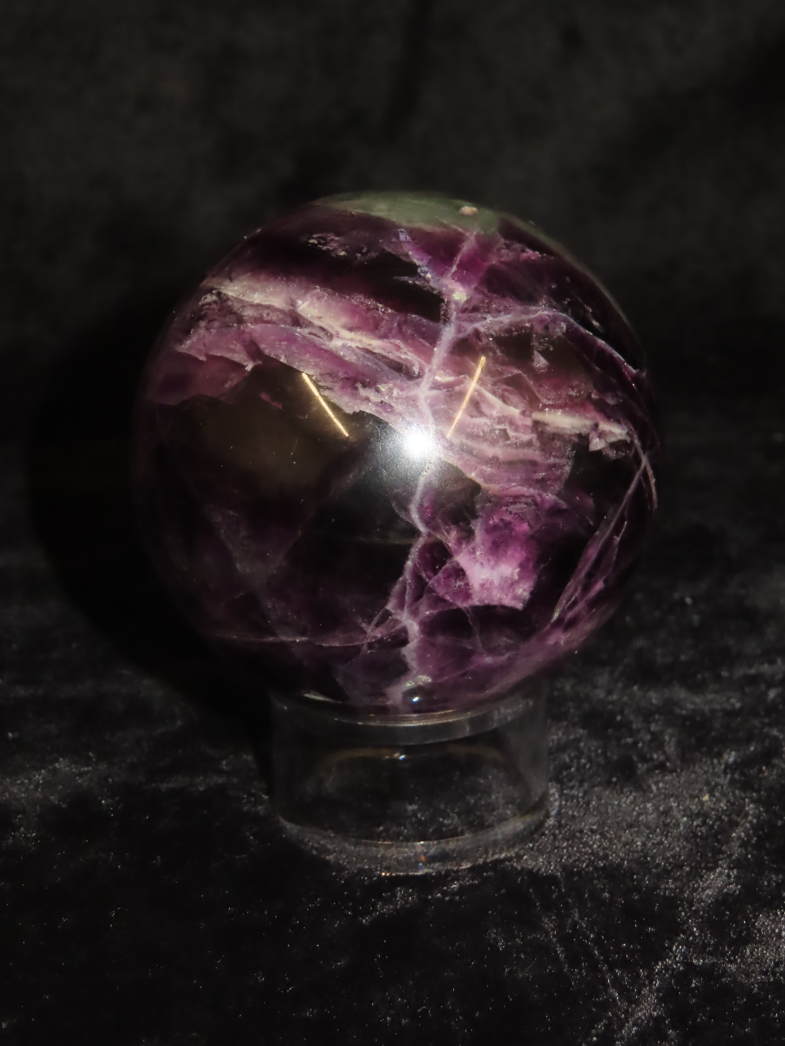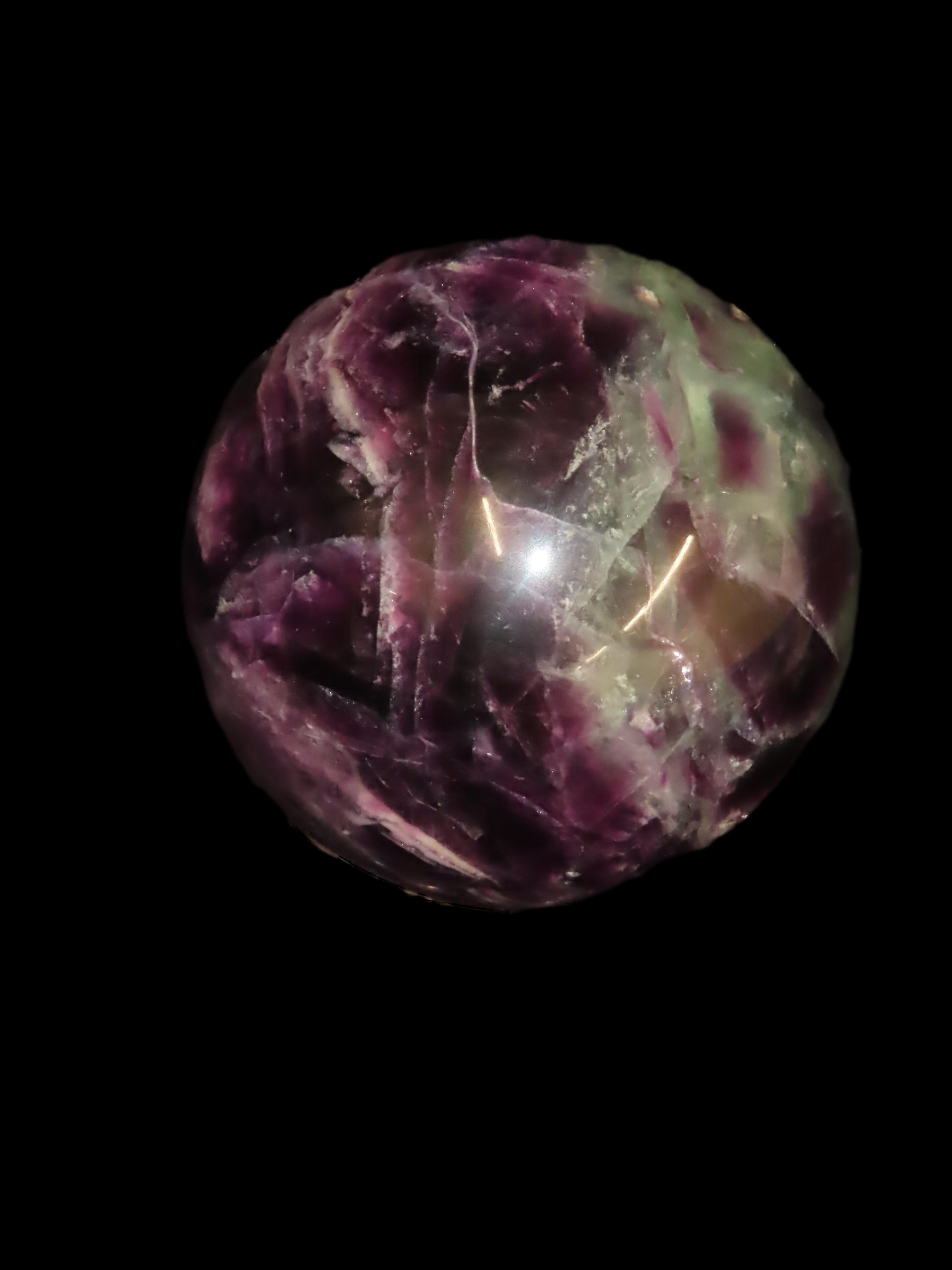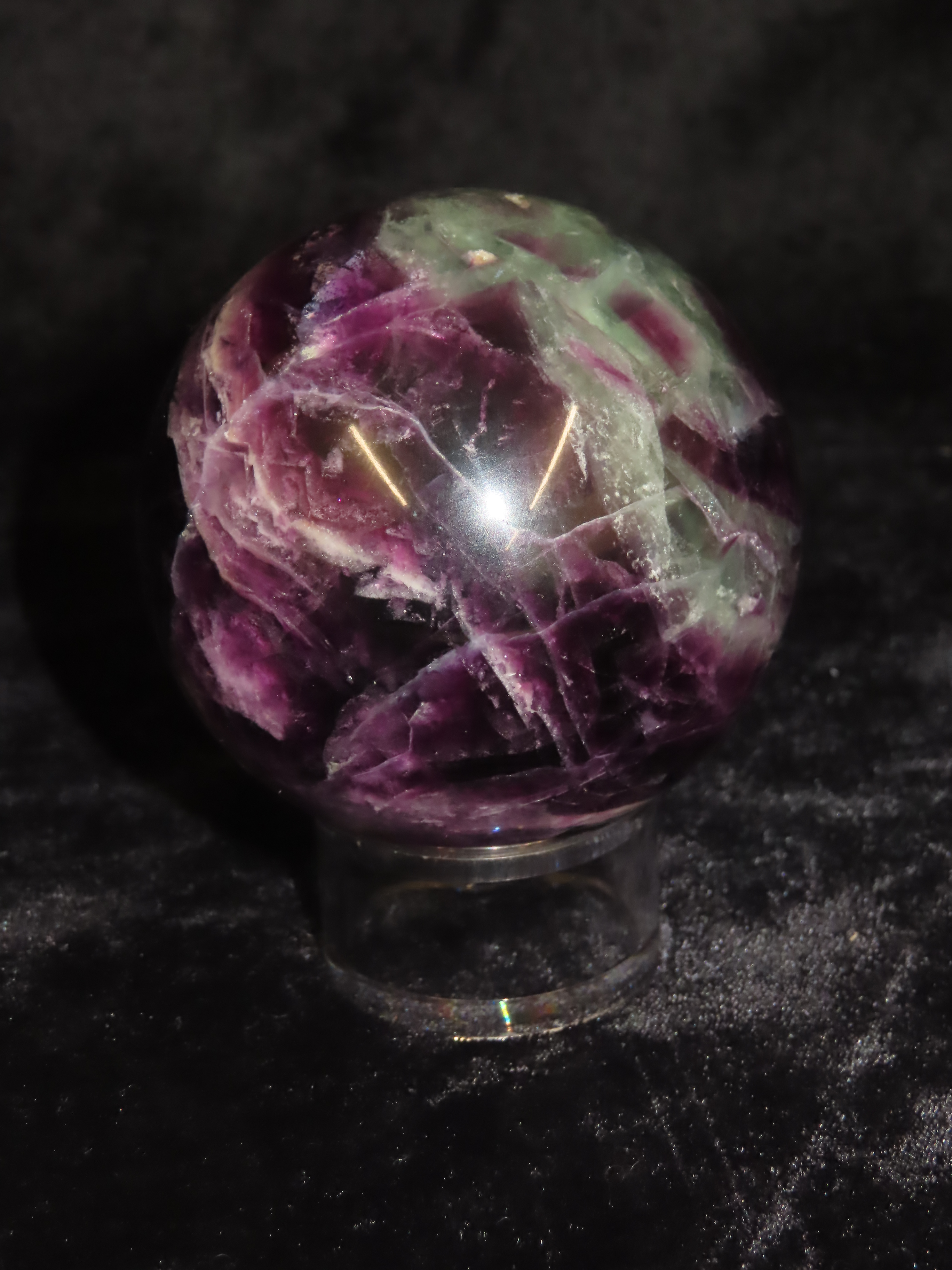 3″ Deep & Richly Colored Highly Polished Rainbow Fluorite Sphere- Often called the “Genius Stone,” it’s believed to enhance mental clarity, improve focus, and aid in organizing thoughts, making it beneficial for study or work environments. Origin: United States