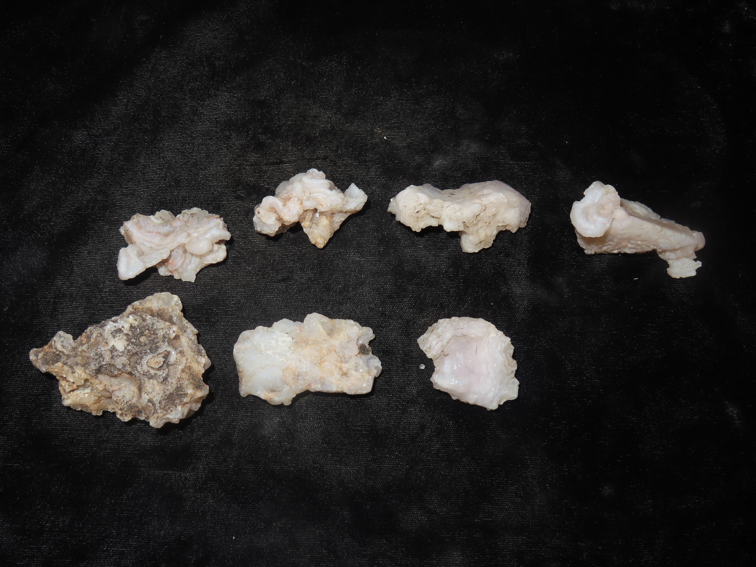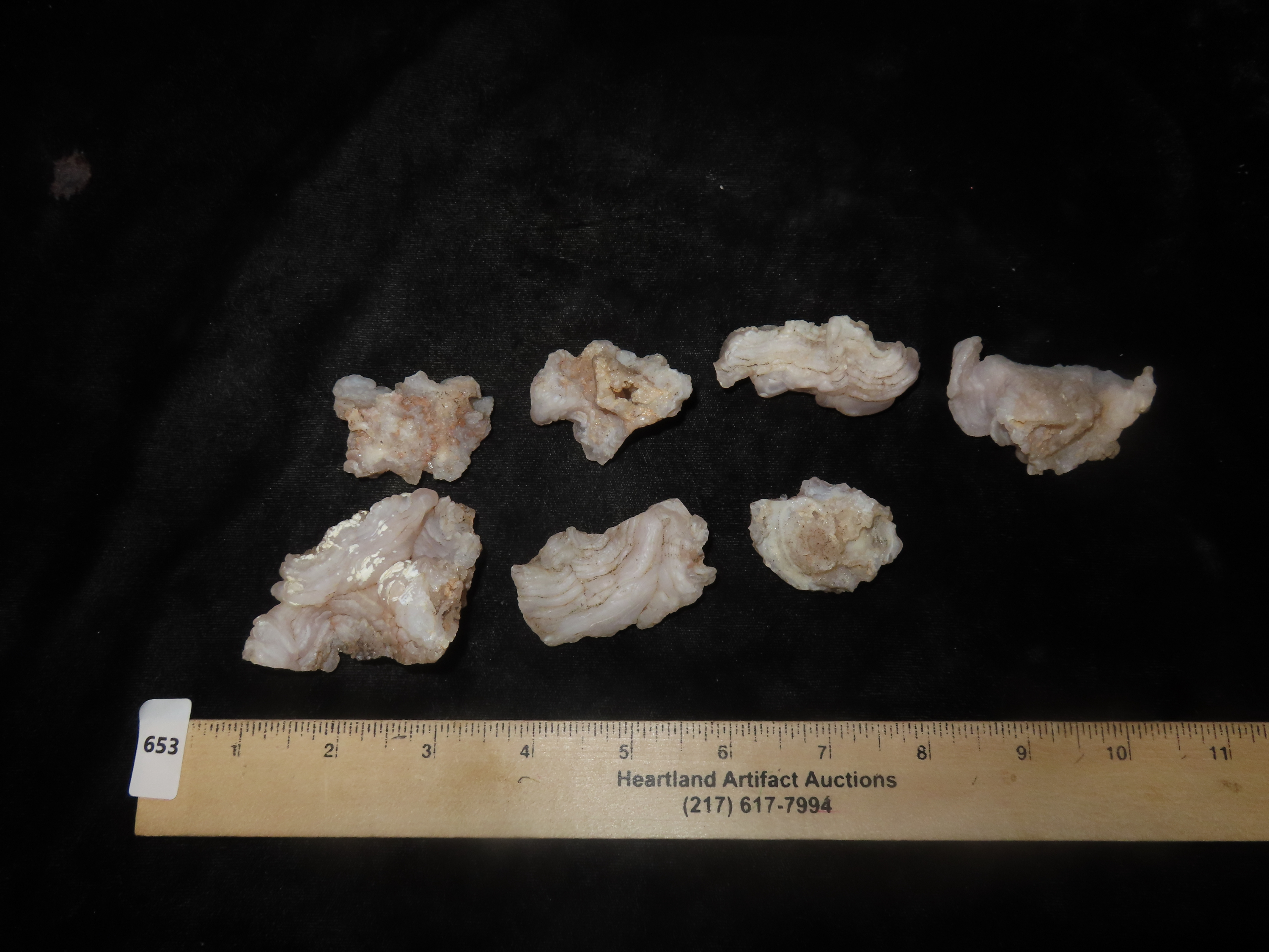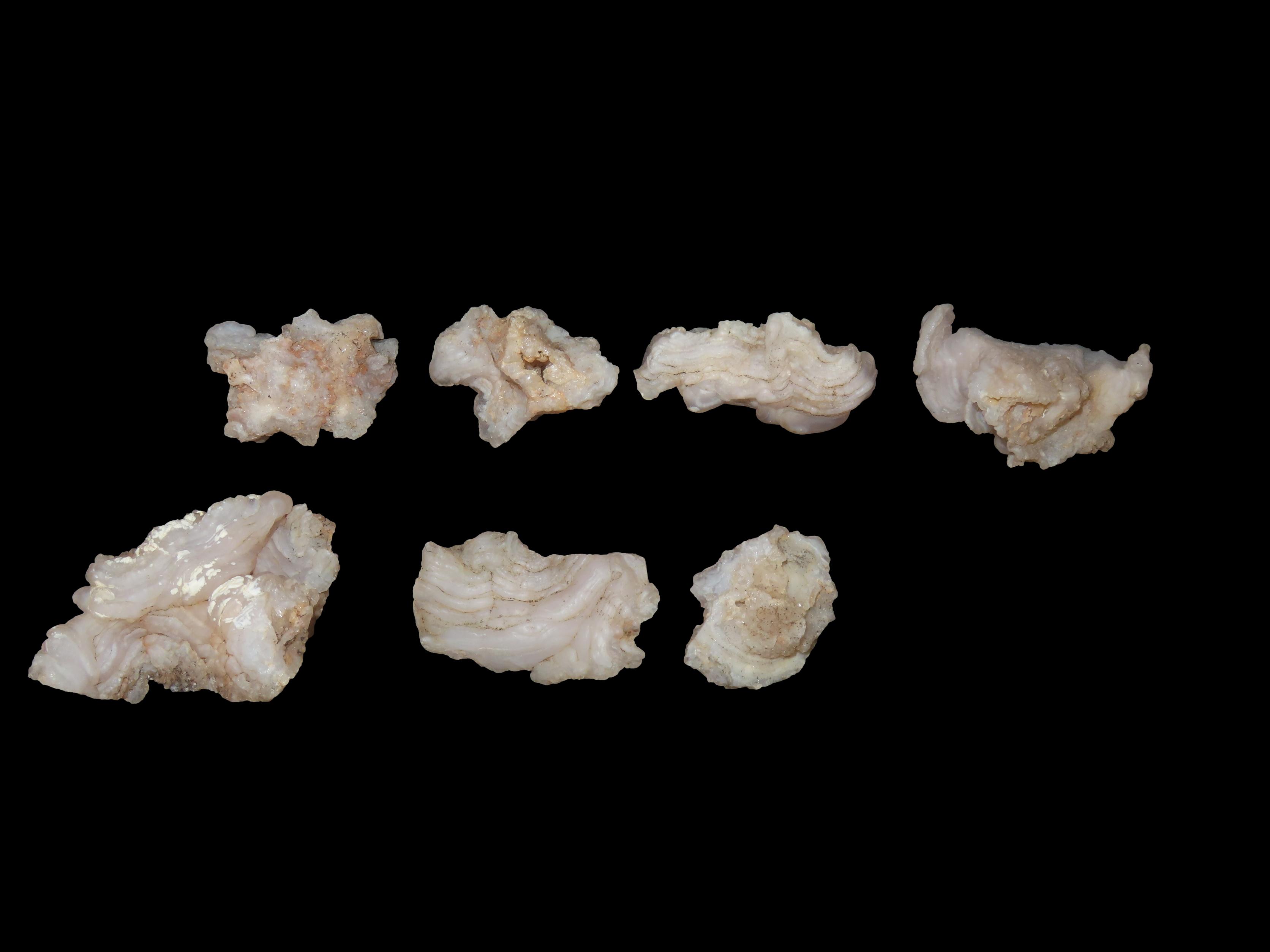 Group of 7 White Botryoidal Chalcedony Stones with Crystals