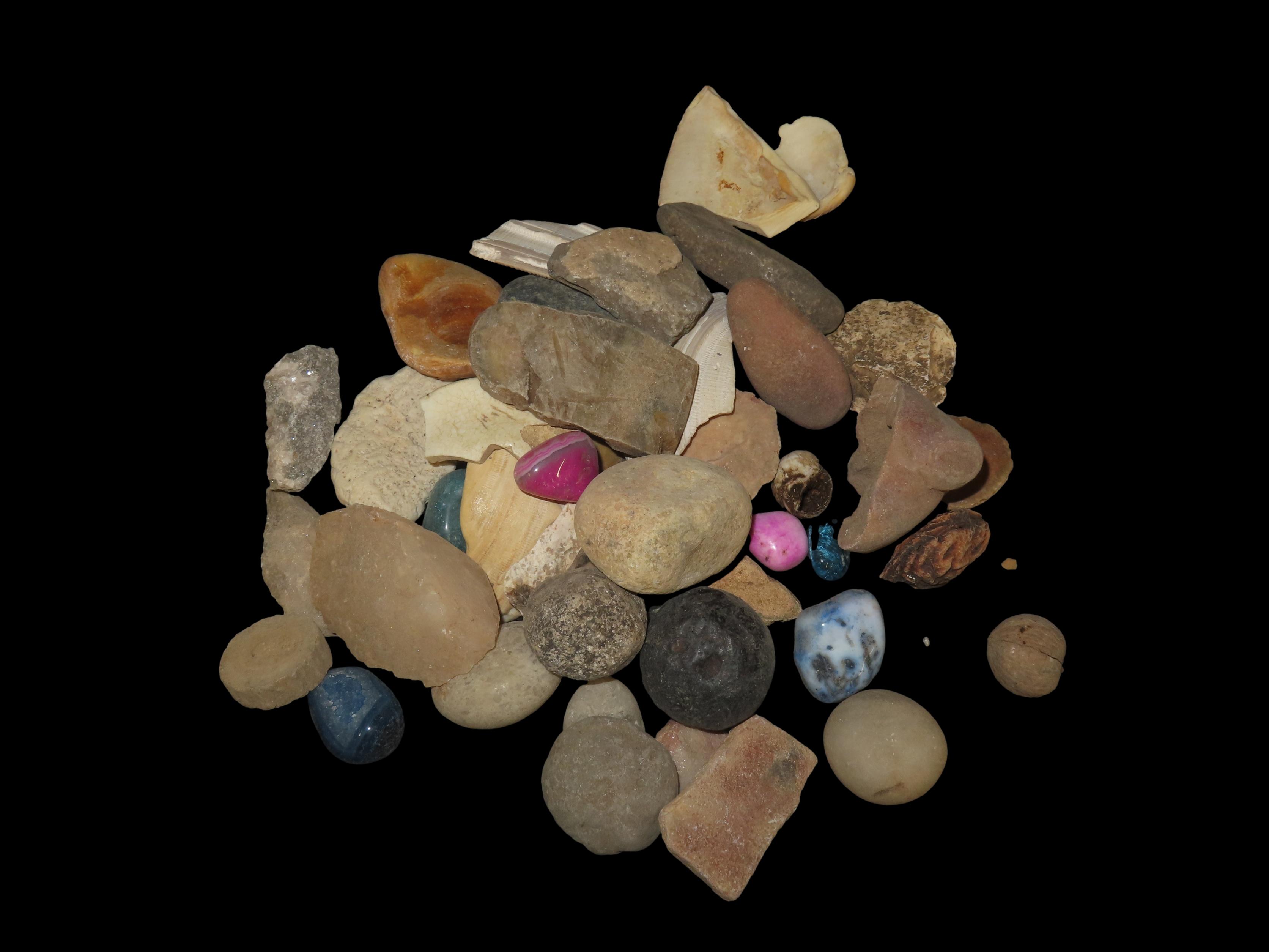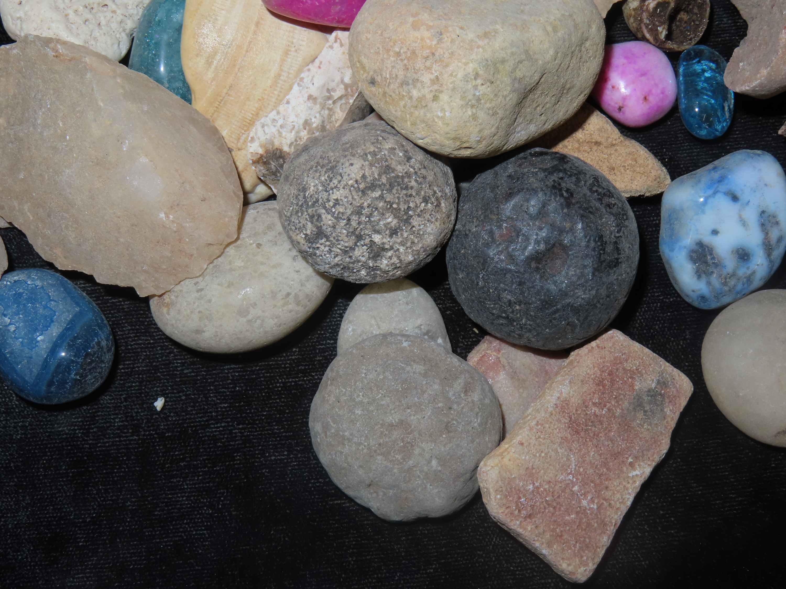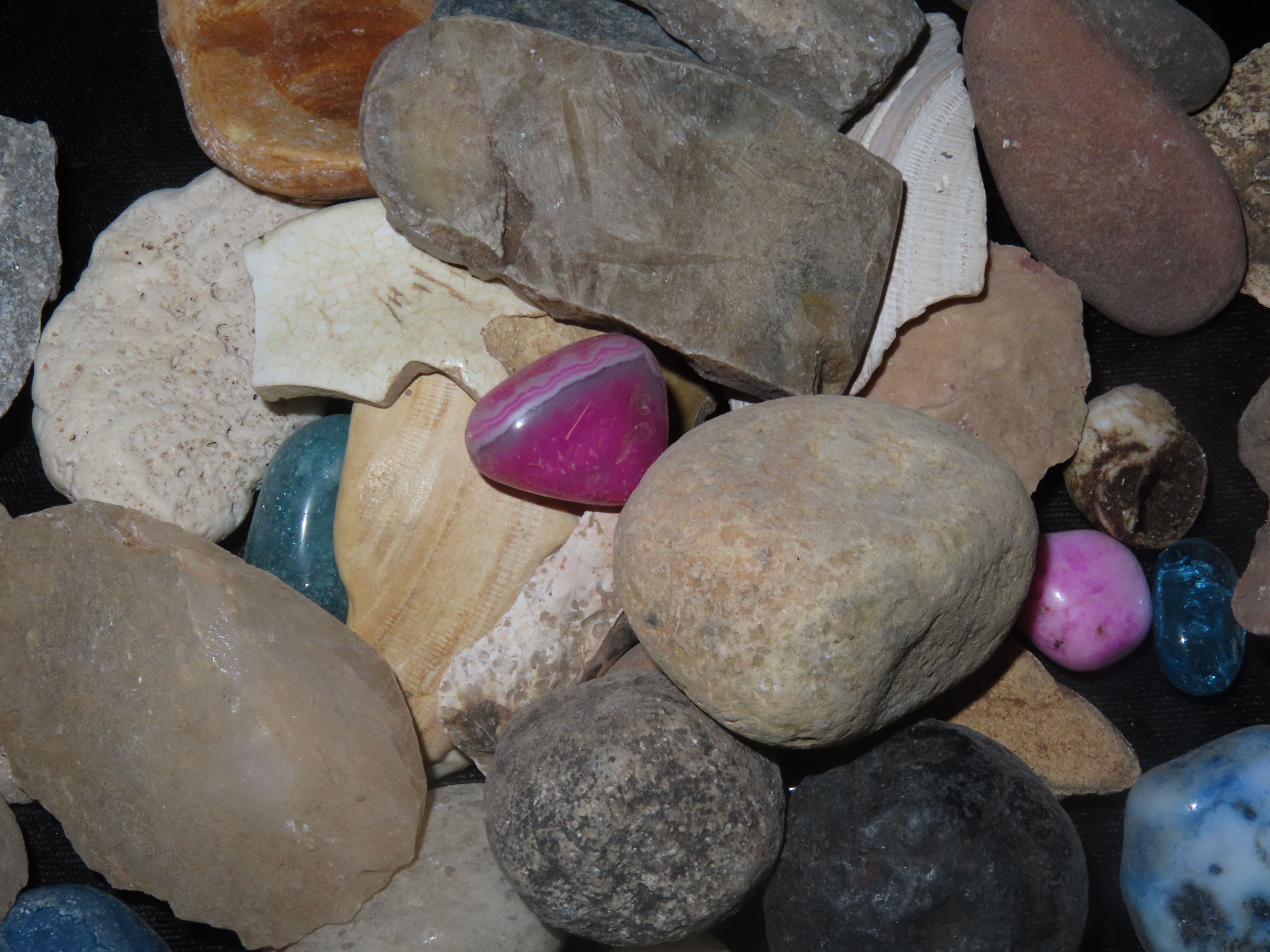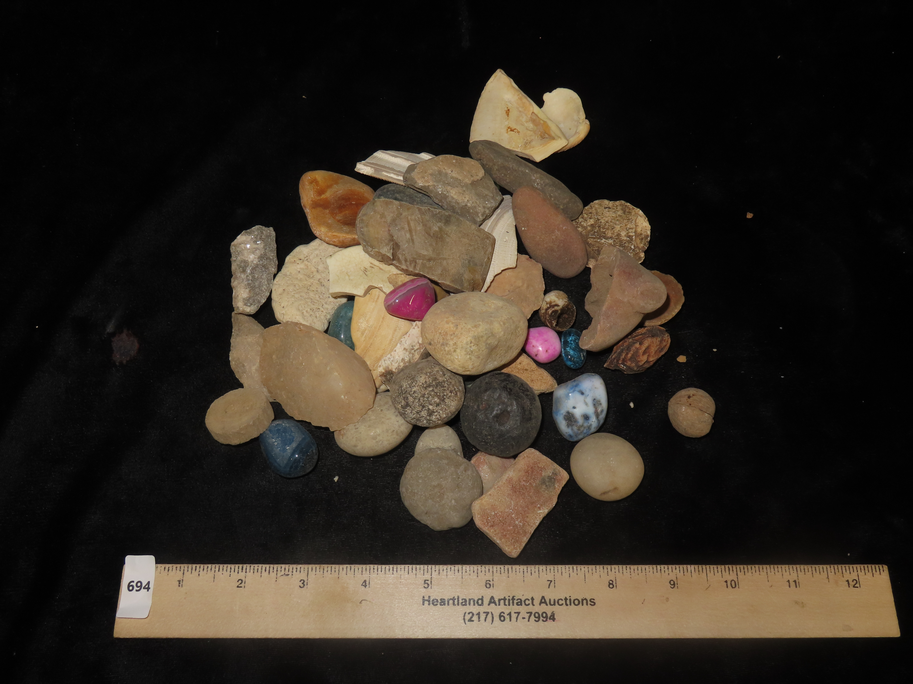 Group of Field Finds, Polished Rocks, Crystals, China, Marbles, Fossils