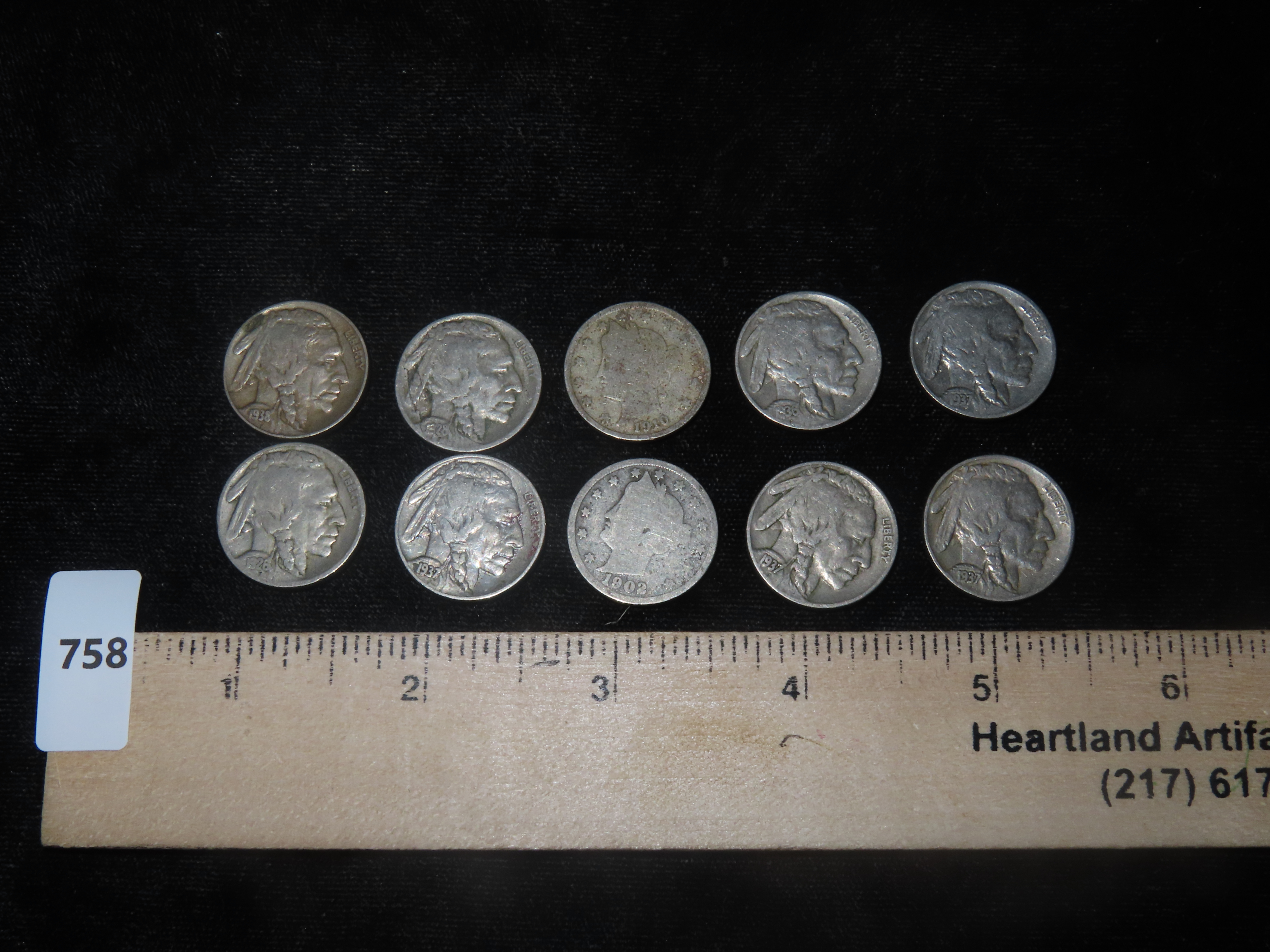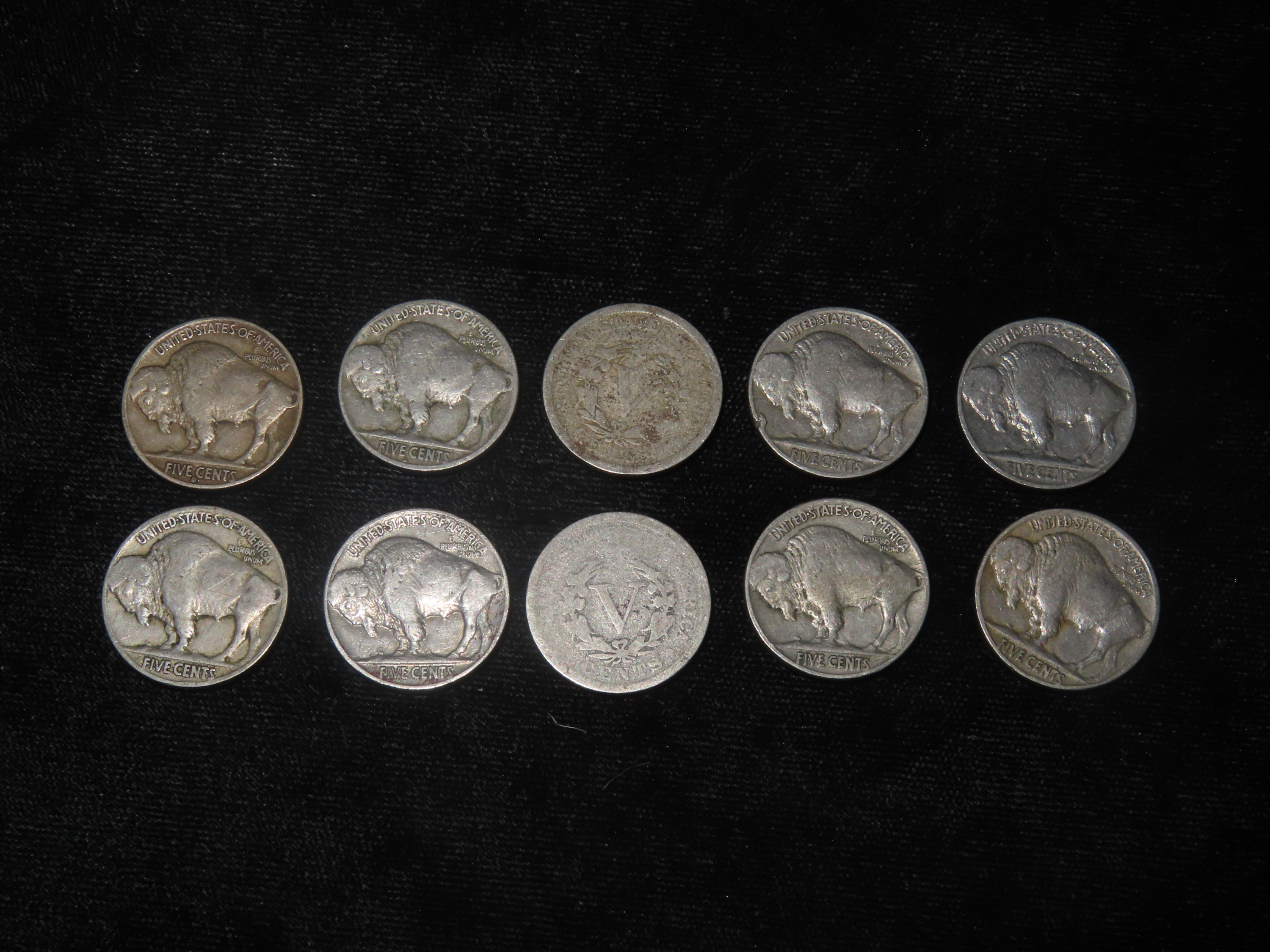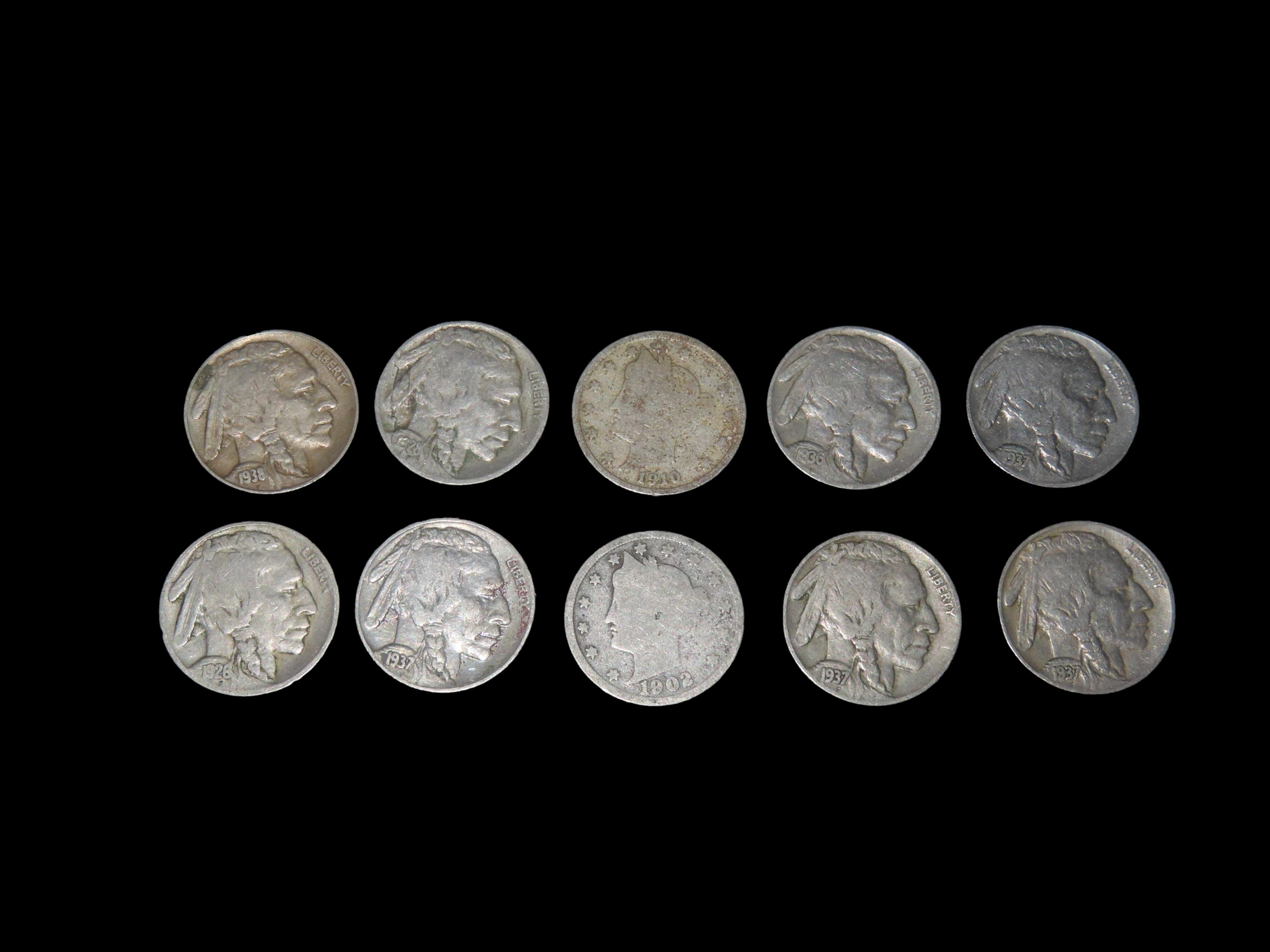 10 V-Nickel Indian Head Buffalo Nickels USA Early American Currency Full Date.