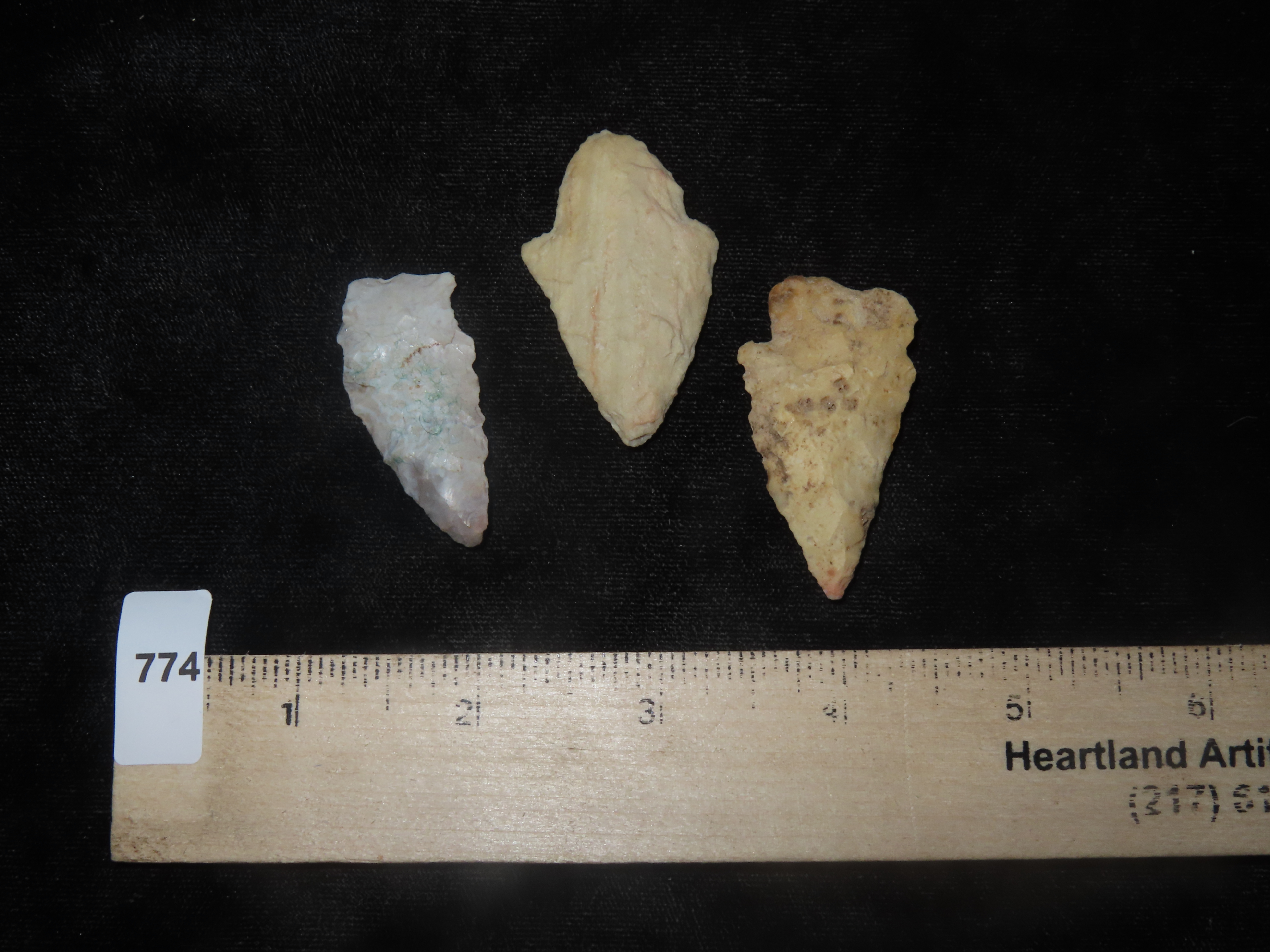 Group of 3 Arrowheads Found in Butler County Missouri.