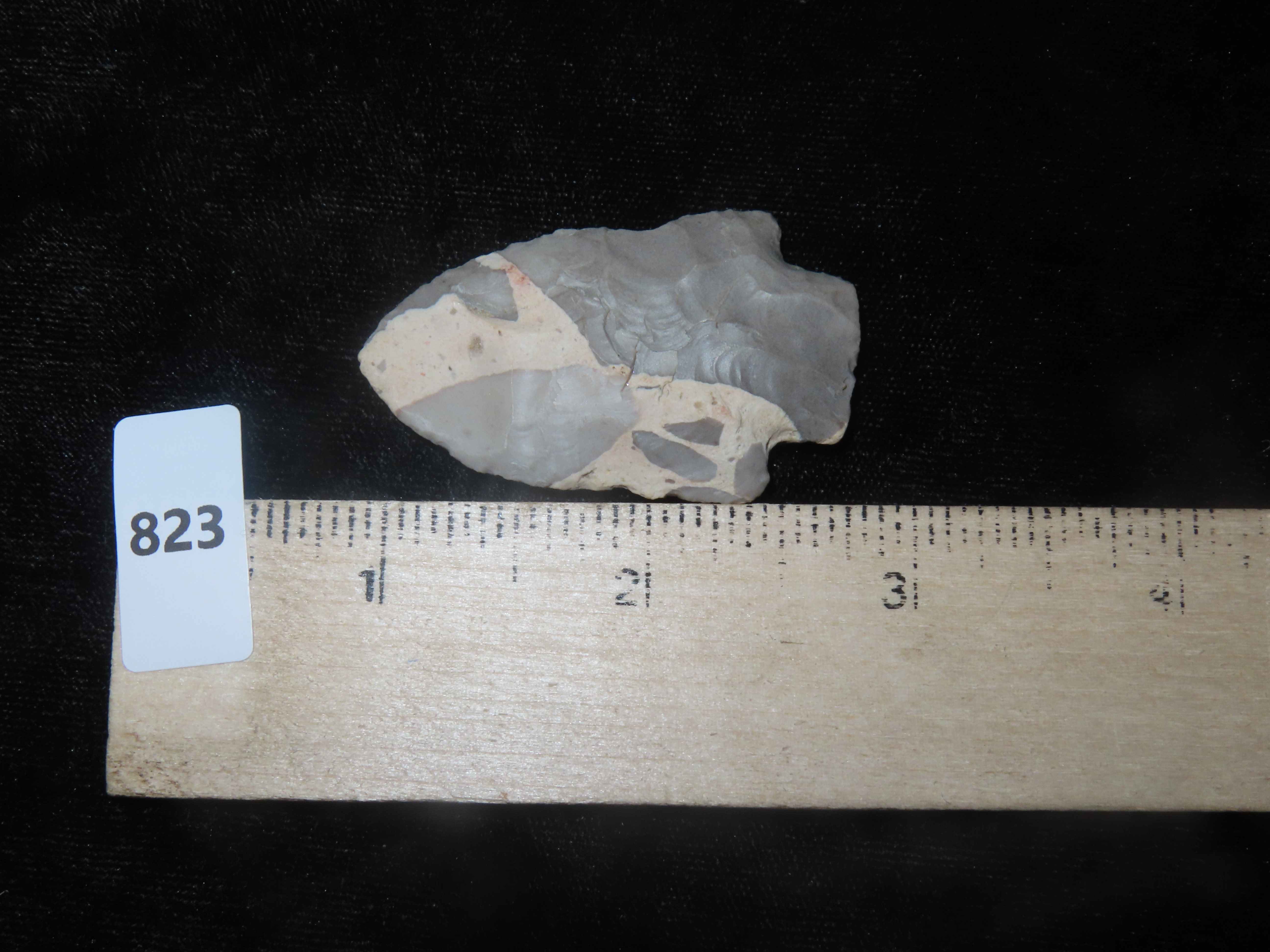 1.15/16″ Super Coloful Stemmed Point, Lee Co Arkansas.
