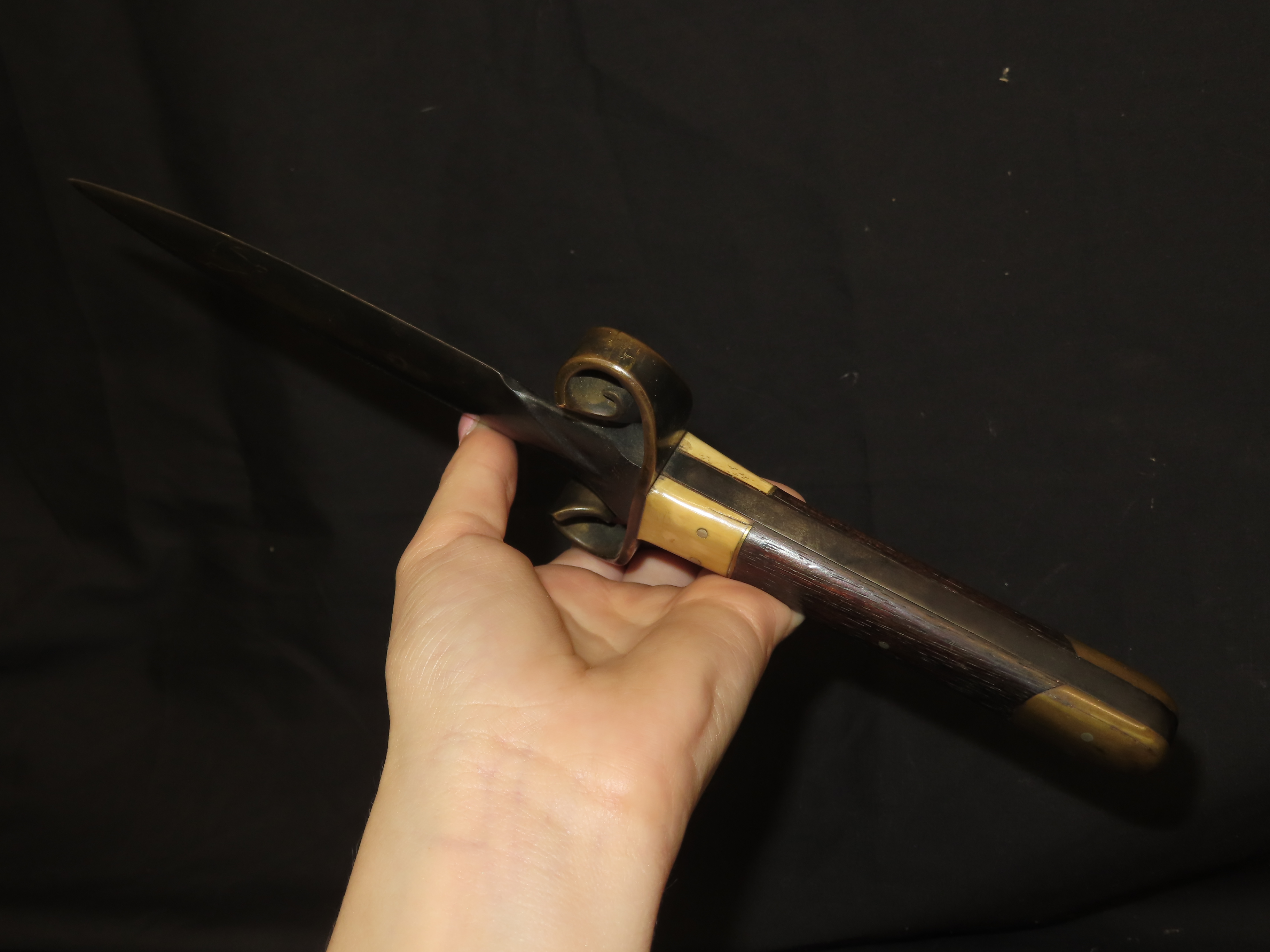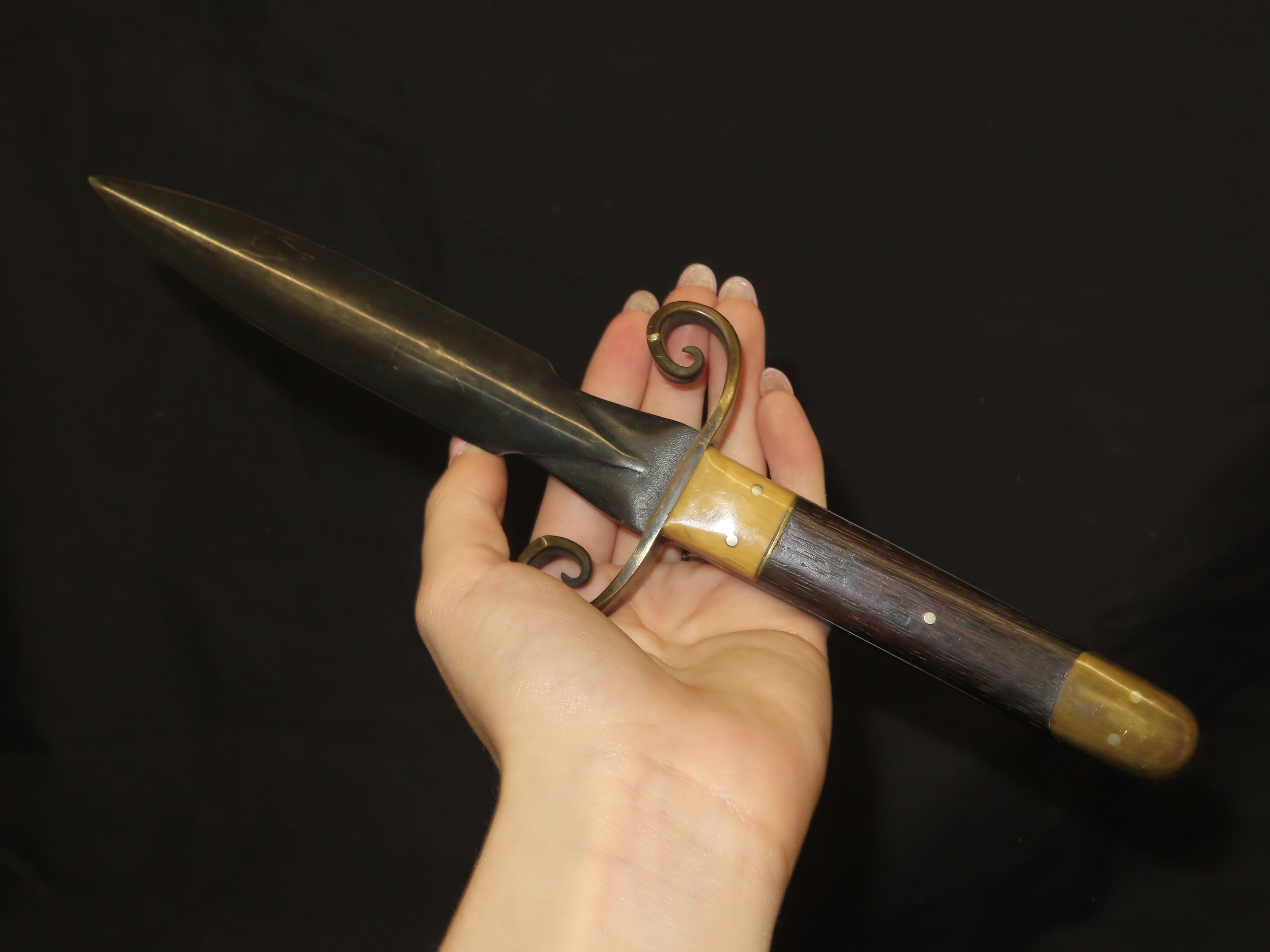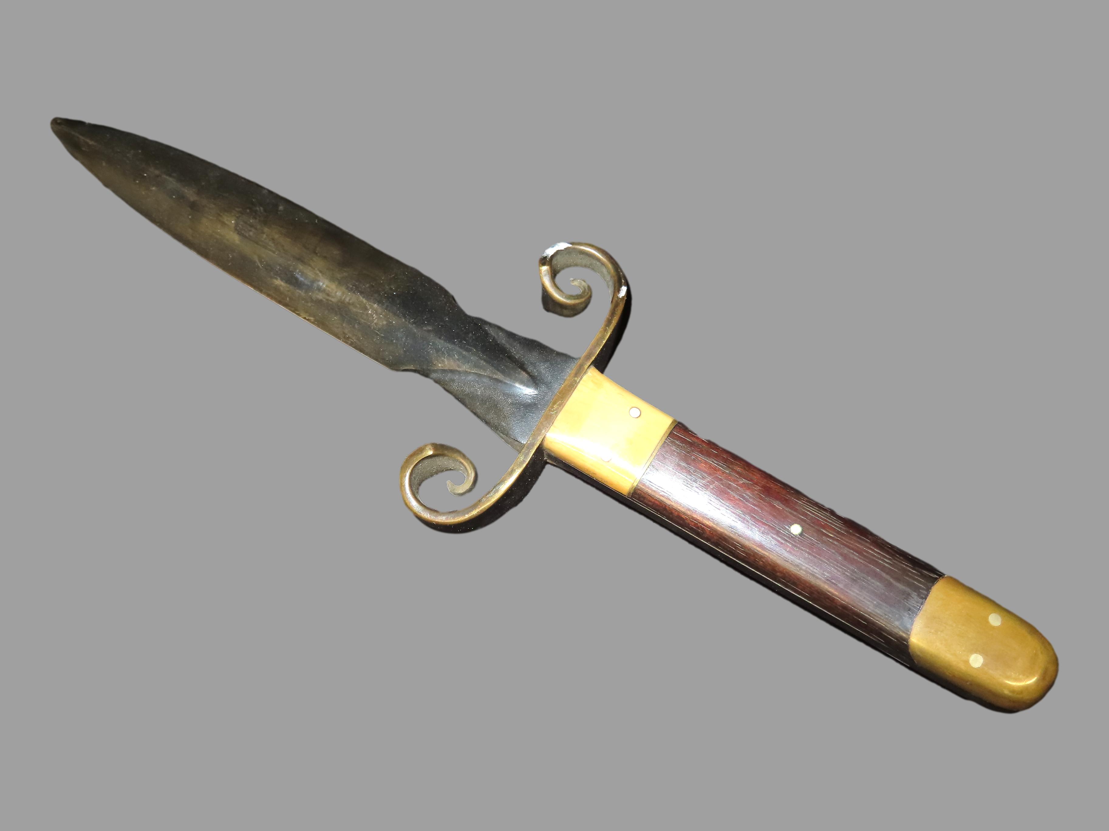Very Unique Dagger, 11″ Long, Old Knife, Wood Brass and Bone Handle,