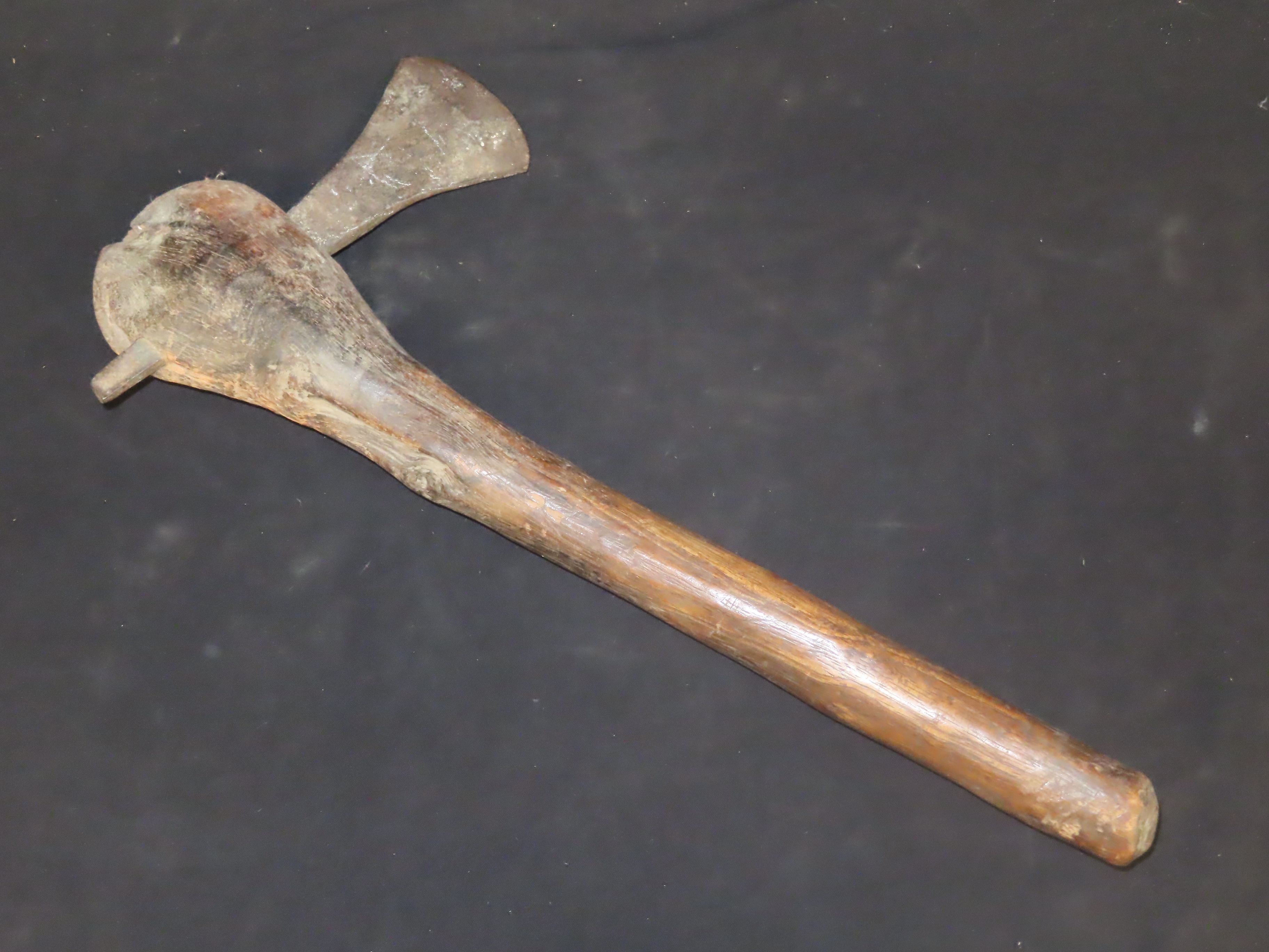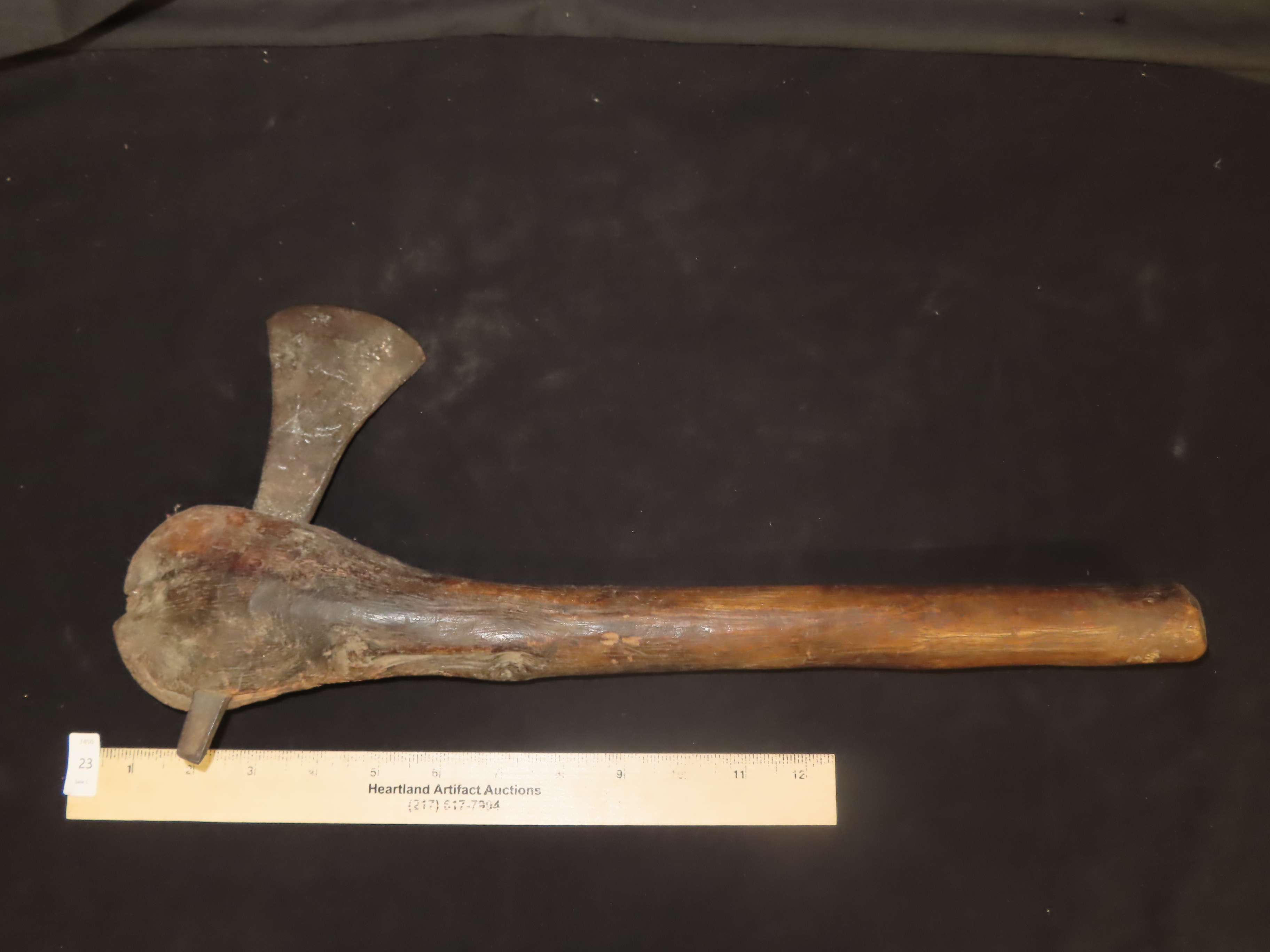 Native American Tomahawk, Hand Forged Iron Celt in Wood Handle. 17 1/2″ Overall