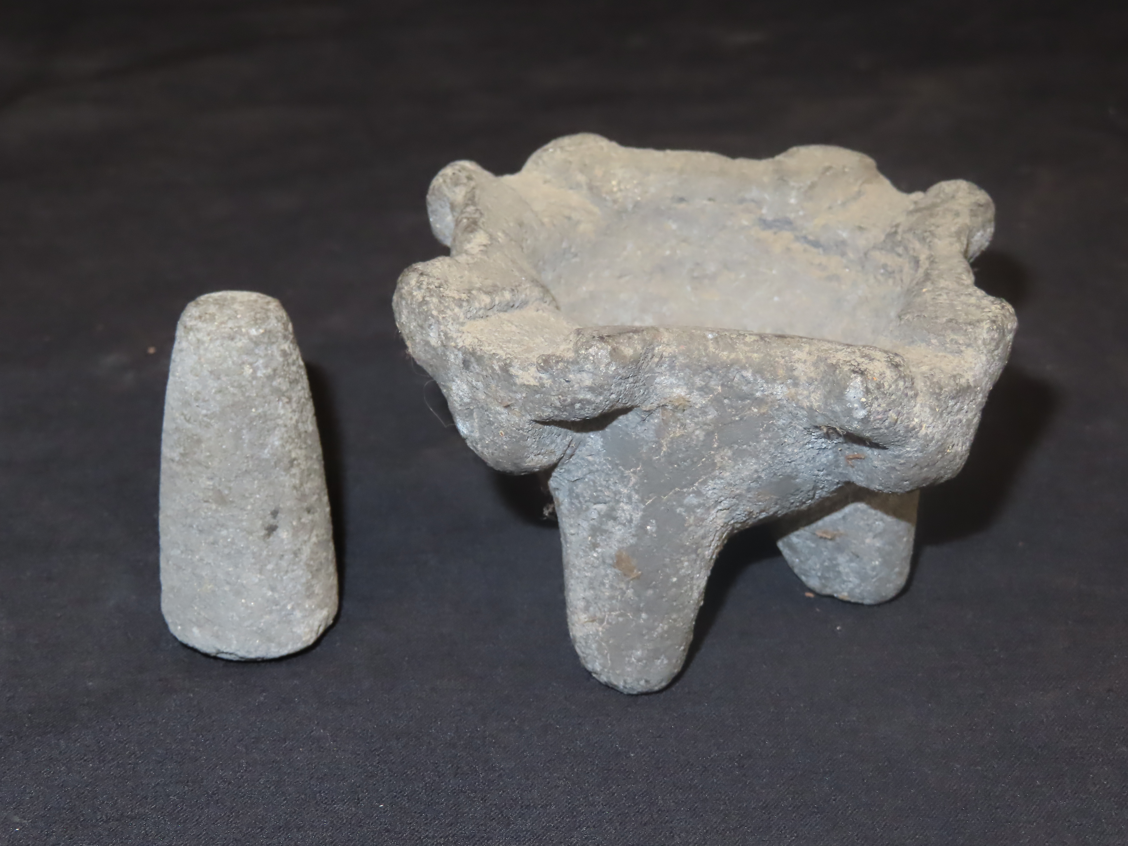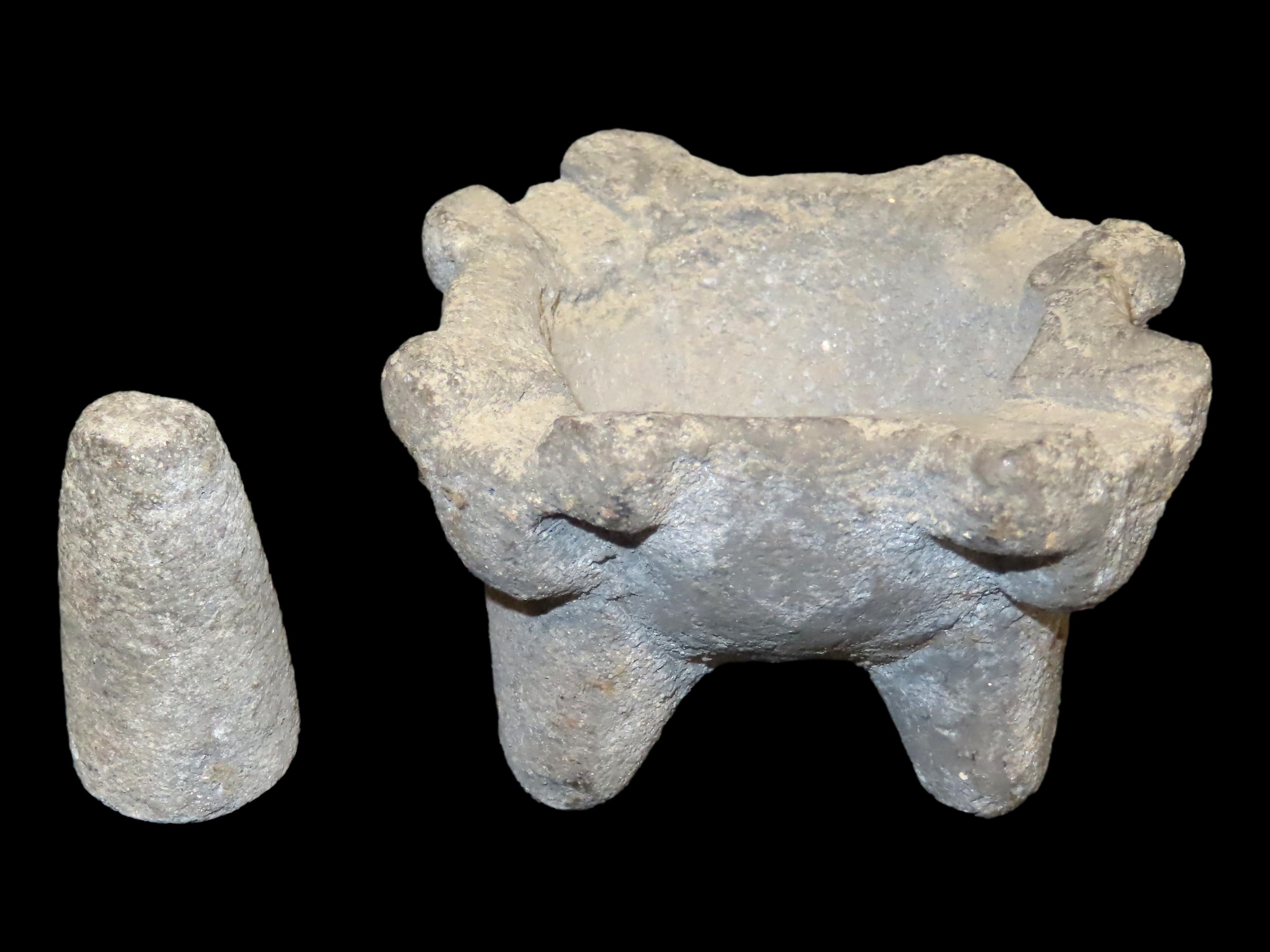 Pre Columbian Stone Bowl w/ Pestle, 4″ Dia