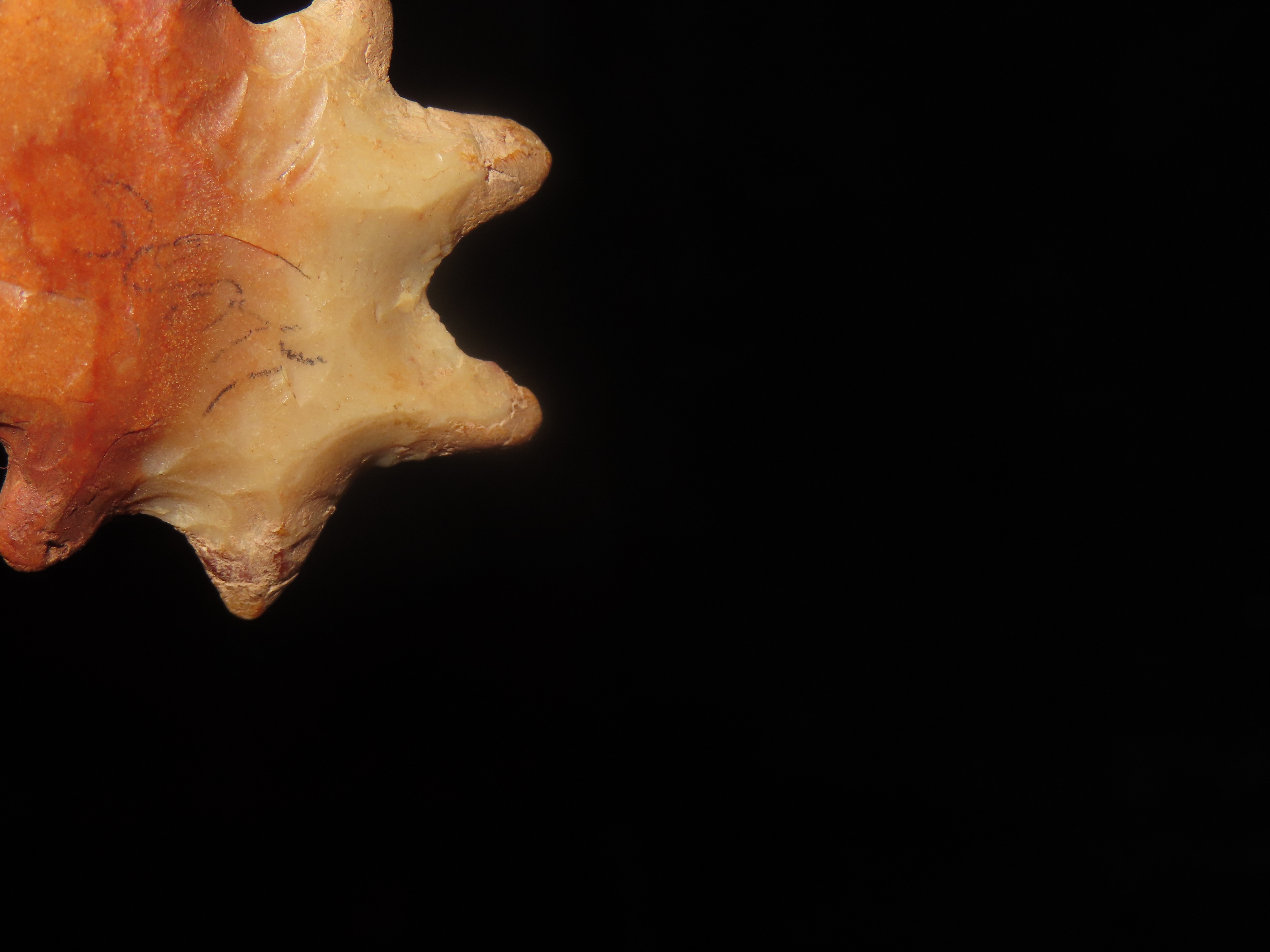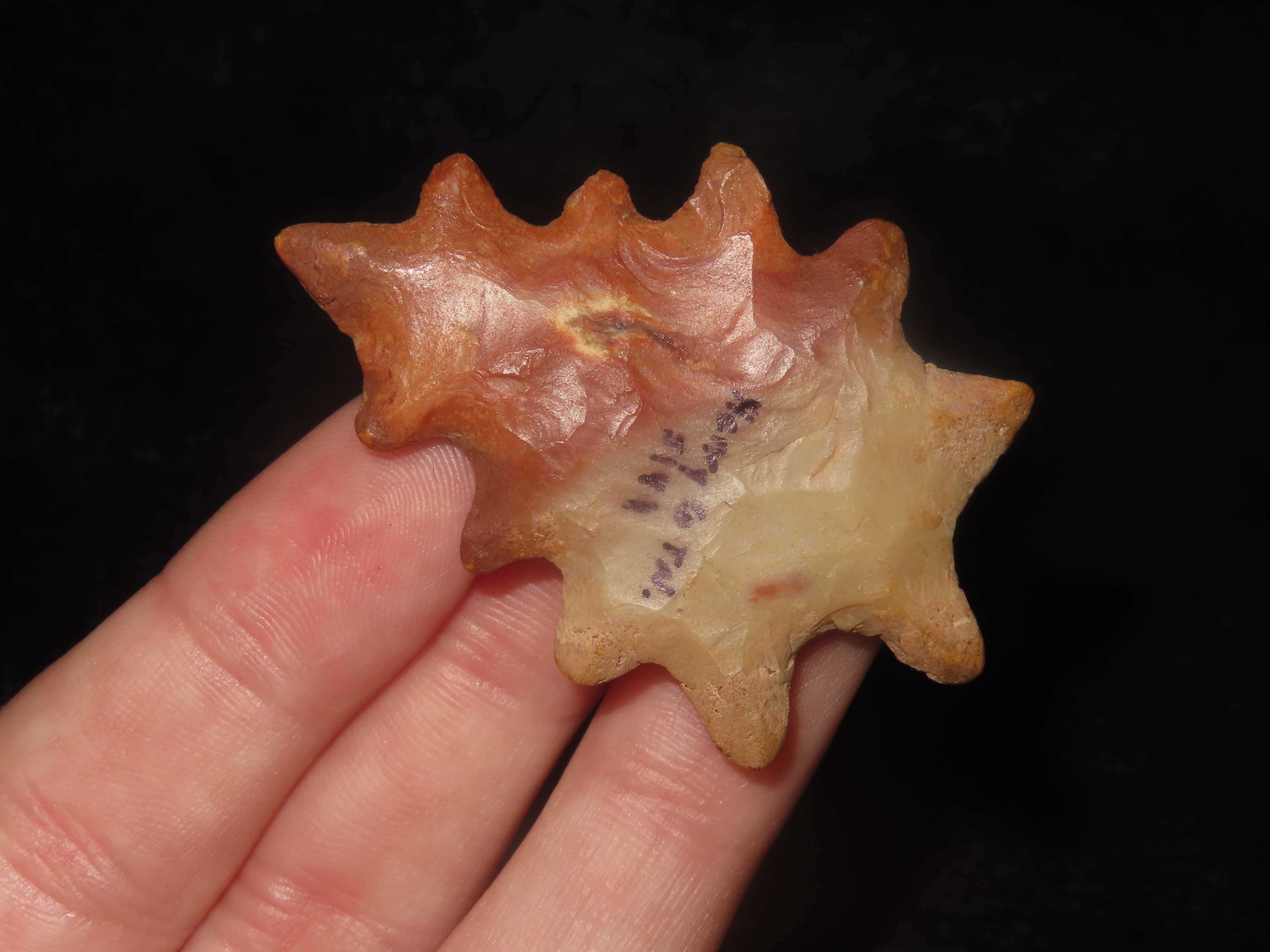 1 15/16″ Flint Eccentric, Henry County Tennessee ((RESTORED)) Colorful Example that Displays really well, Does have minor restoration to some of the Barb Tips, but Very Nicely done.