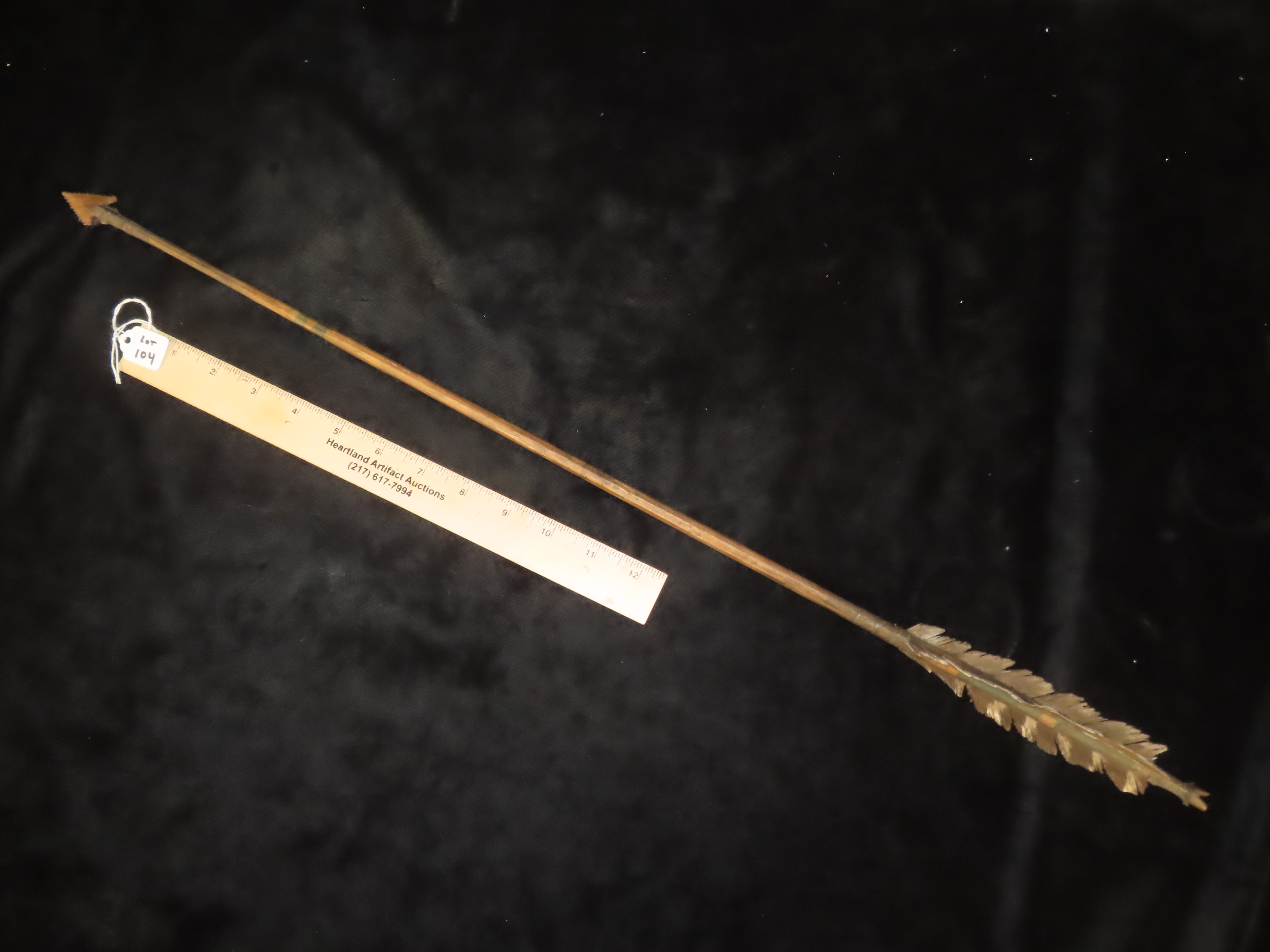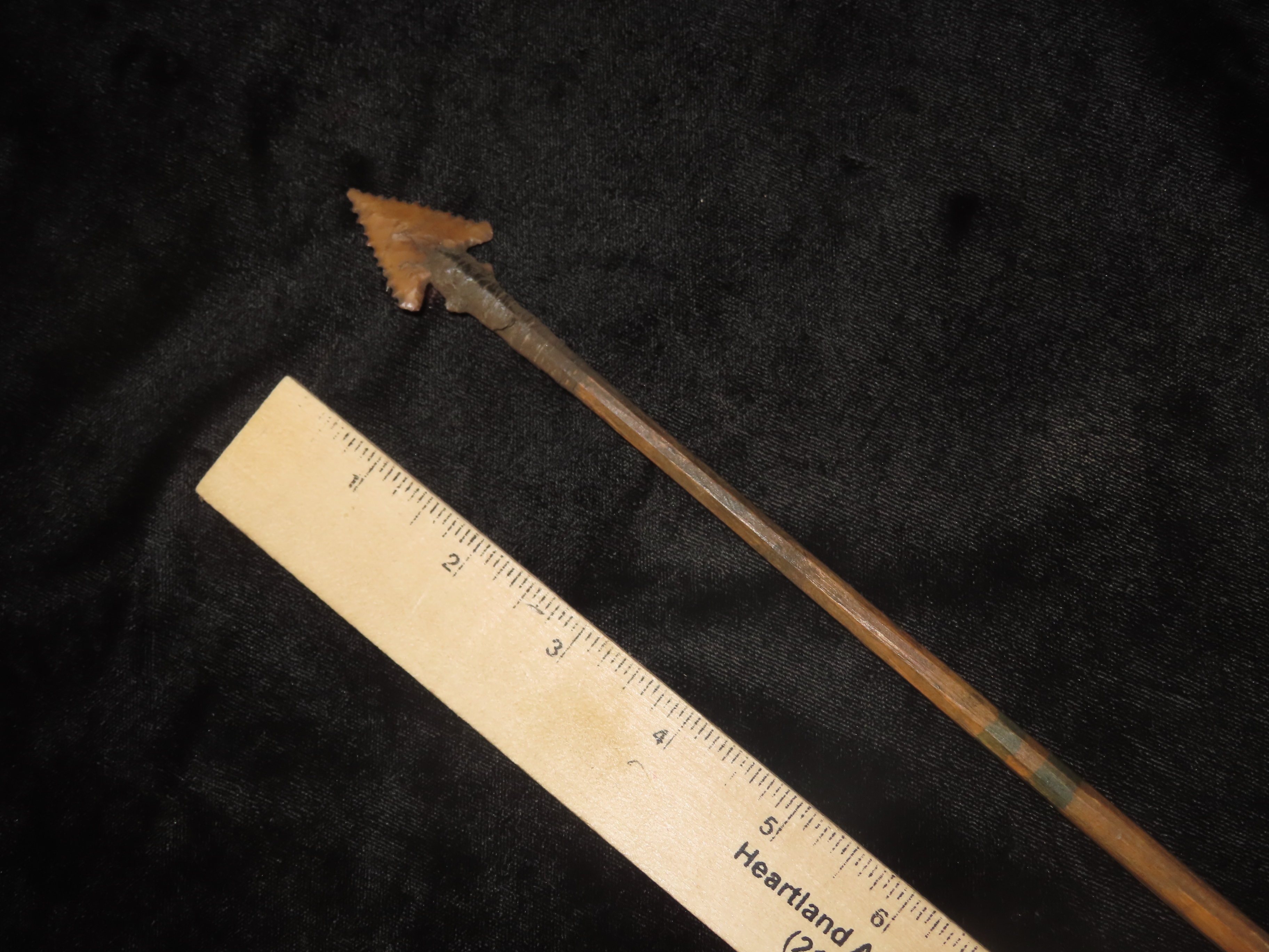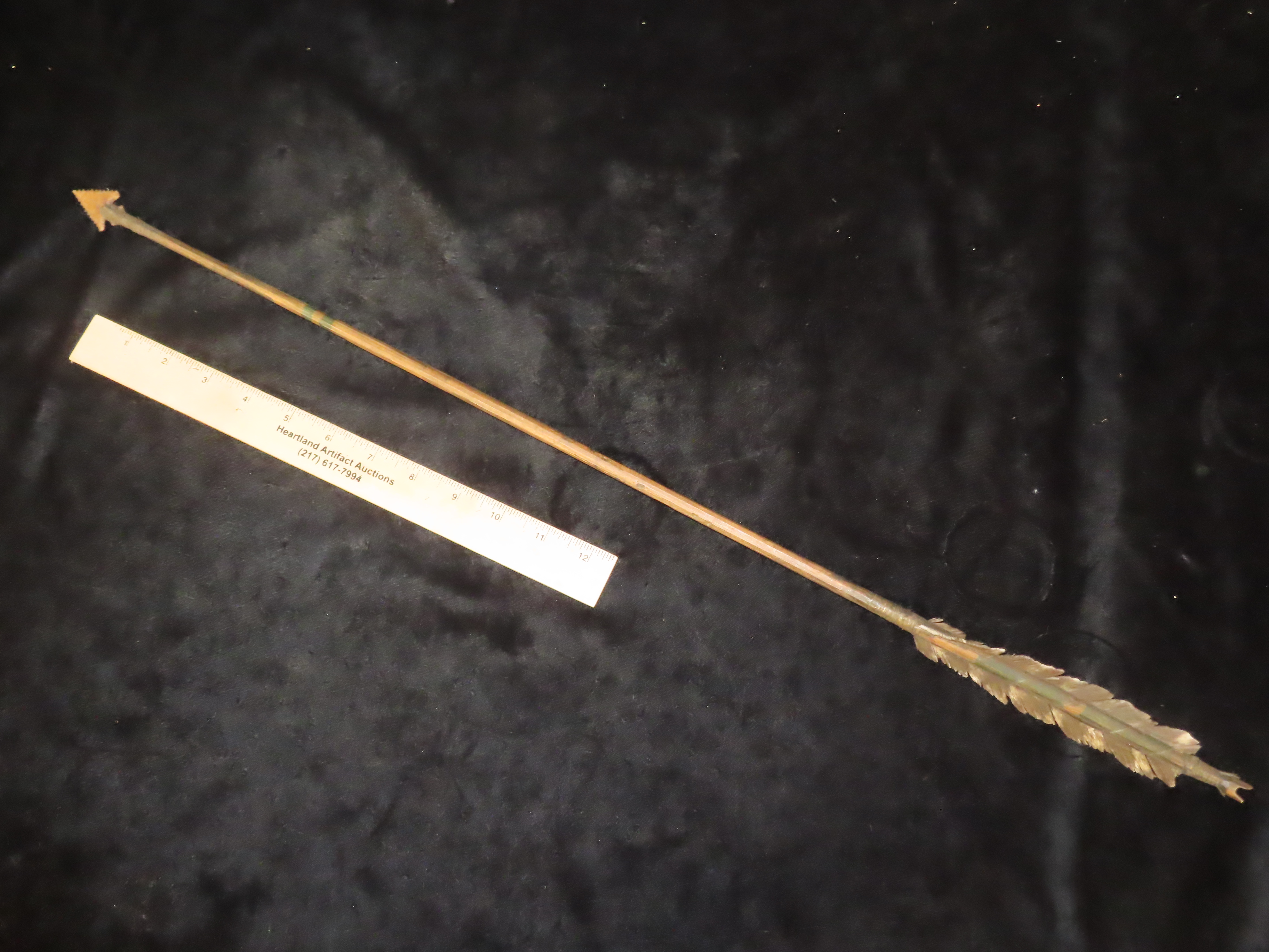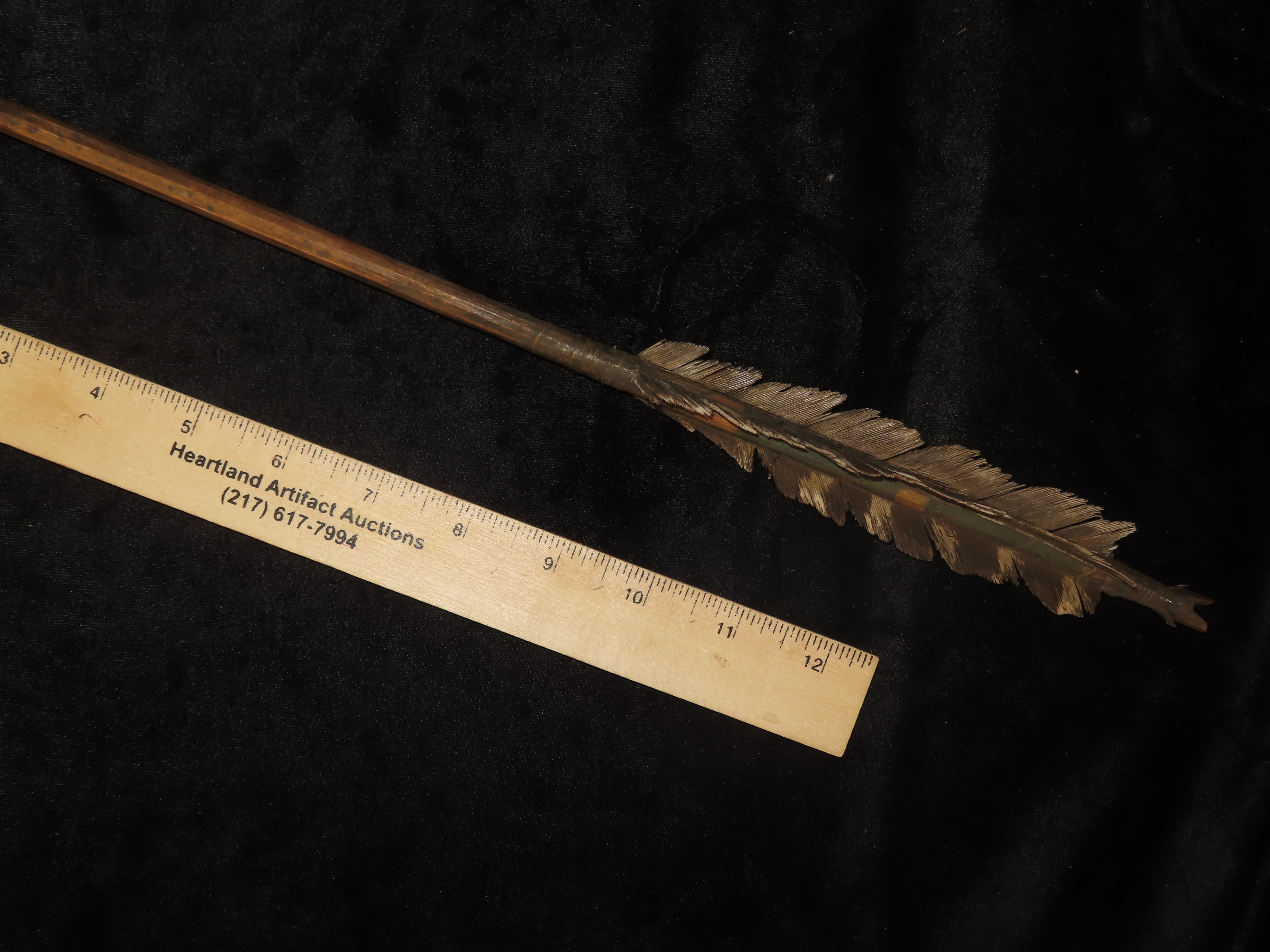 Phenomenal All Original Historic Plains Indian Arrow with Original Hafted Arrowhead, Original Feathers & Sinew, Fully Intact Example. Amazing piece of American History. Museum Grade example.