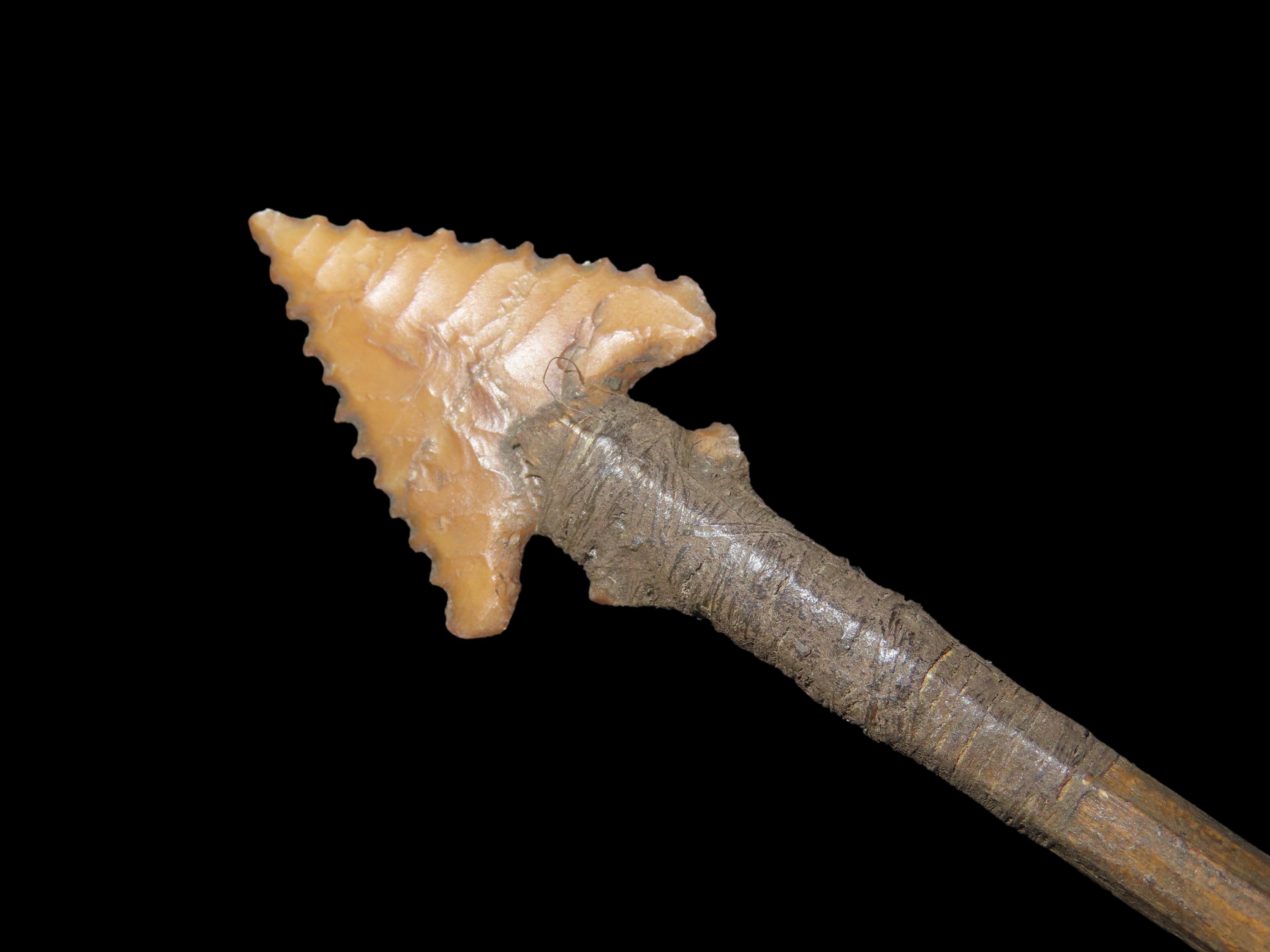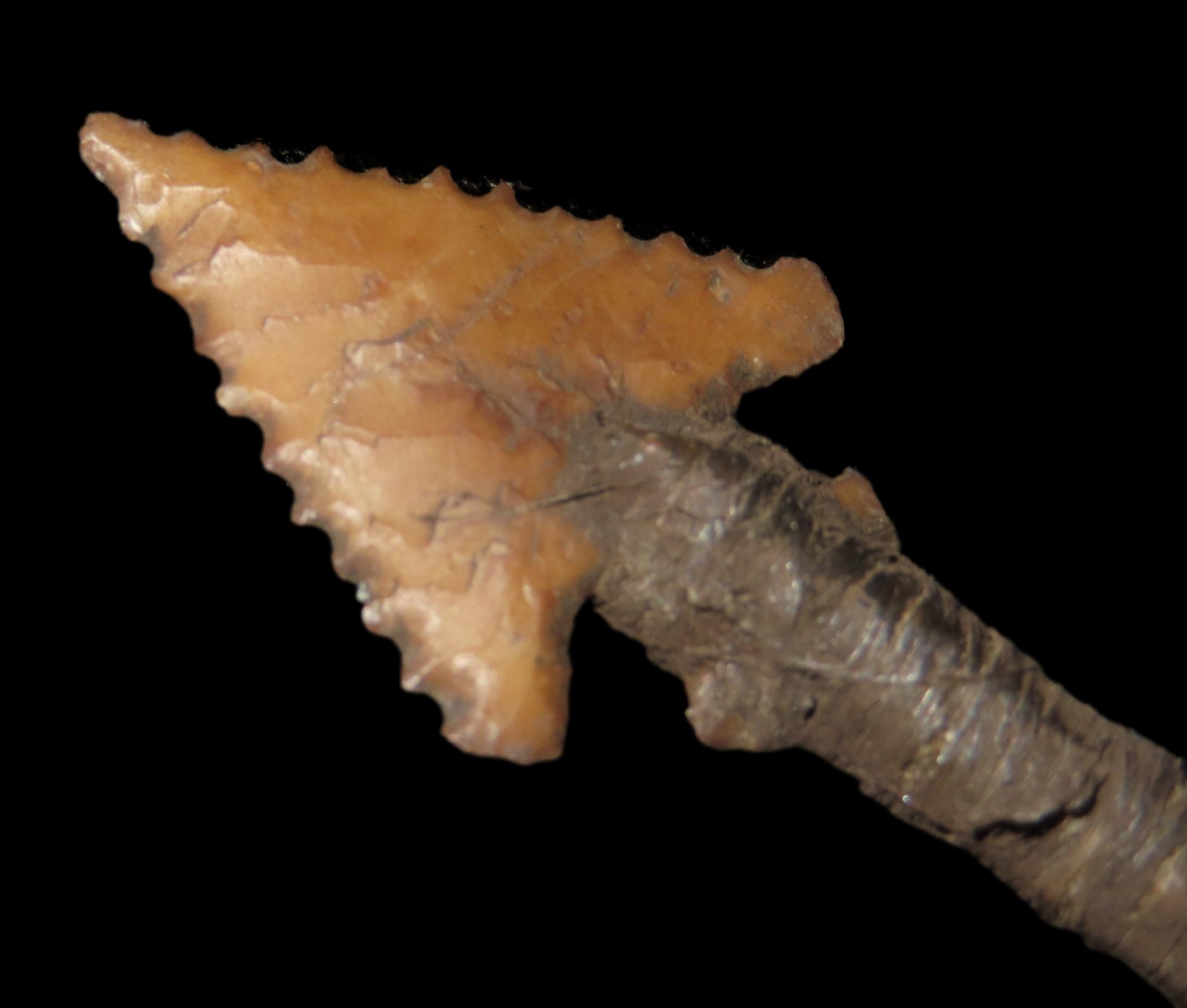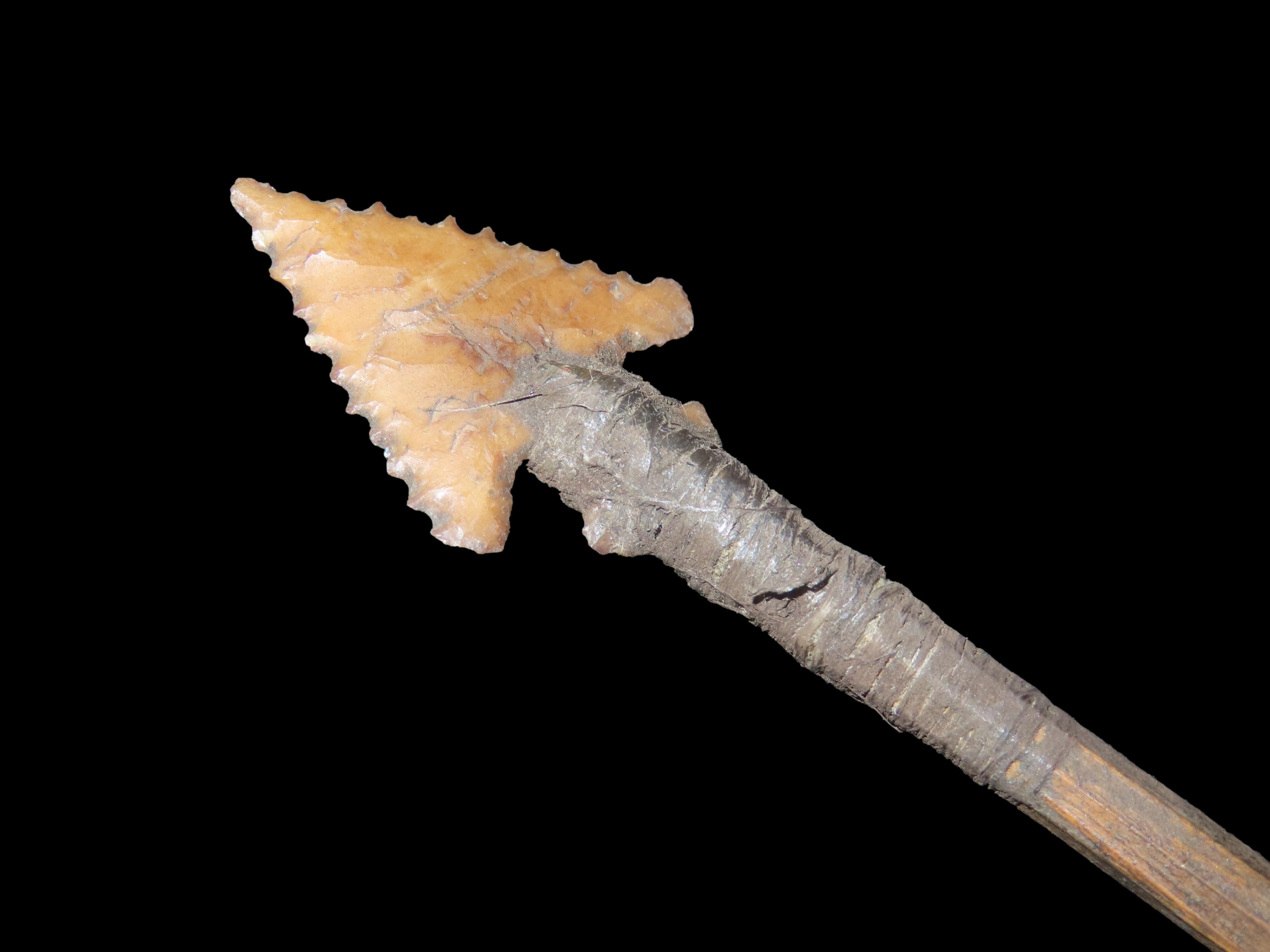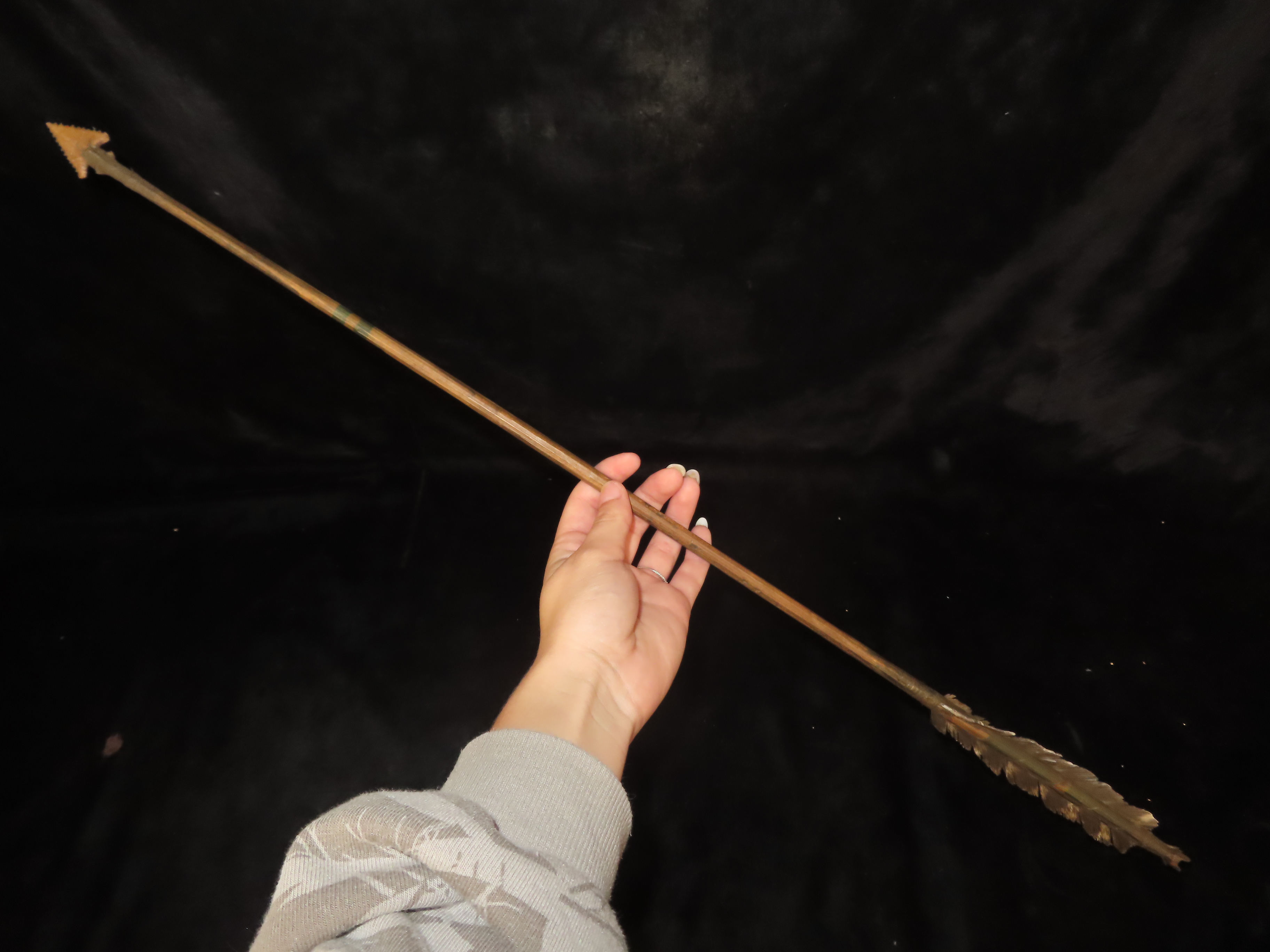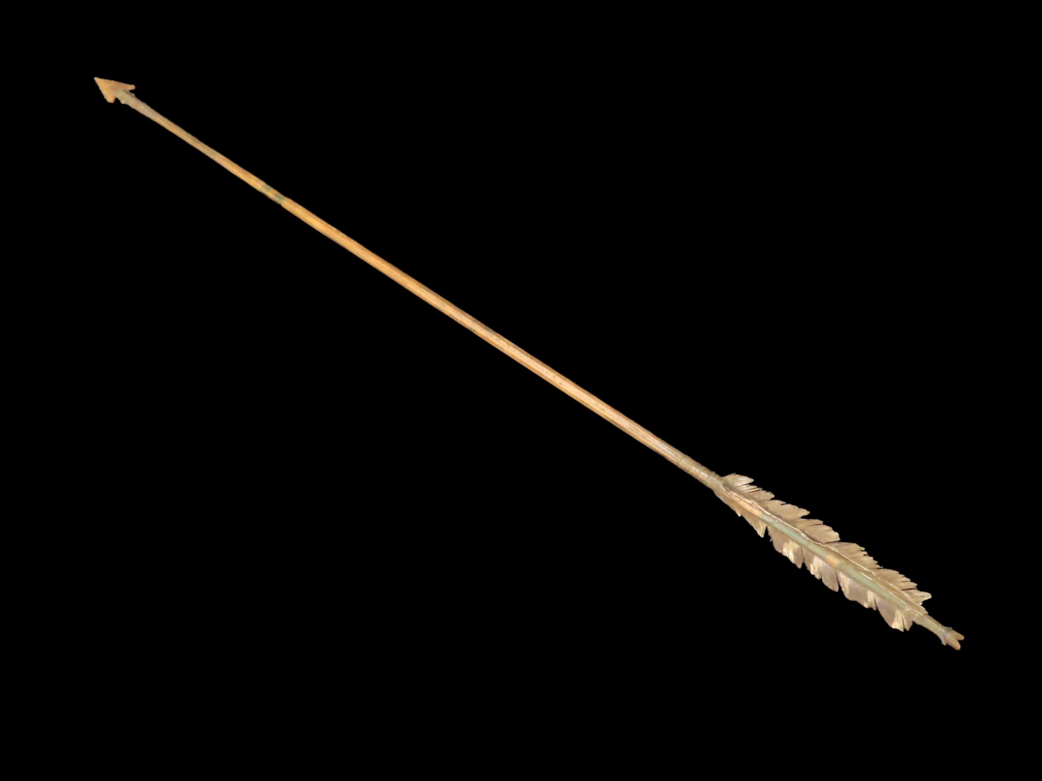 Phenomenal All Original Historic Plains Indian Arrow with Original Hafted Arrowhead, Original Feathers & Sinew, Fully Intact Example. Amazing piece of American History. Museum Grade example.