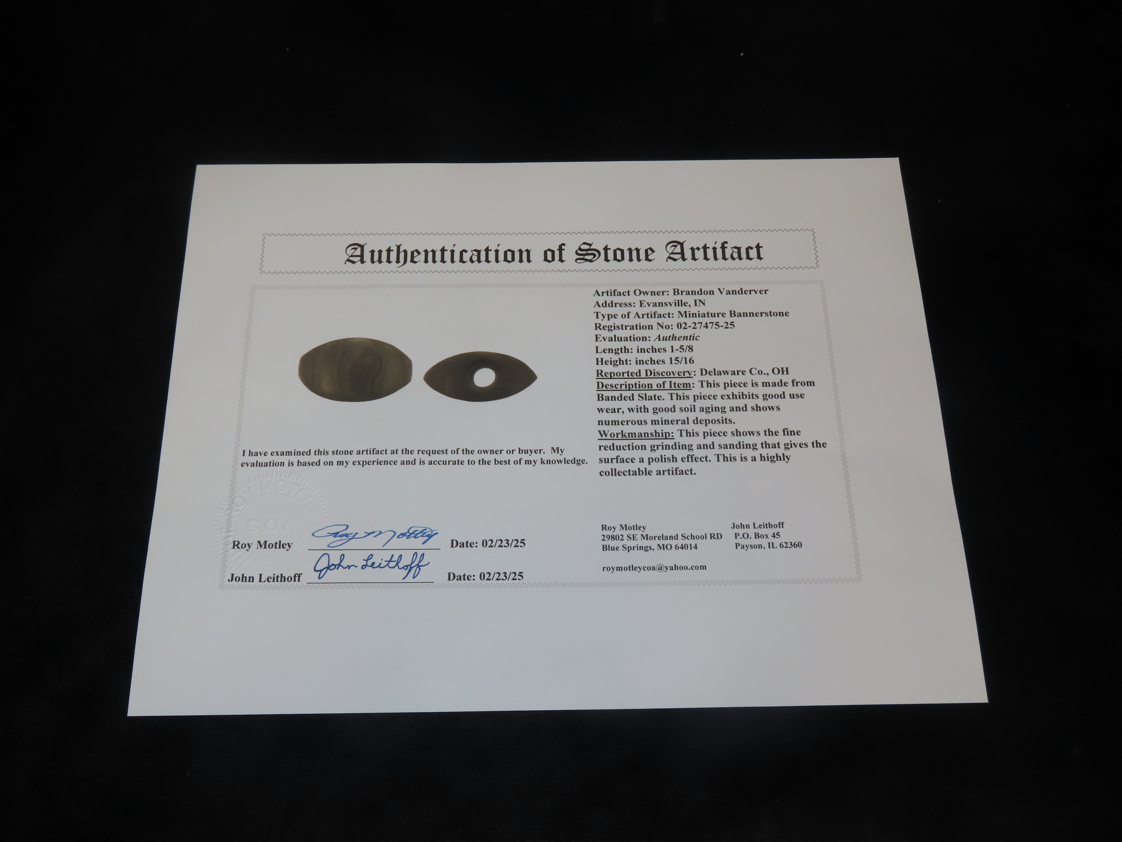 Miniature 1 5/8" Bannerstone, Delaware County Ohio, Motley COA. A True Mini, only 15/16" wide, Beautiful Banding, Great Polish, Amazing Form, No Damage!