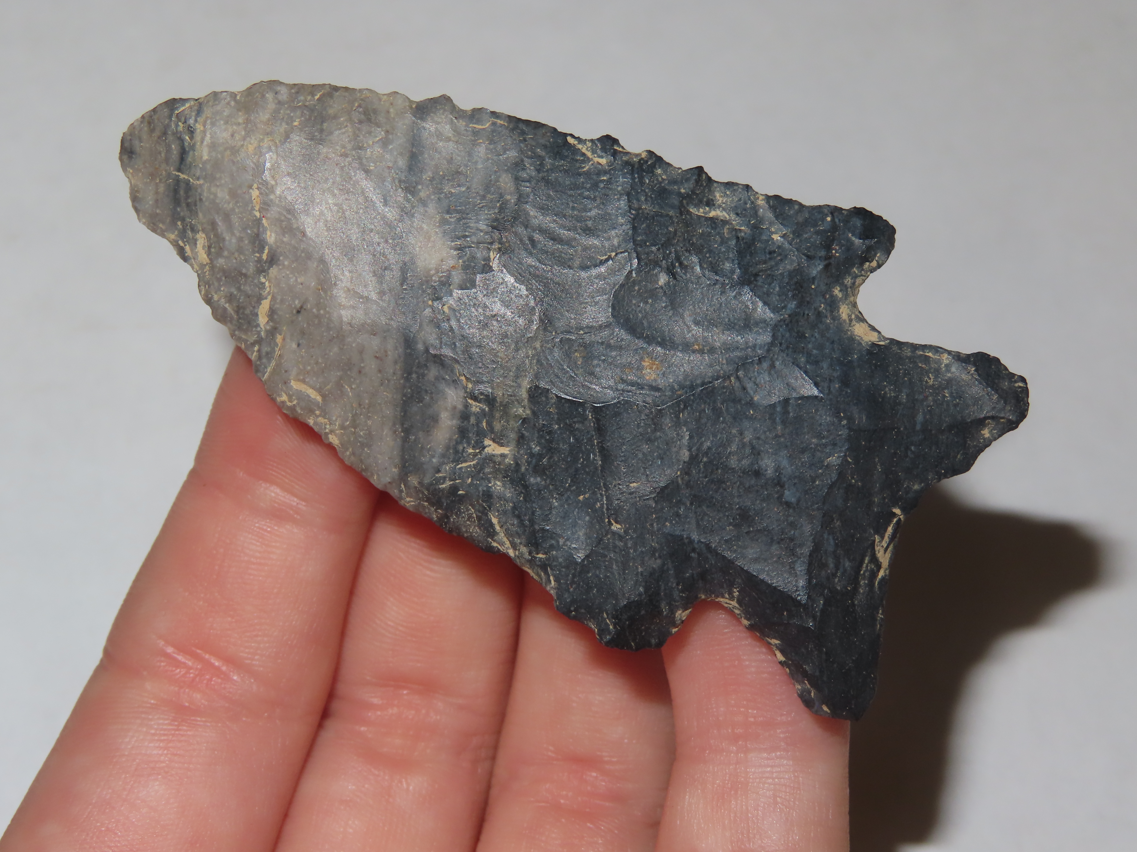 2 3/4″ Stillwell, Wayne County Ohio, Nice Classic Example made from a Well Patinated piece of Coshocton, Indian Arrowhead, Artifact, Spear