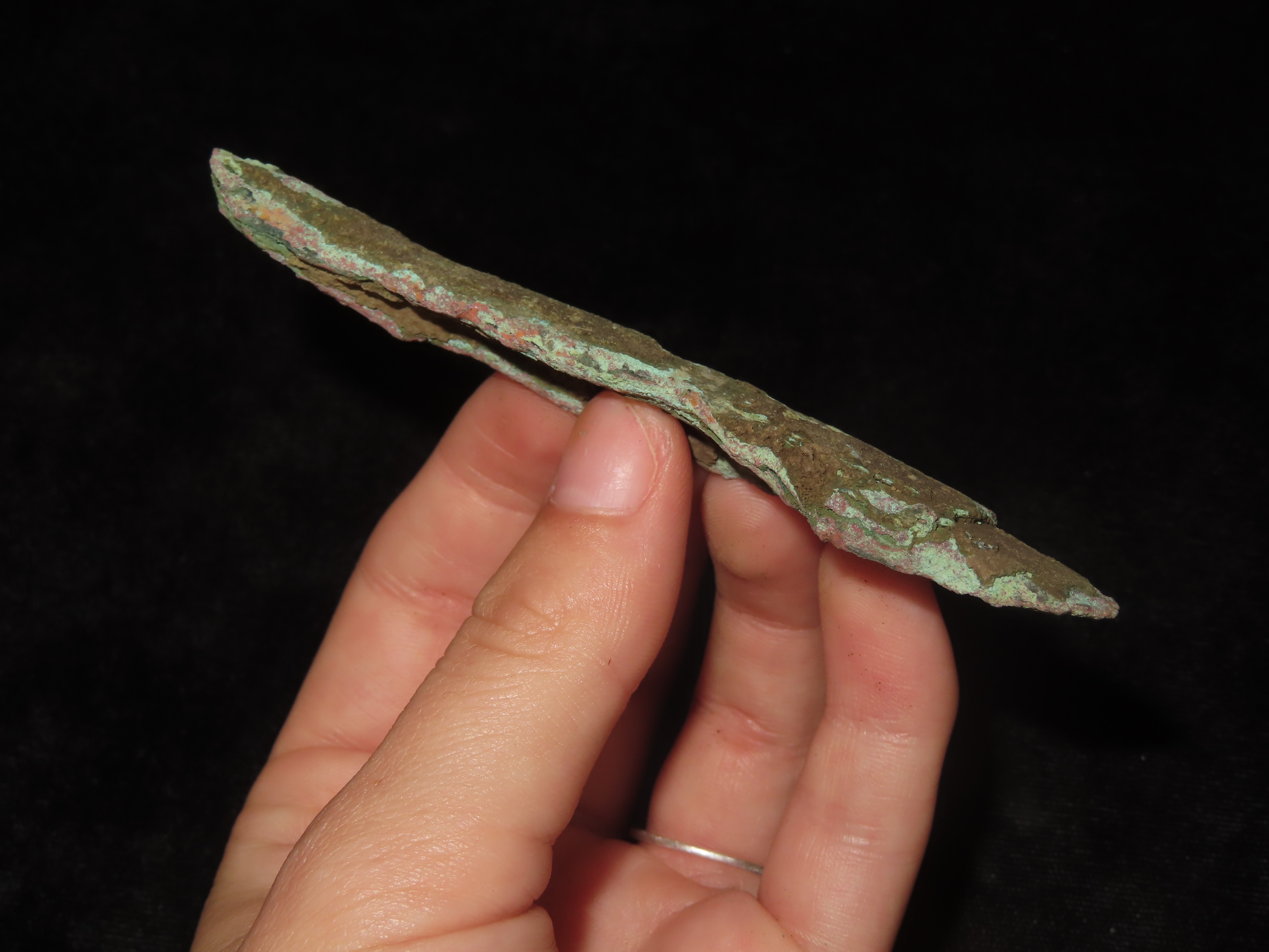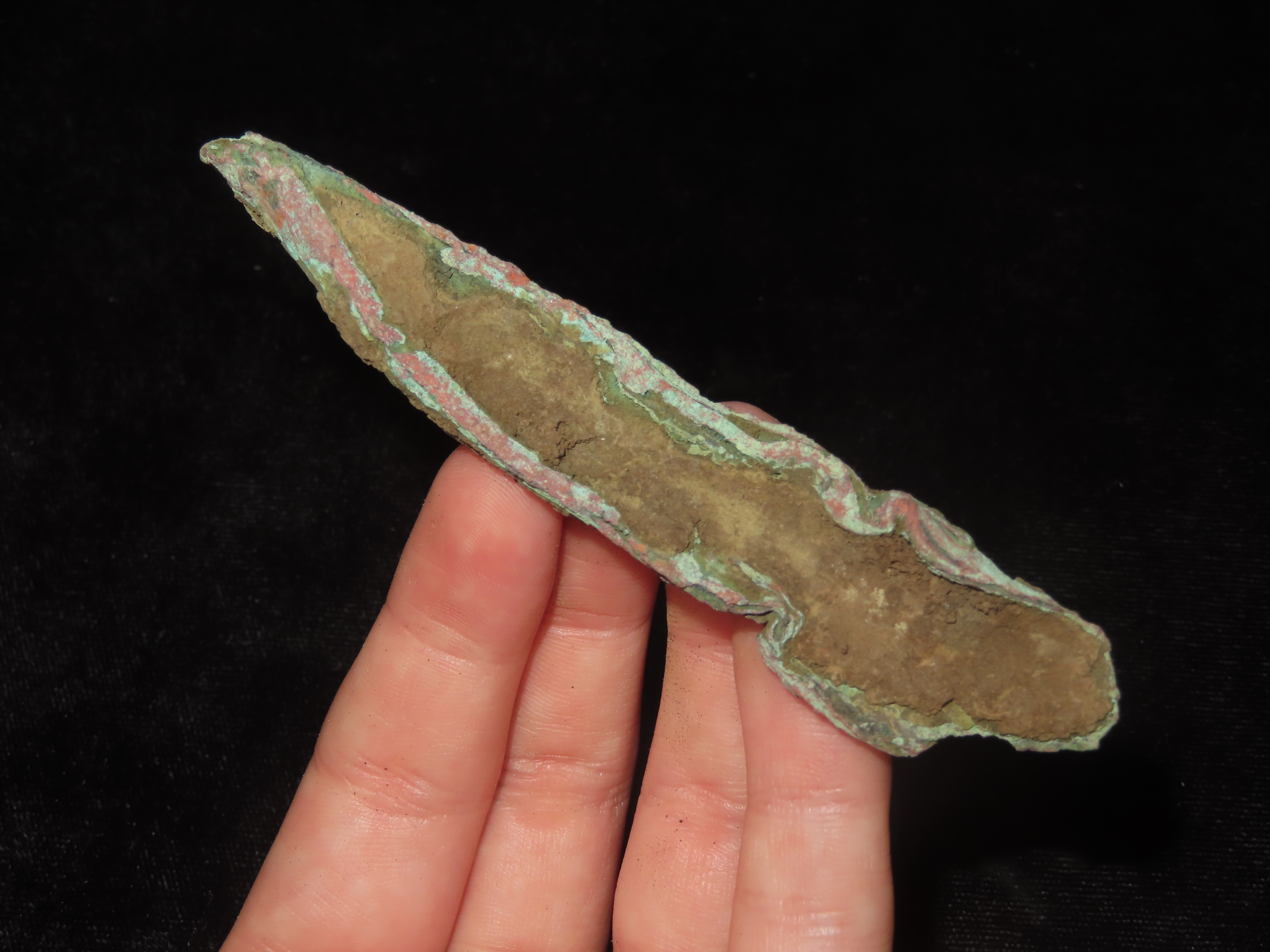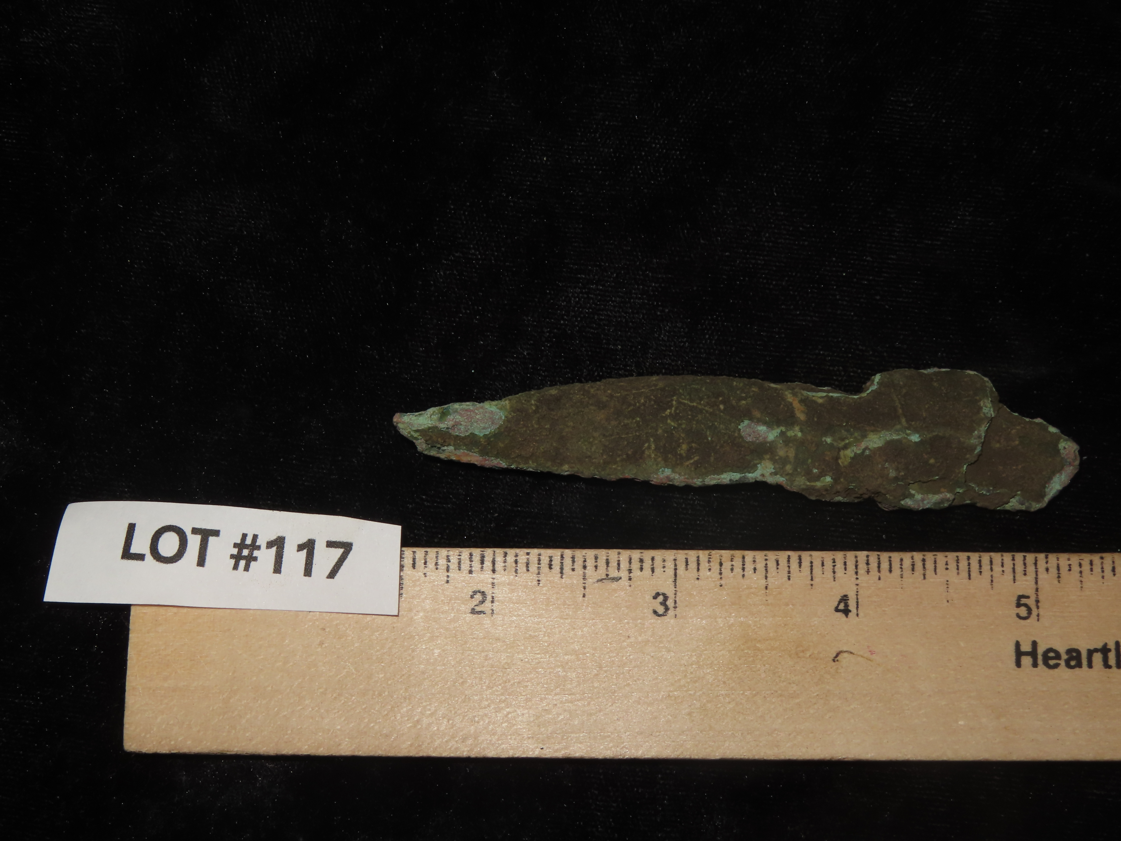 3 7/8″ Copper Socketed Spear / Arrowhead, Vilas County Wisconsin. Nice Large Example with Great Original Patina. Old Copper Culture, 4000-6000 Year old Copper Relic!