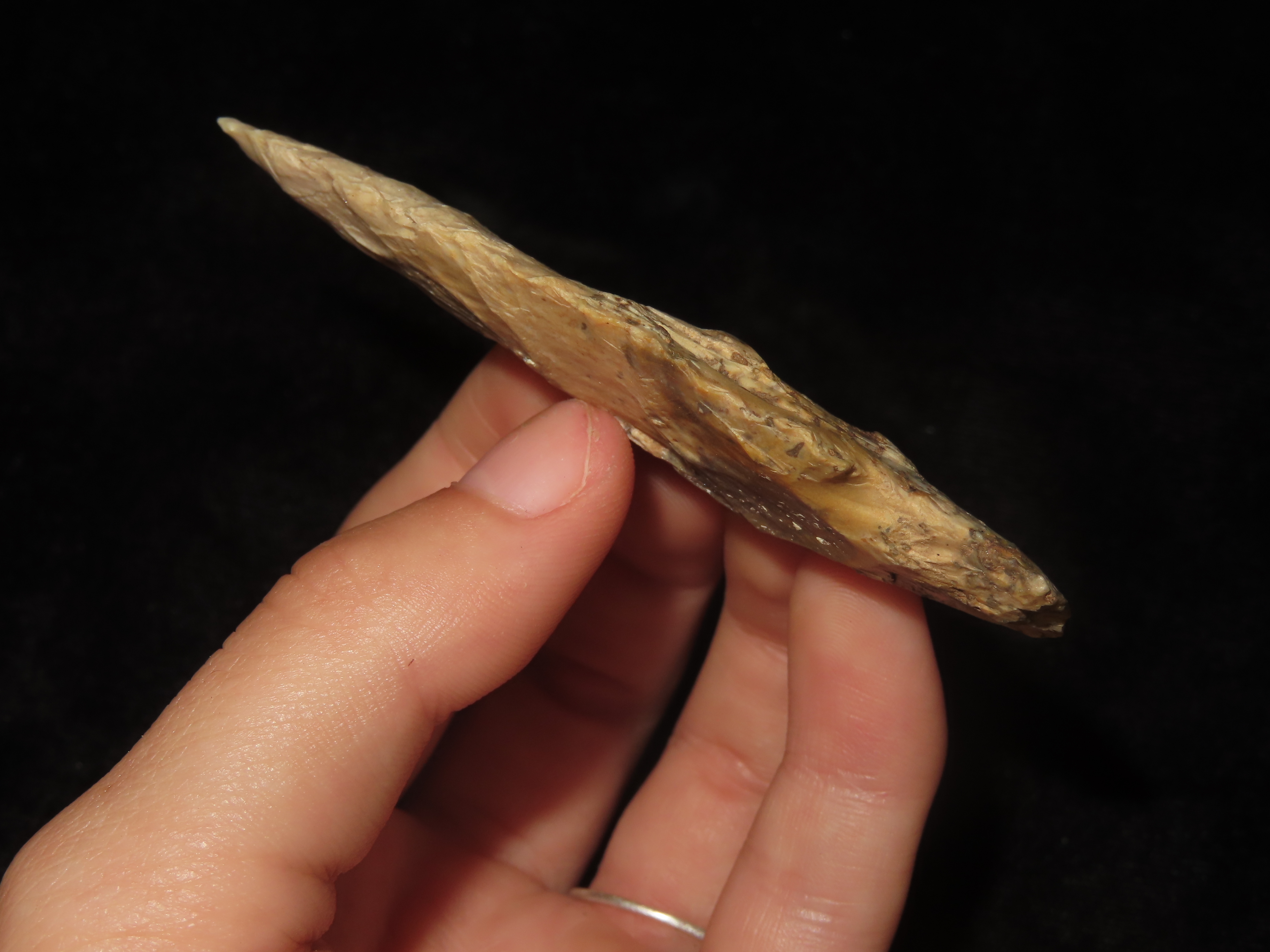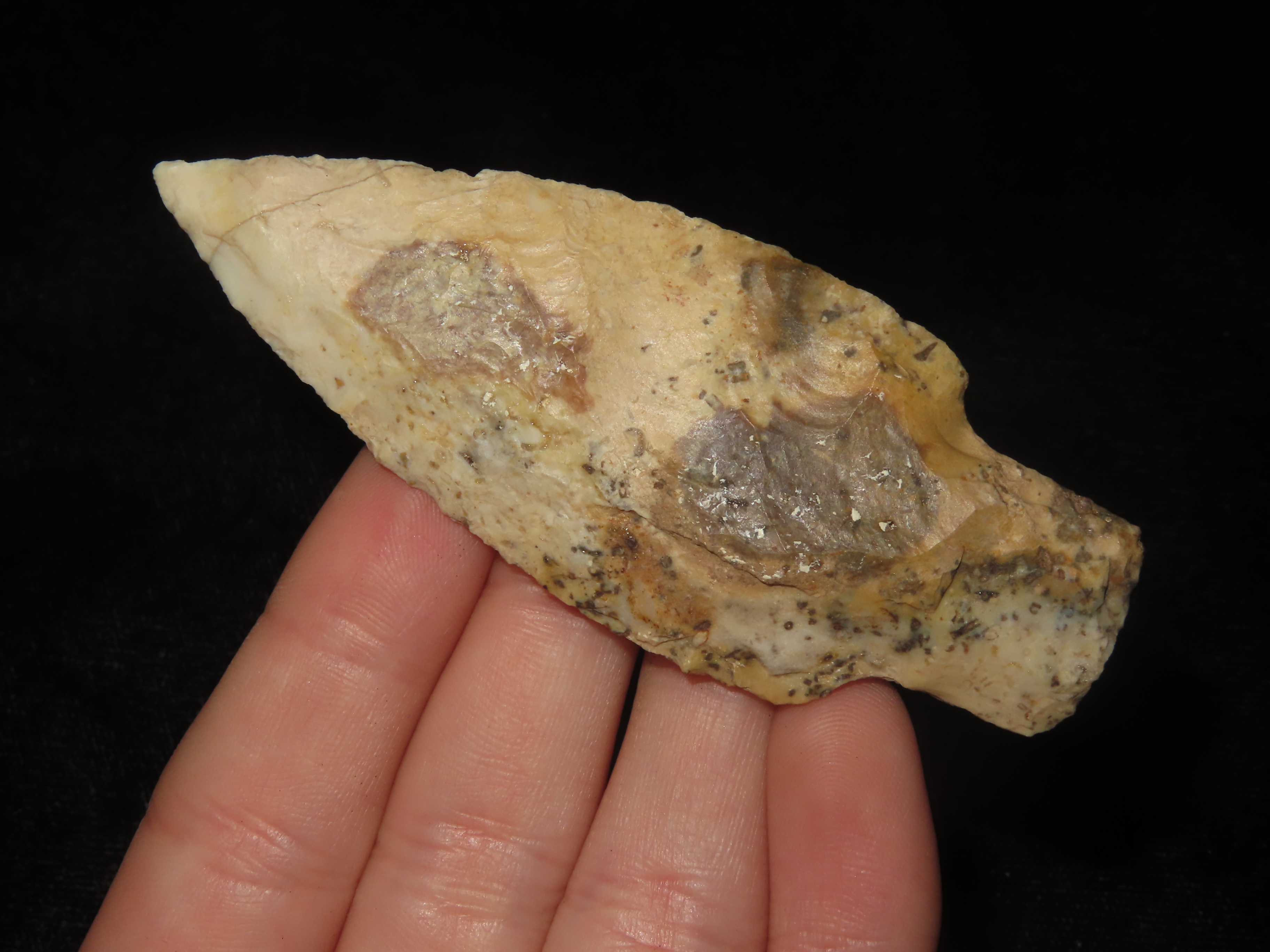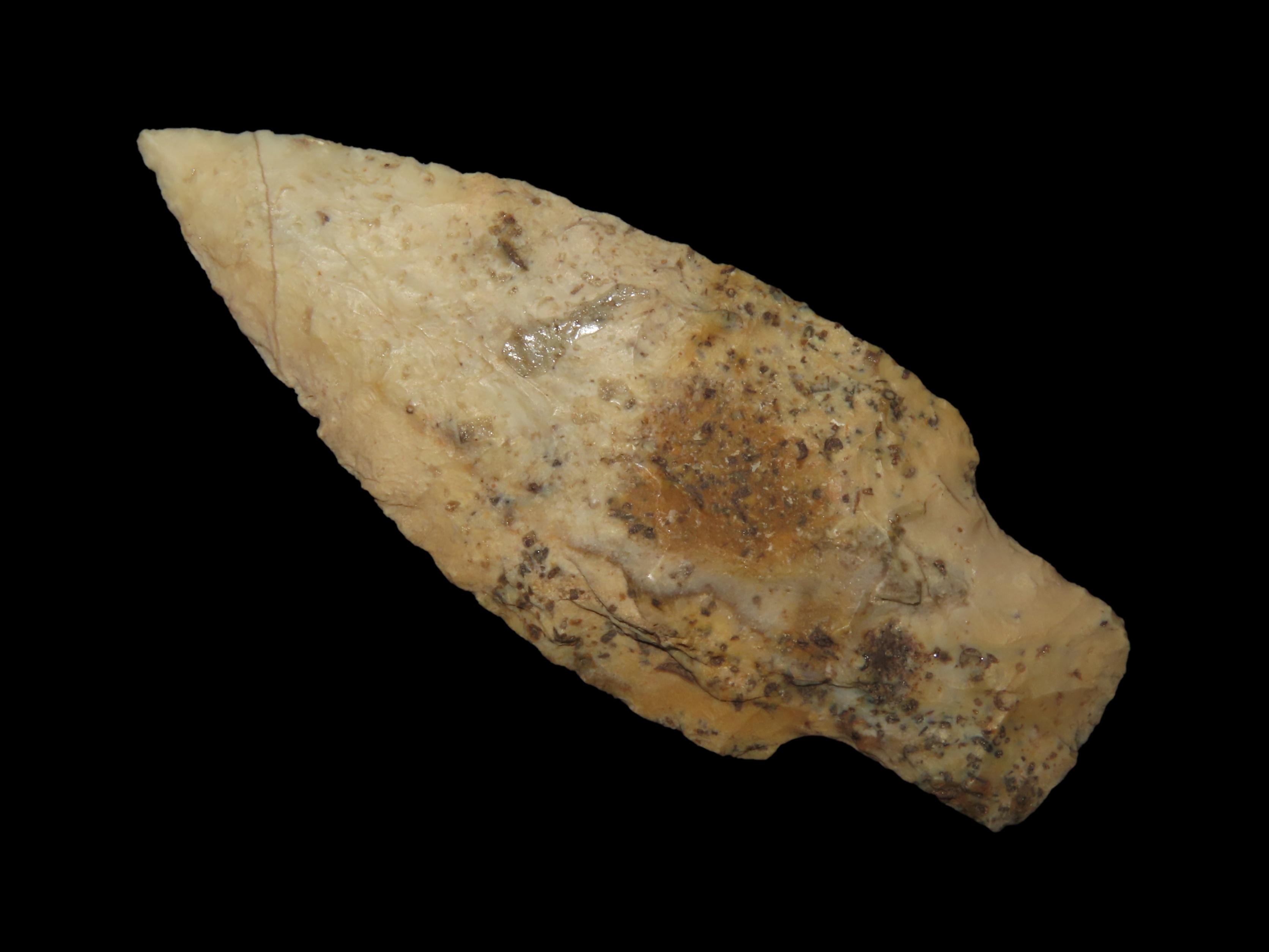 3 1/8″ Kramer, Lincoln County Missouri. Nice Colorful Example with Great Early Flaking. Indian Arrowhead, Artifact.