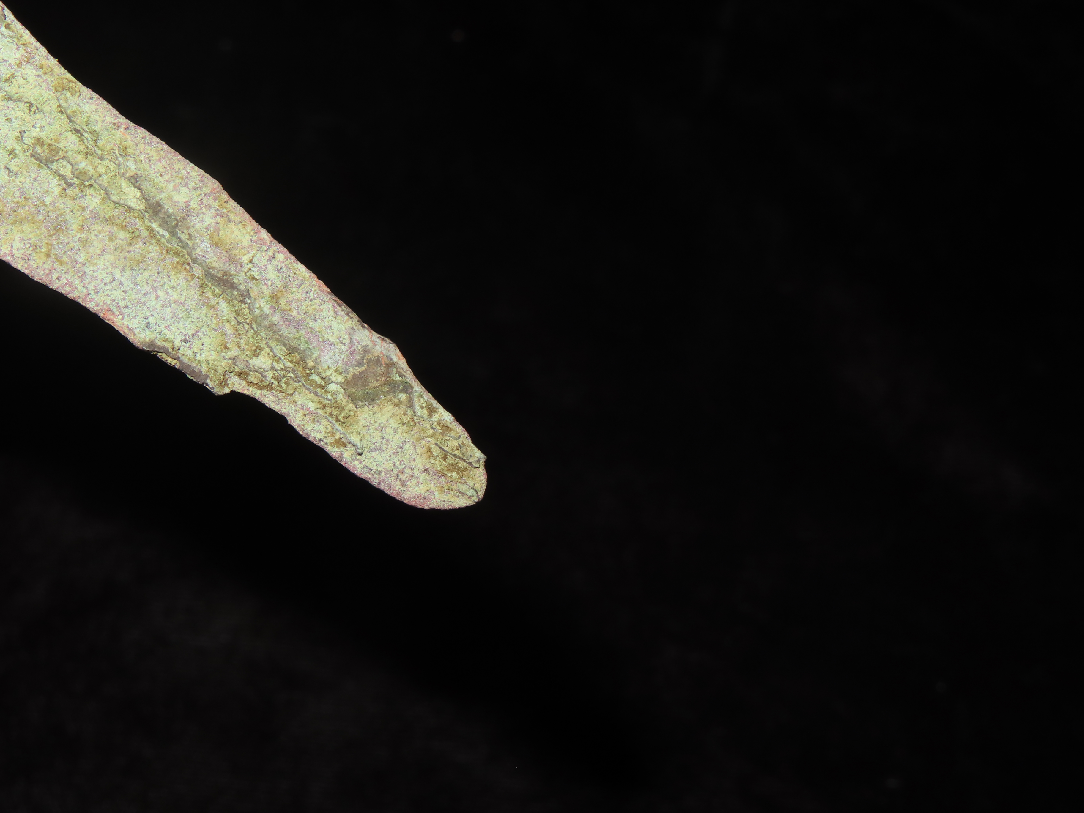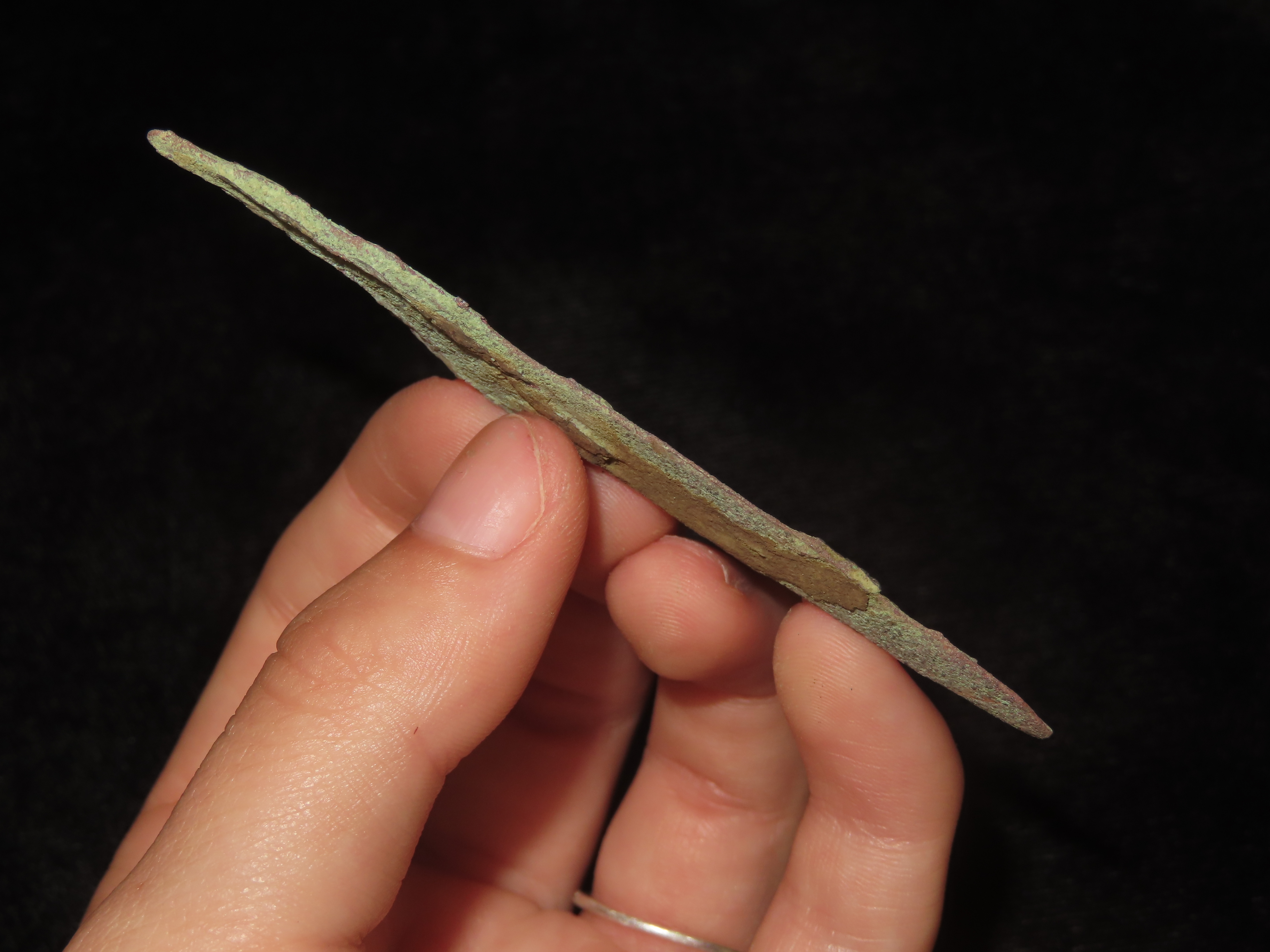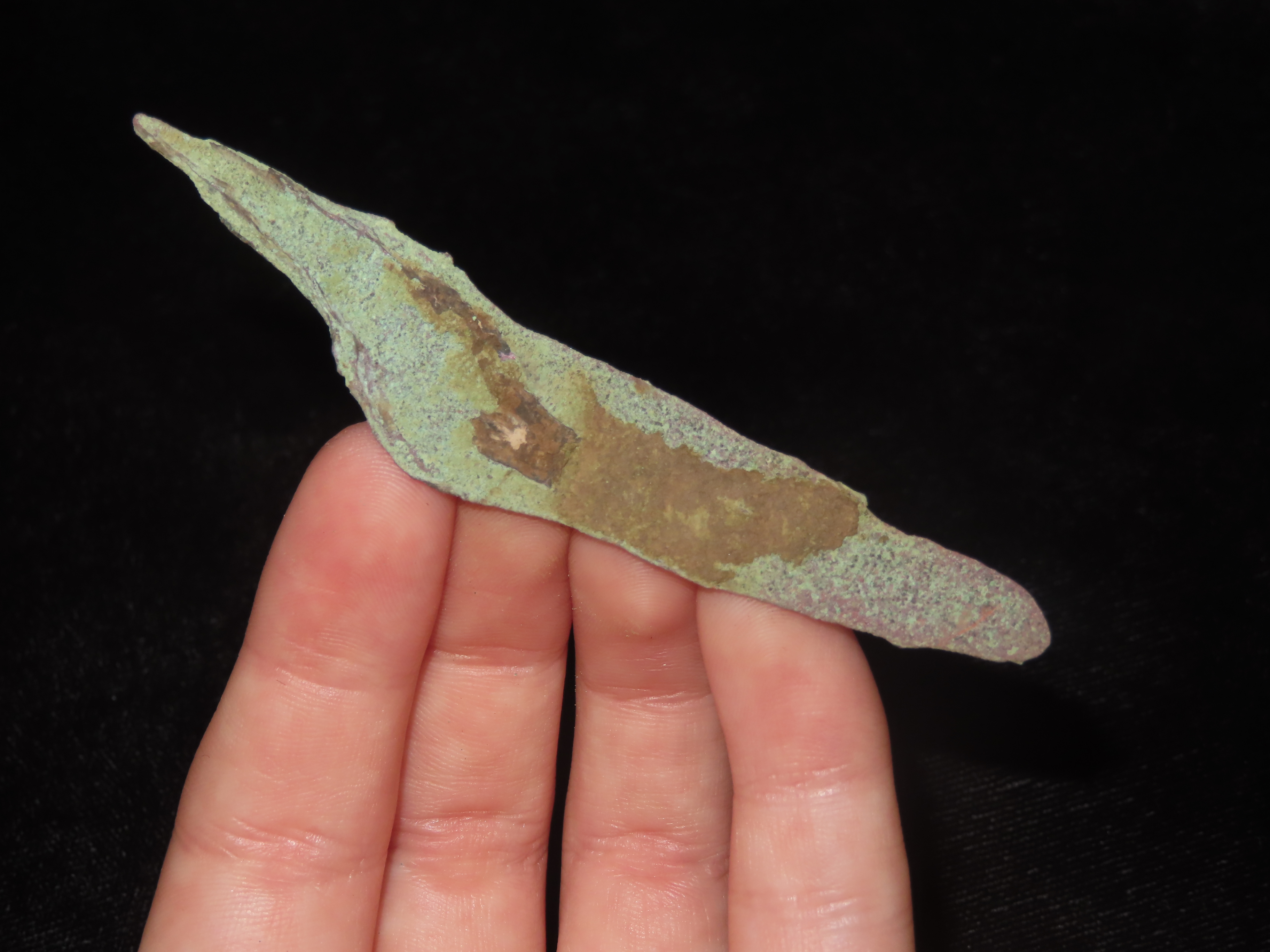 3 1/4″ Copper Tang Knife, Vilas County Wisconsin. Nice Classic Example with Great Original Patina. Old Copper Culture, 4000-6000 Year old Copper Relic!