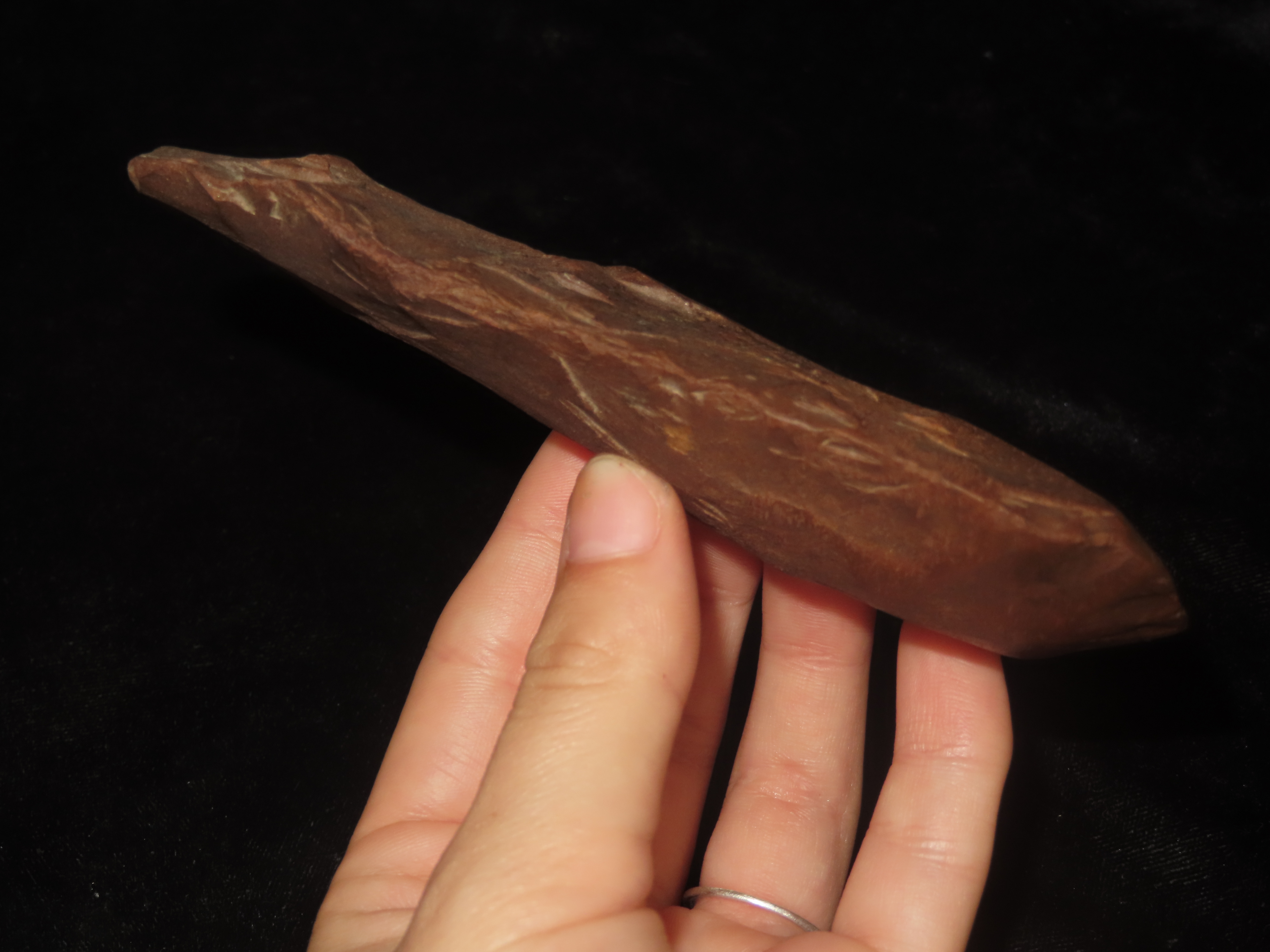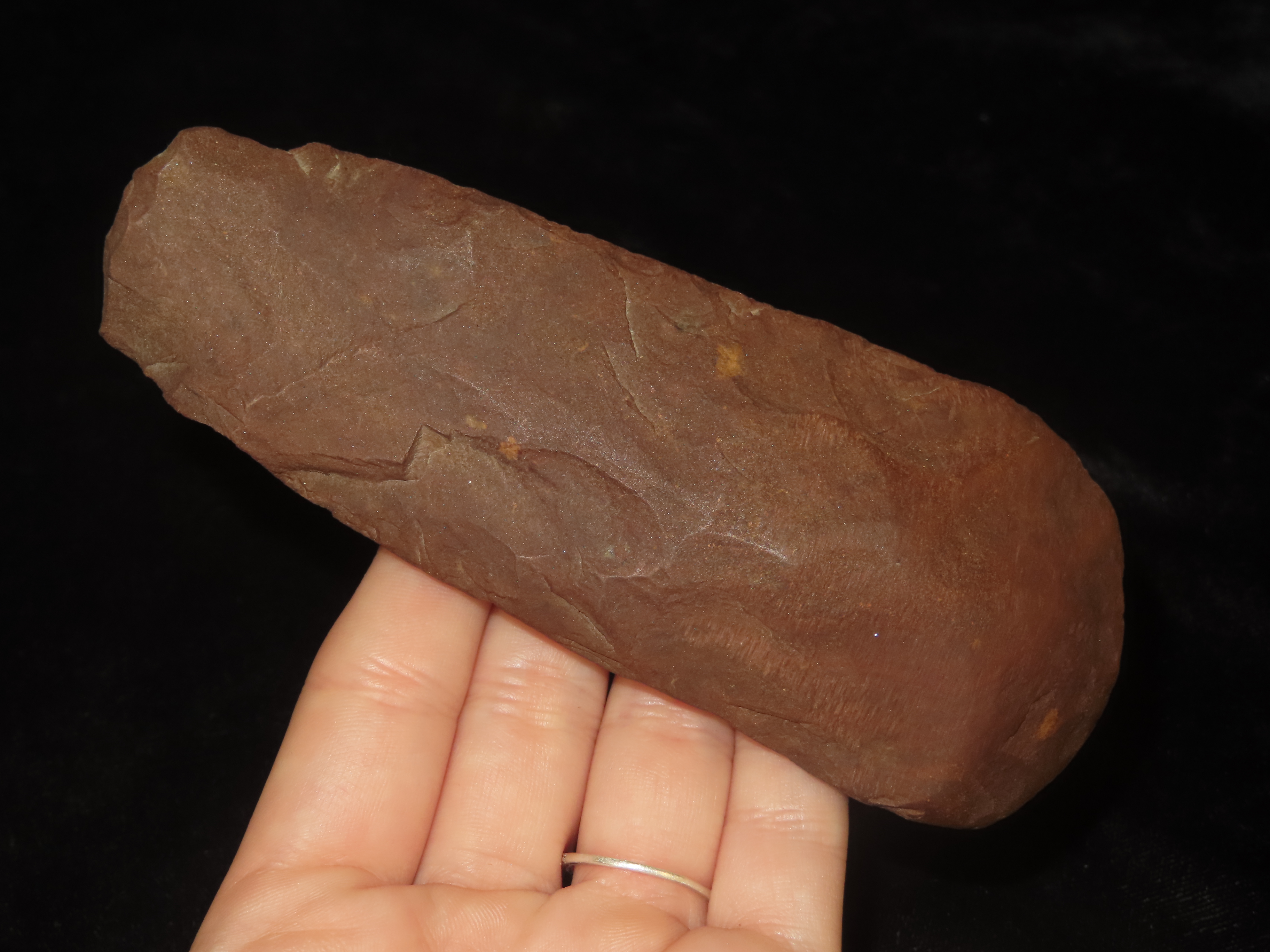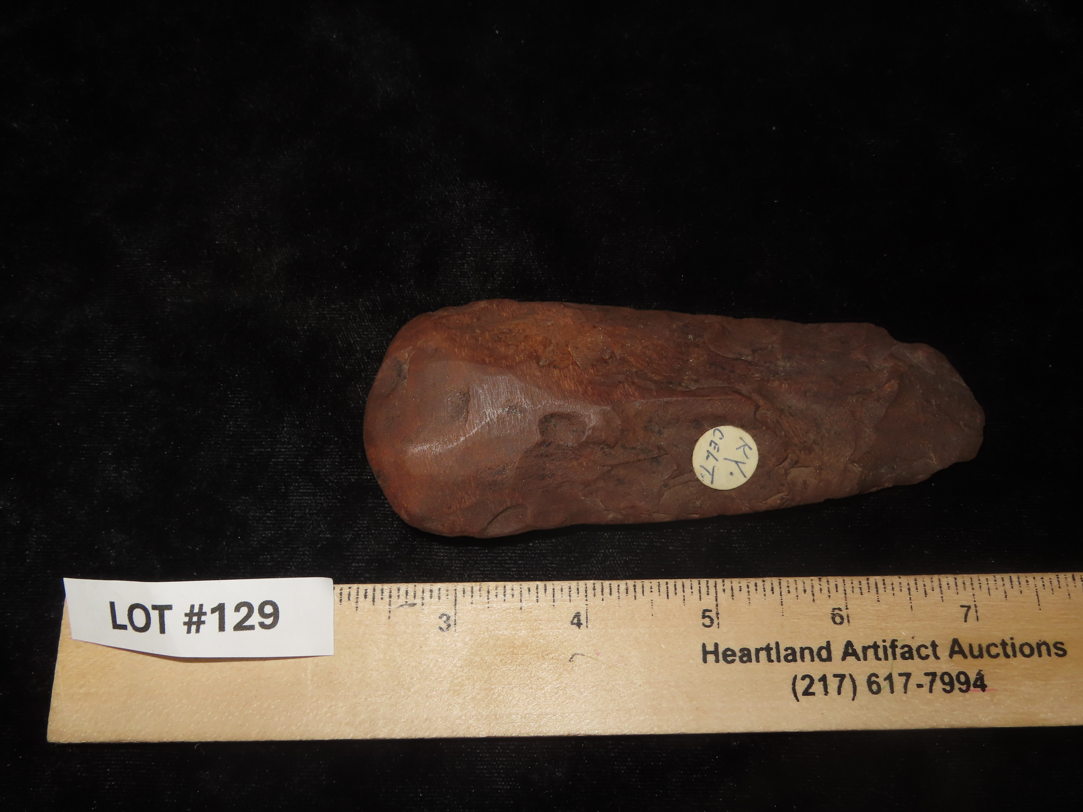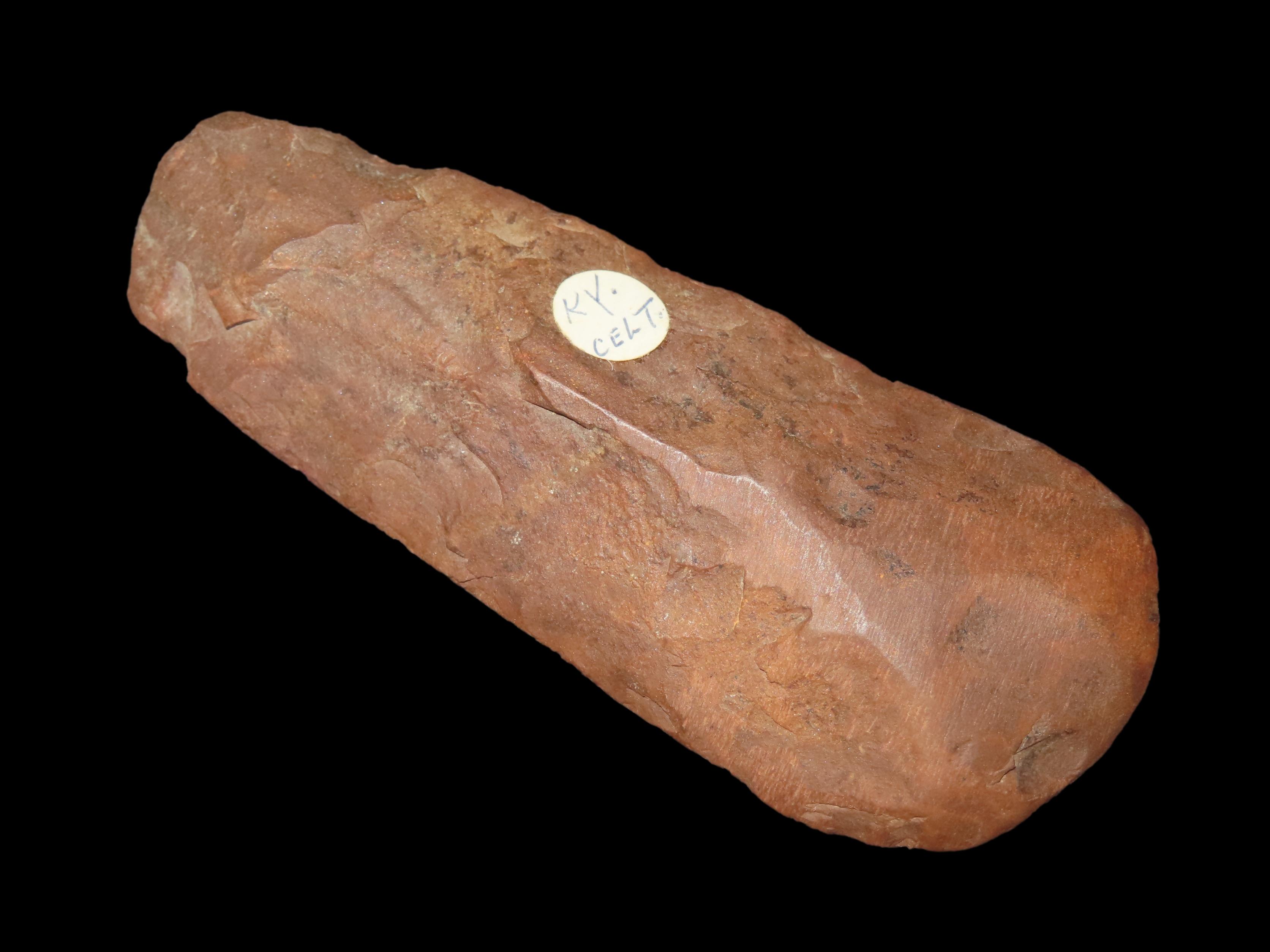 5″ Red Jasper Polished Flint Celt, Kentucky. Heavily Patinated example with Great Color & Nice Polish. Ex Gary Noel.