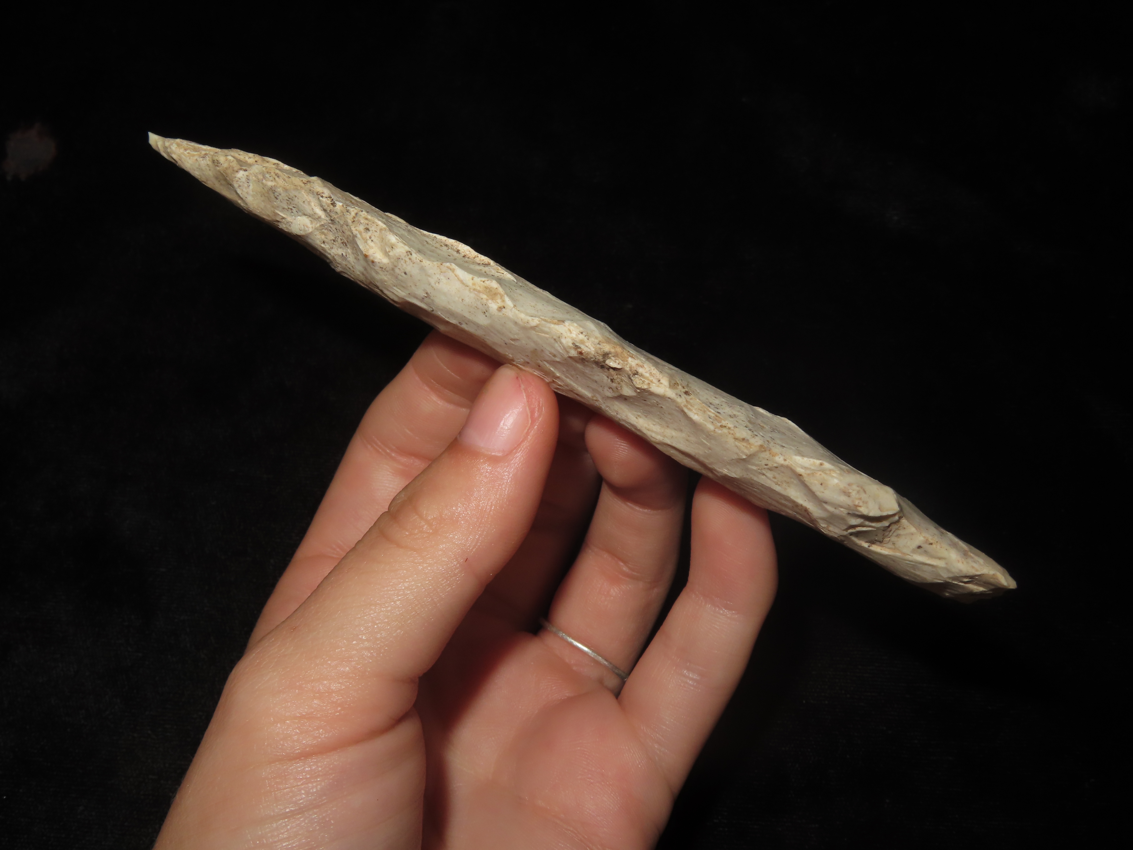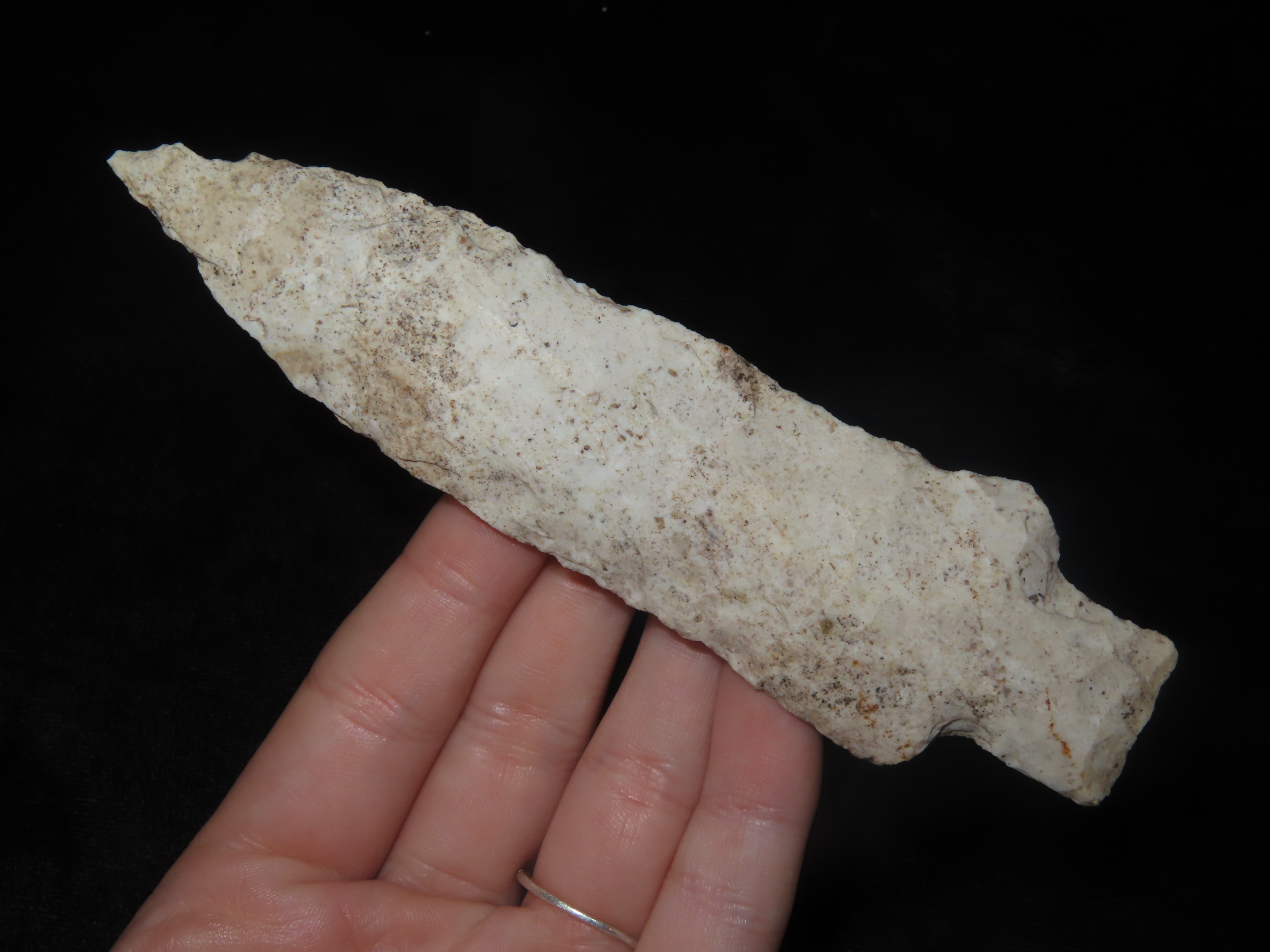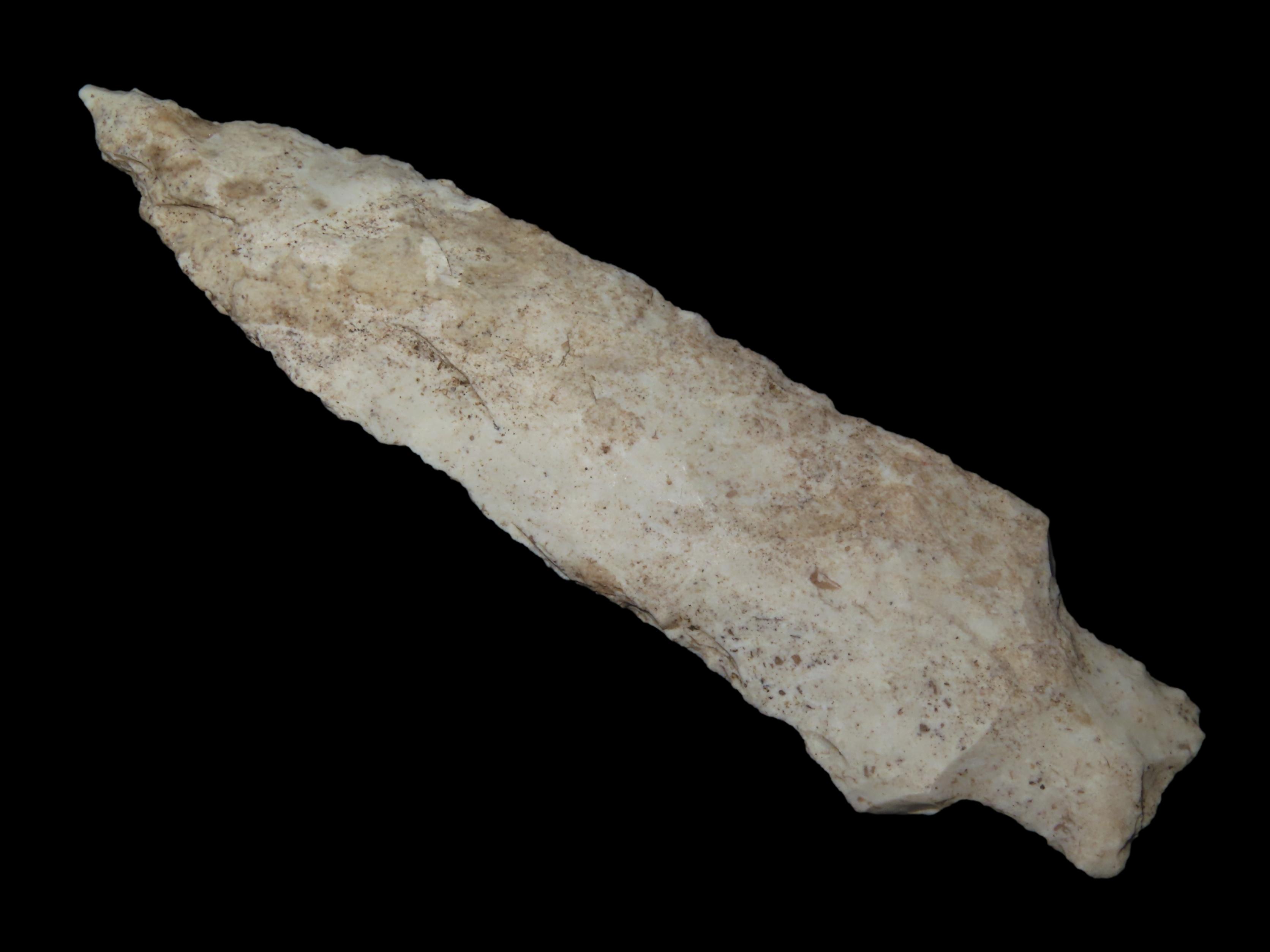 5 1/4″ Etley, Pike County Illinois. Nice Large Example with Heavy Patina. Ex Warren Suleski Collection. Indian Arrowhead, Artifact, Spear.