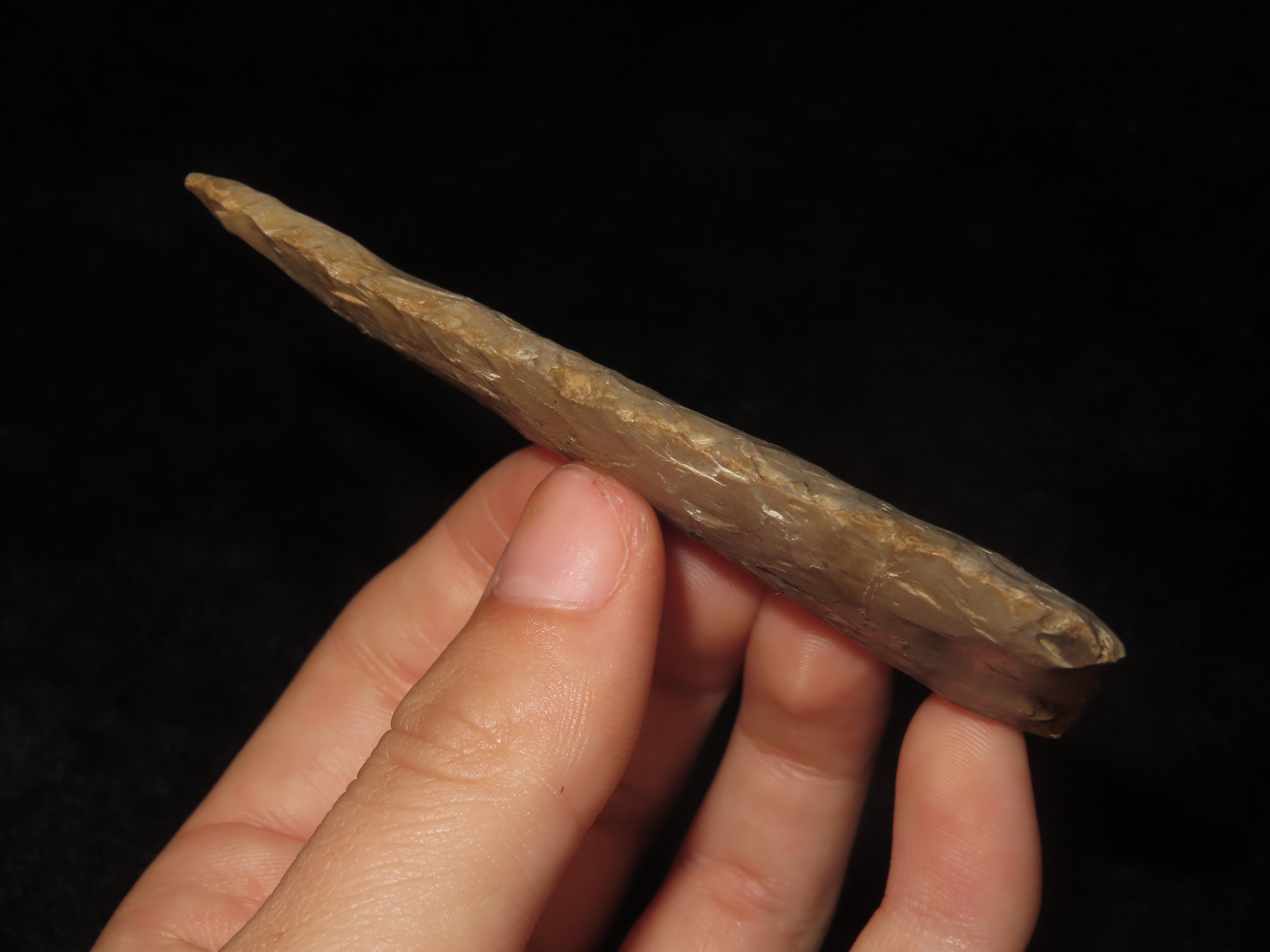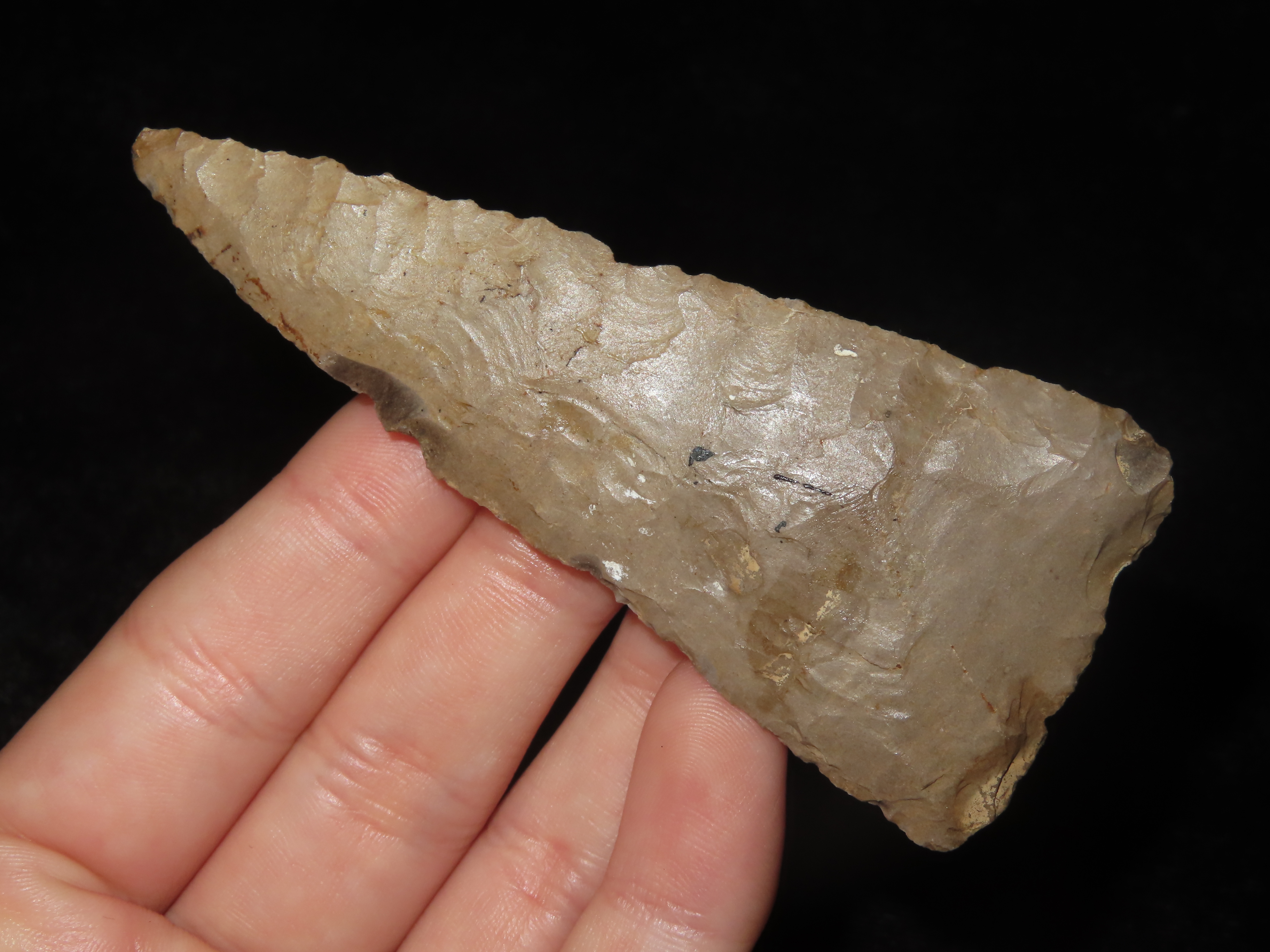 3 3/8″ Cobbs Knife, Breckinridge County Kentucky. Very Well Flaked Example with Heavy Patination, Thin.