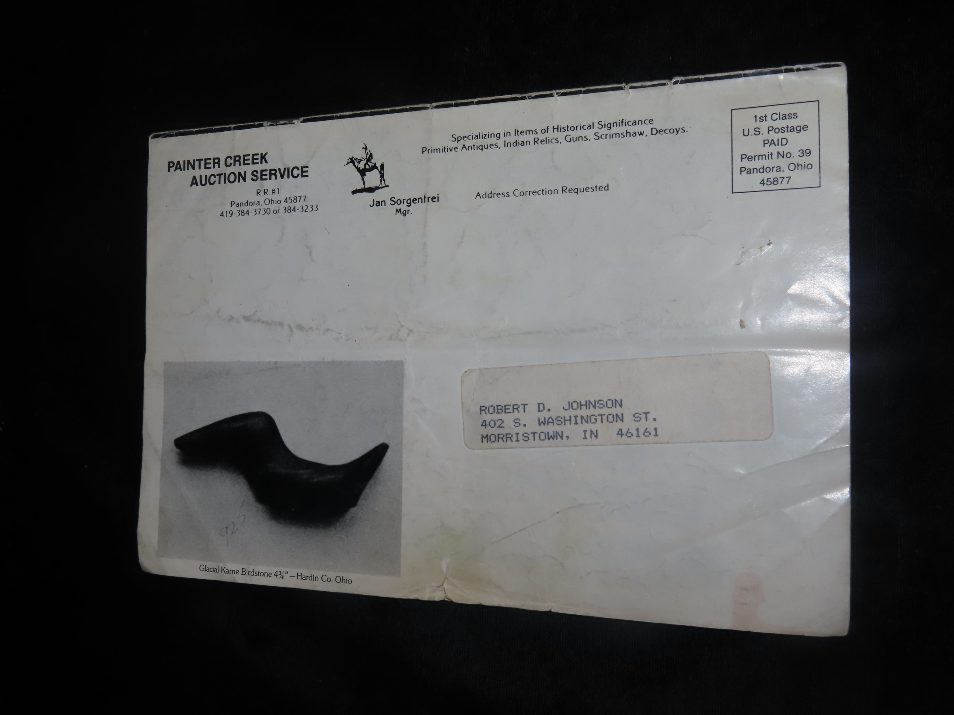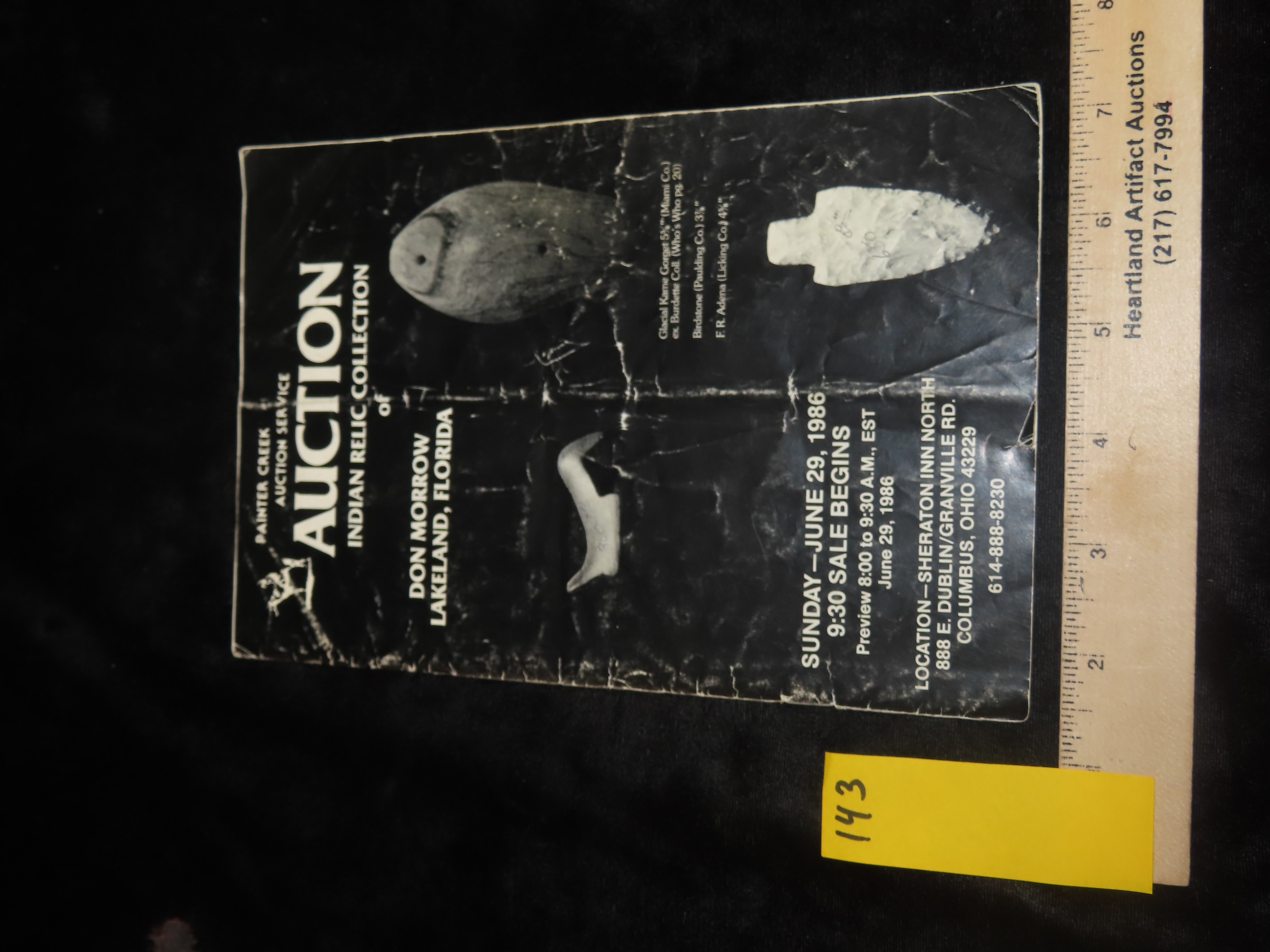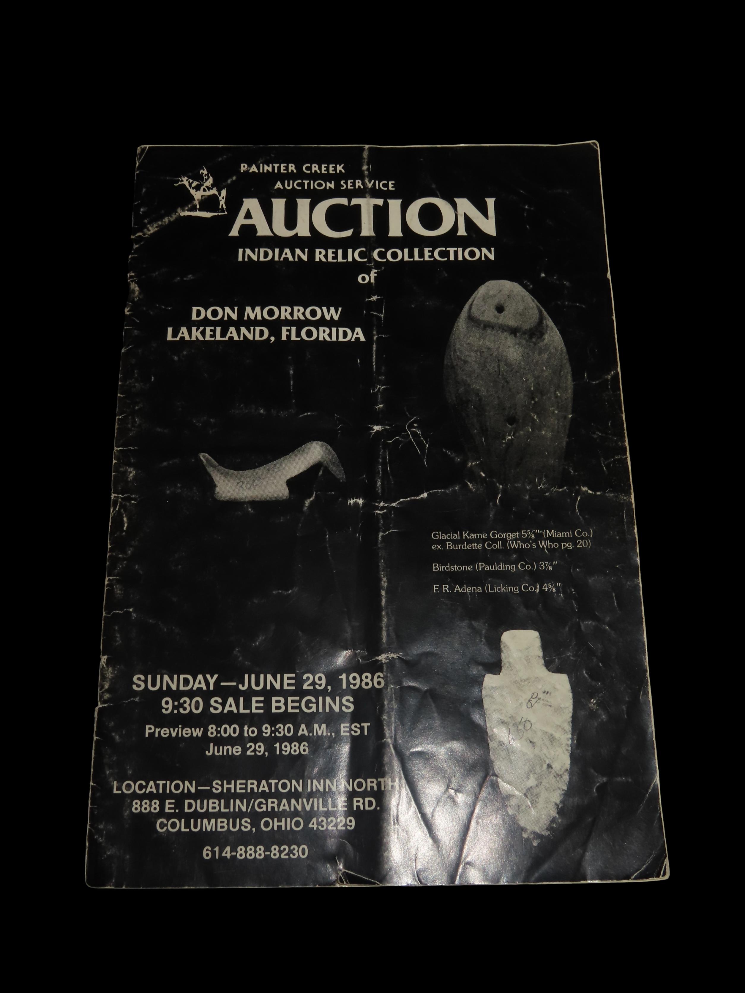 1986 Don Morrow Indian Artifact Collection Auction Catalog, Painter Creek Auction Service, Birdstones, Pendants, Gorgets, Axes, Pestles, Etc… Tons of Great Old Time Relics