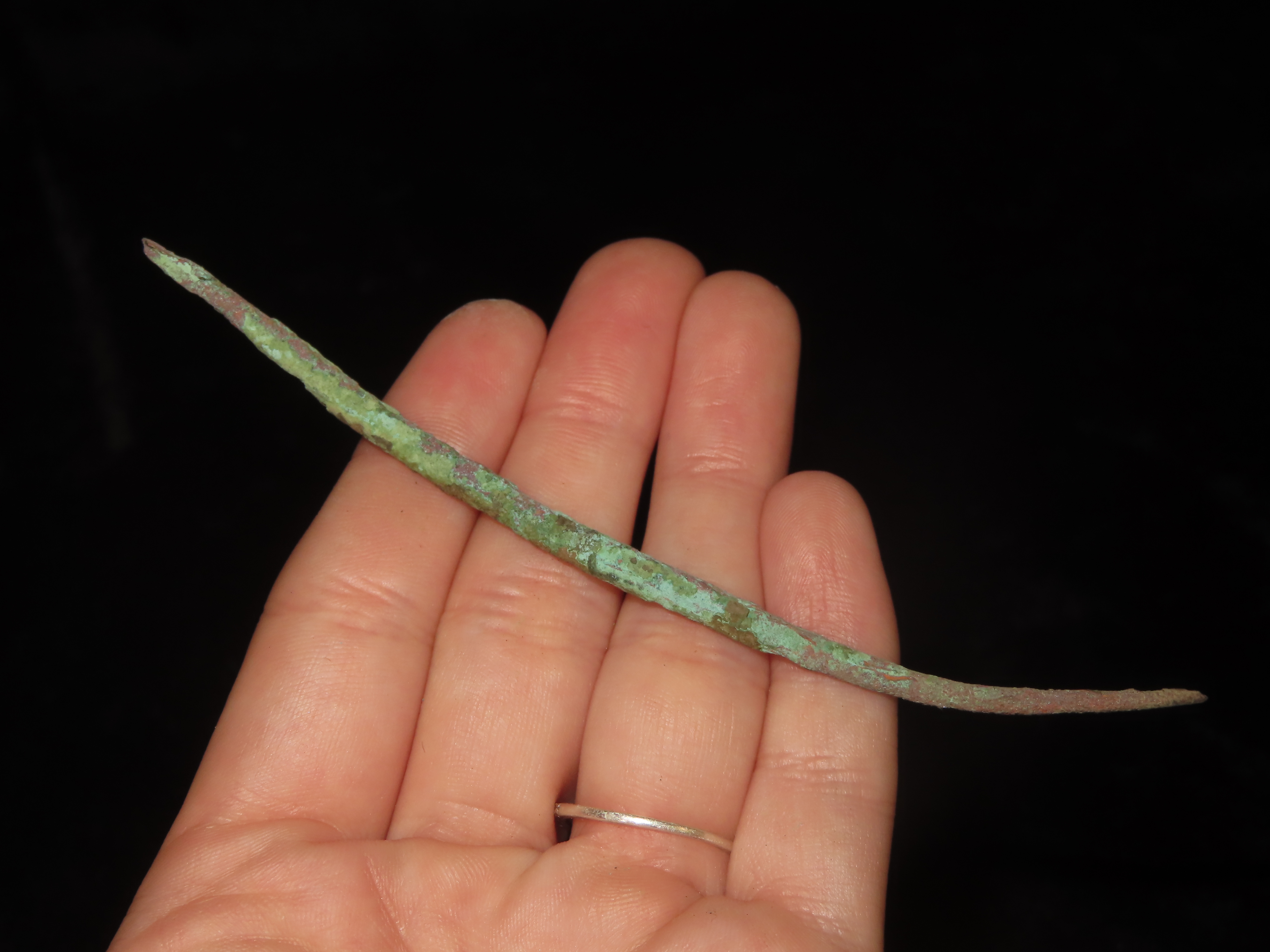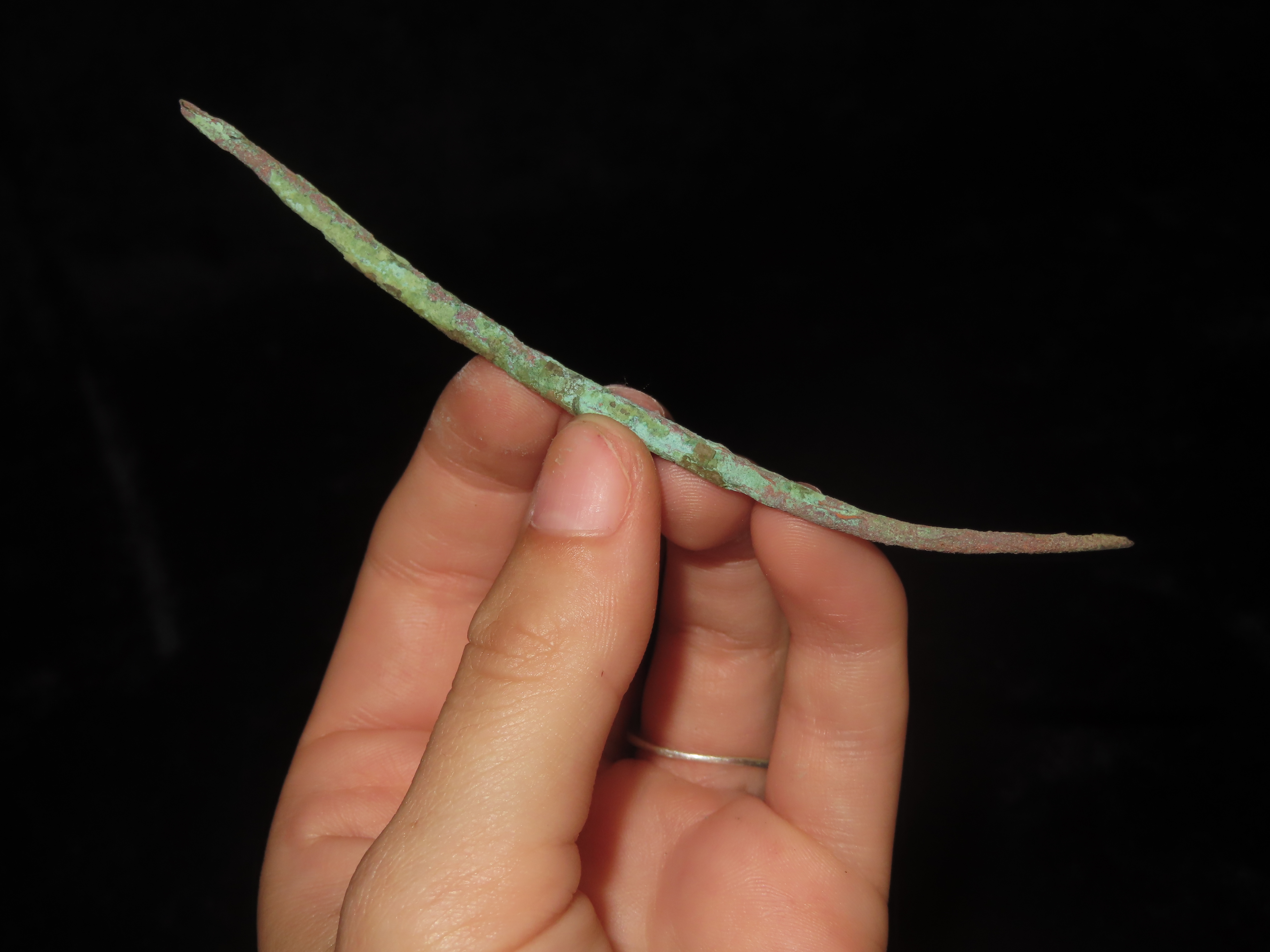 4 7/16″ Copper Awl / Needle / Hairpin, Vilas County Wisconsin. Nice Example with Great Original Patina. Old Copper Culture, 4000-6000 Year old Copper Relic!
