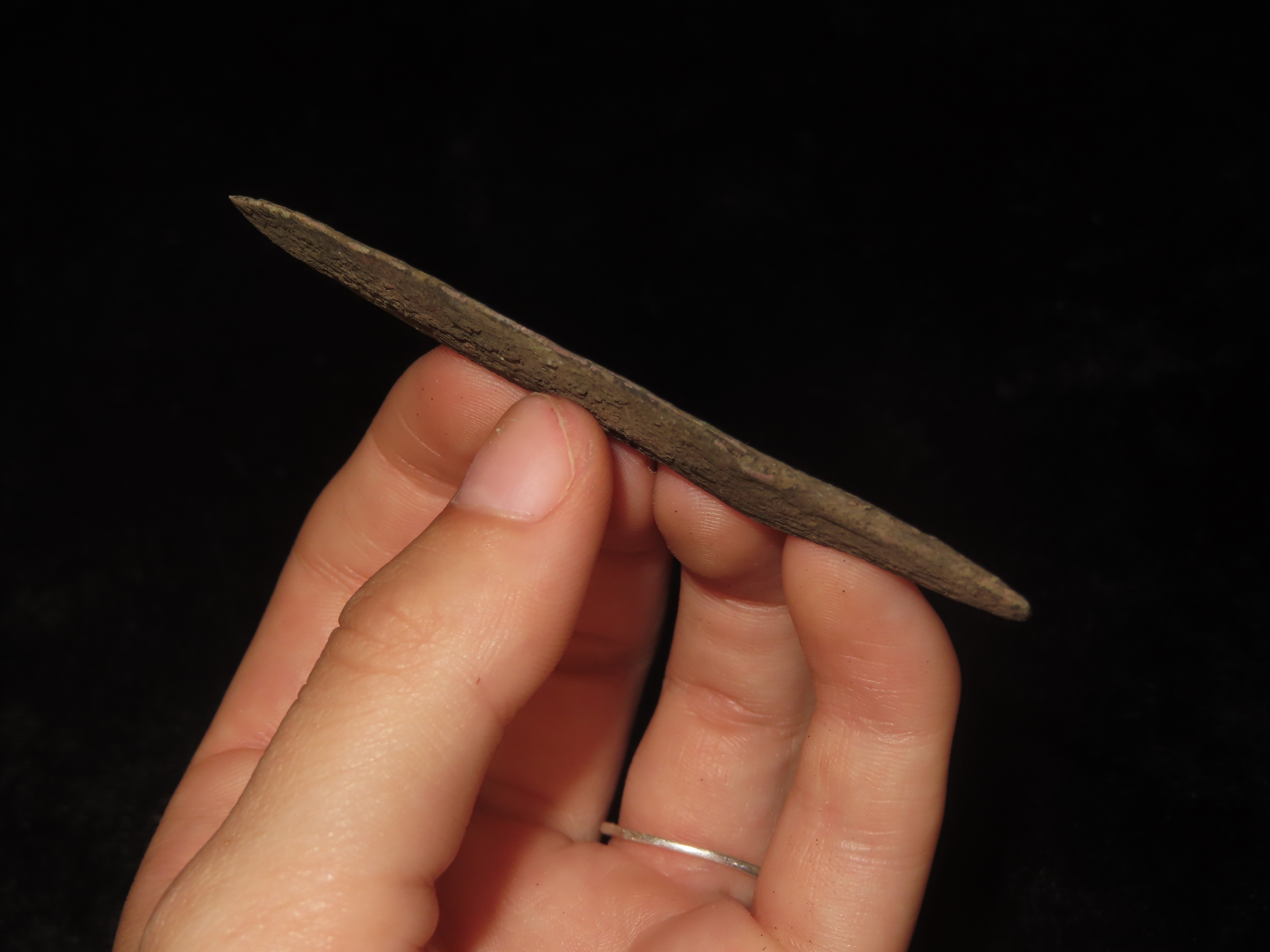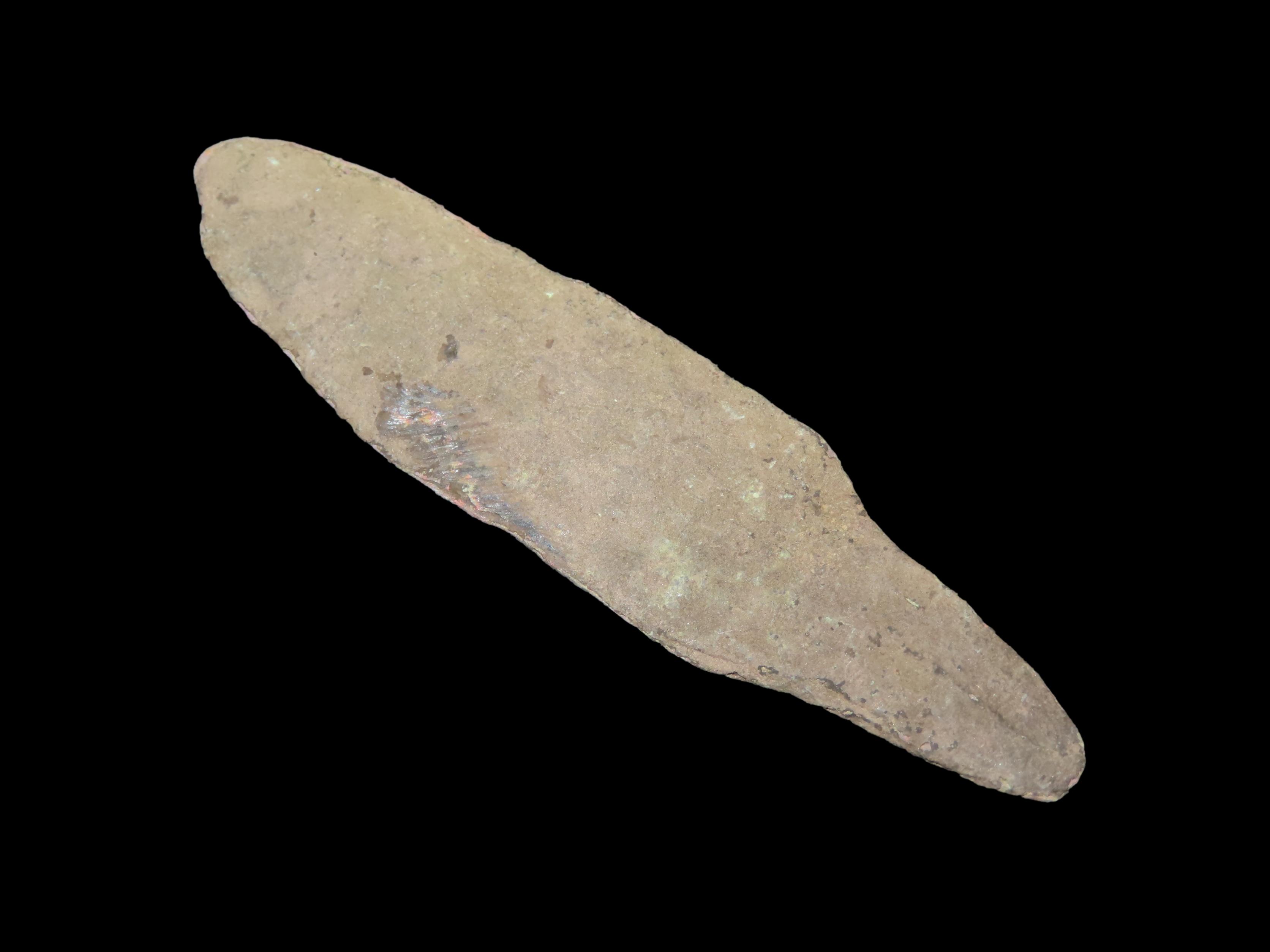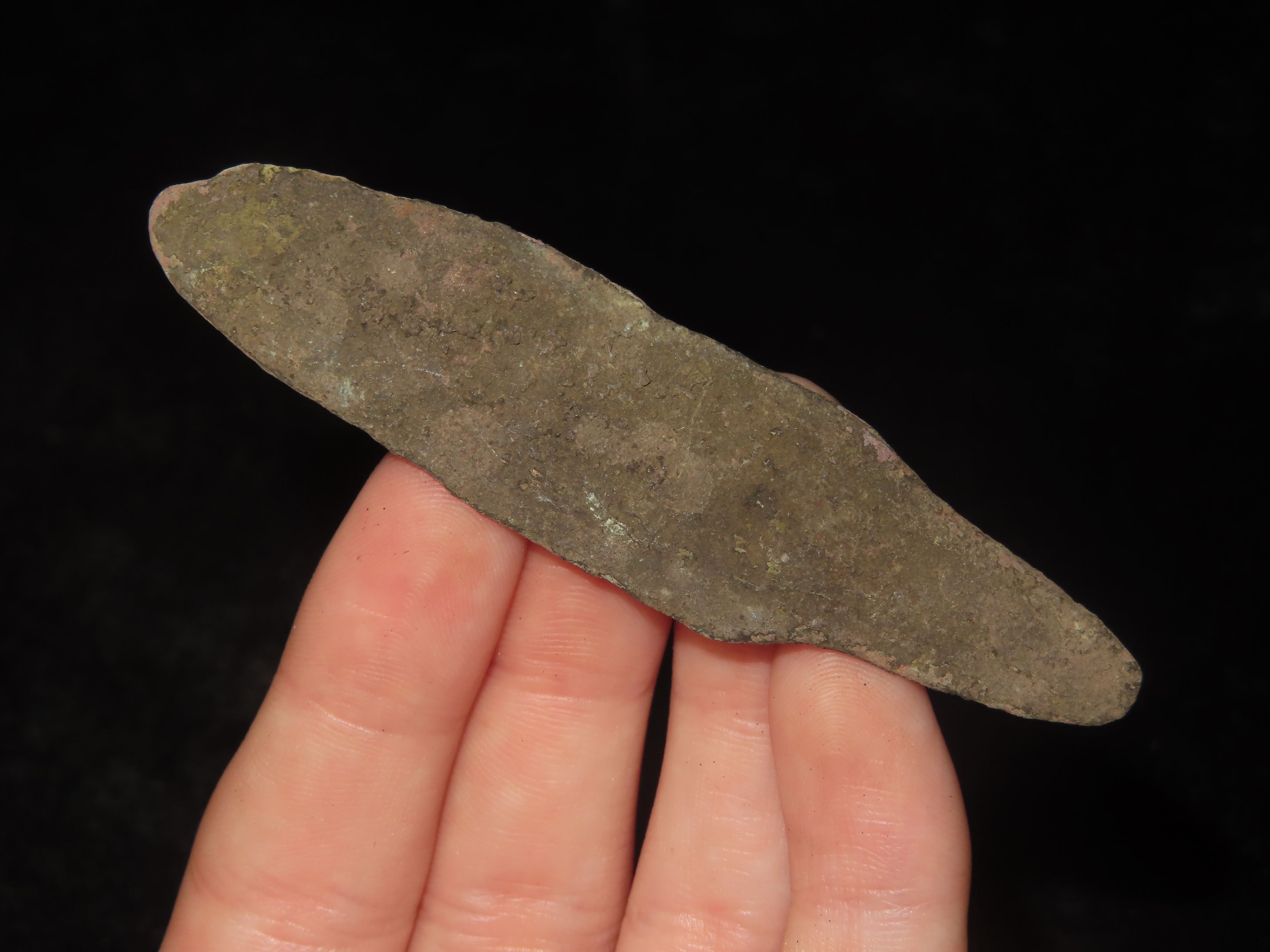 3 1/8″ Copper Tang Knife, Vilas County Wisconsin. Nice Example with Great Original Patina. Old Copper Culture, 4000-6000 Year old Copper Relic!