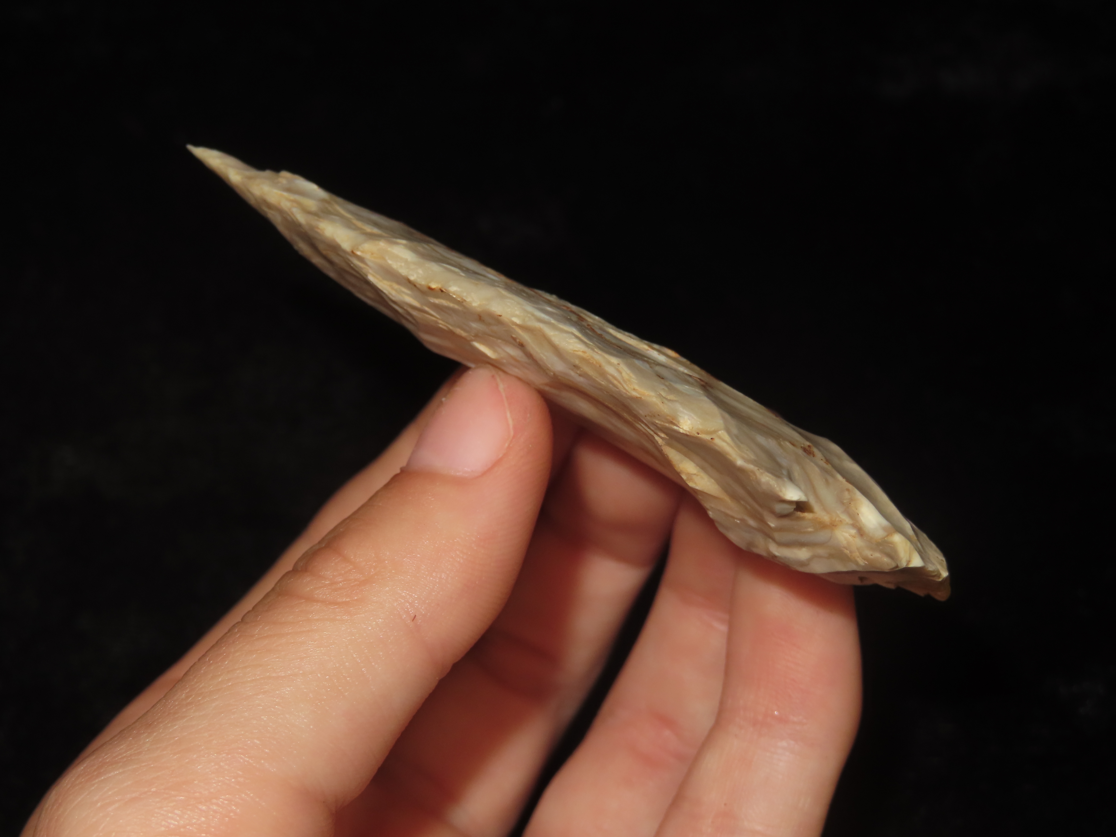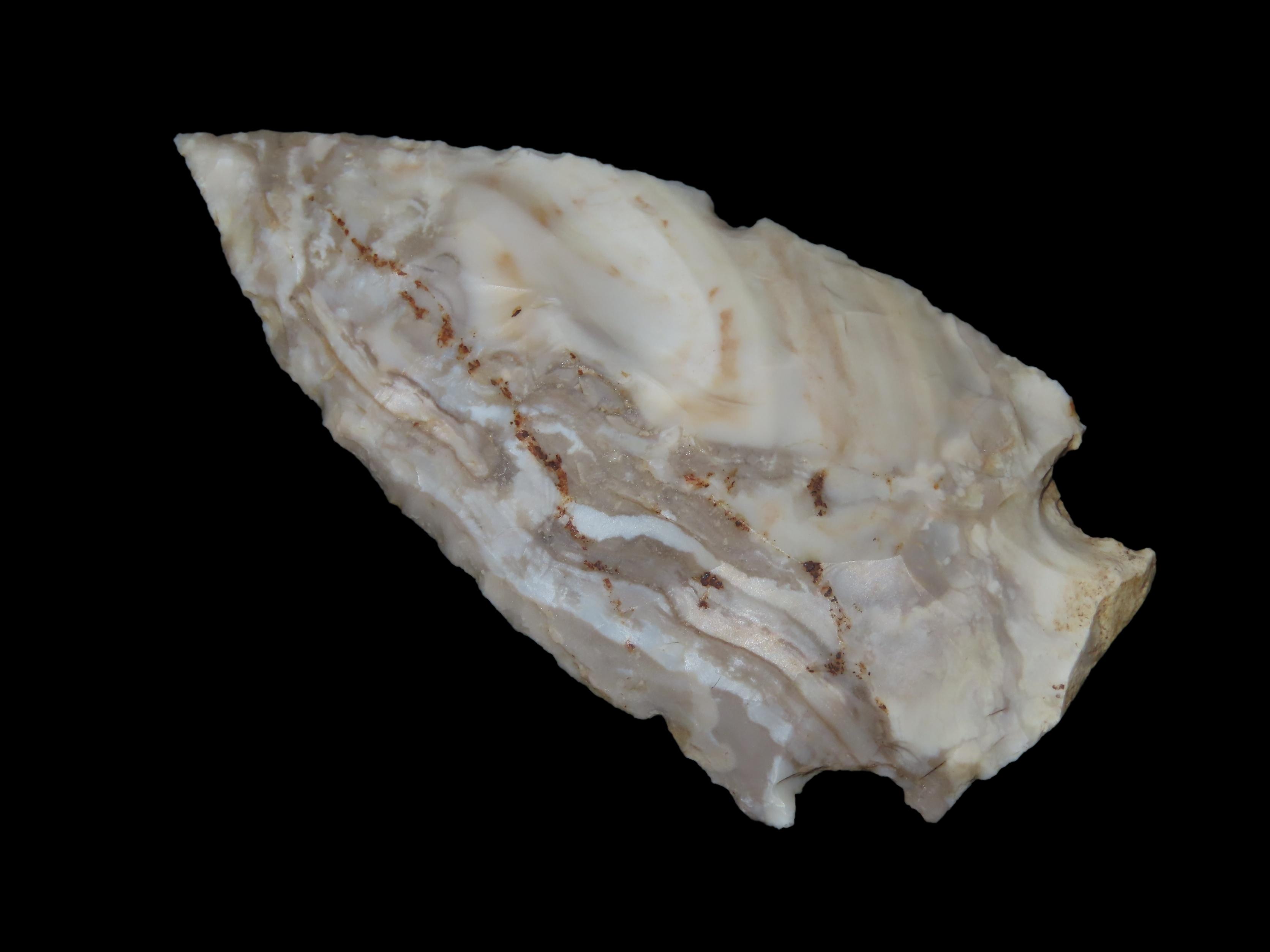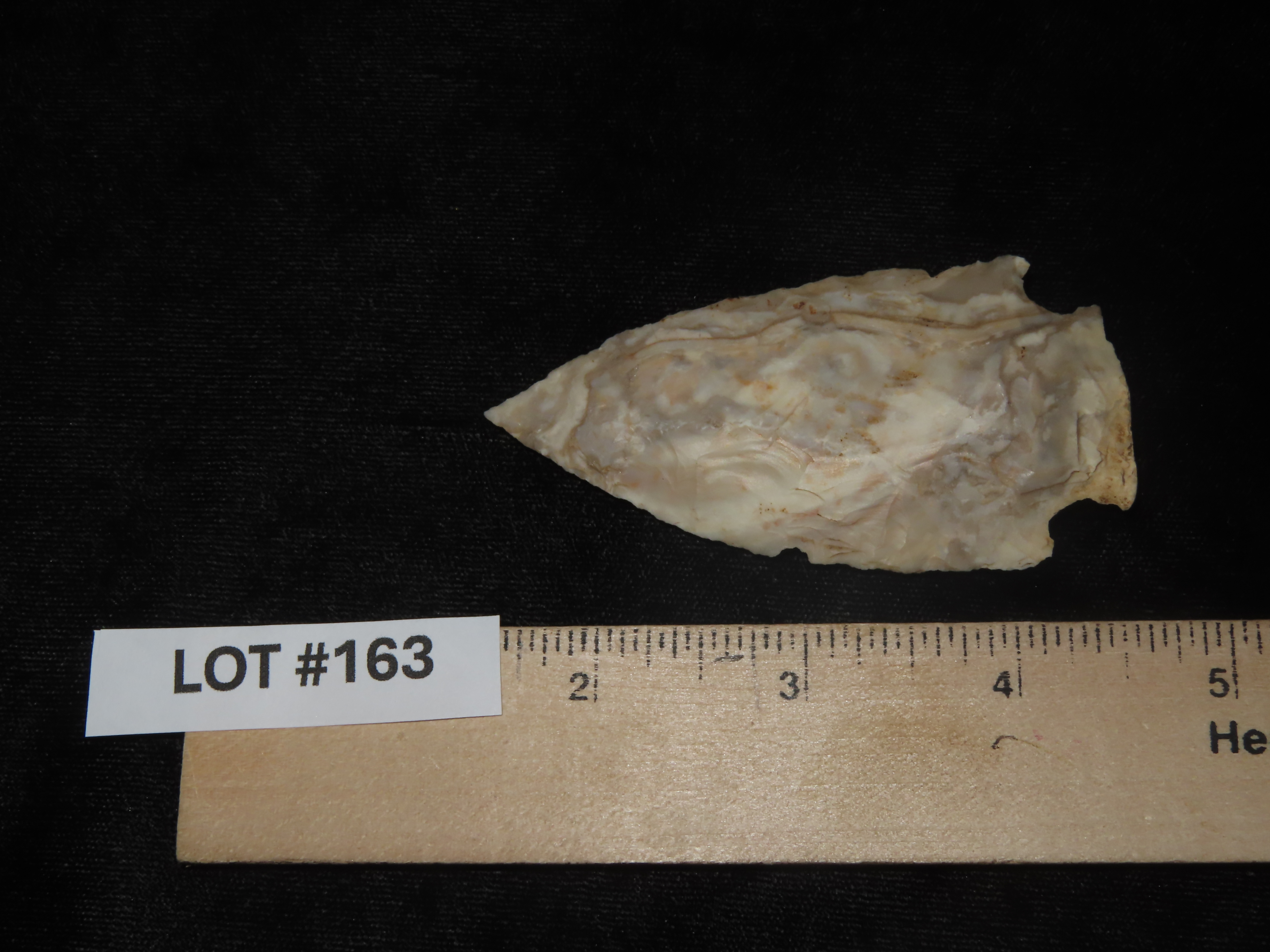 3 1/4″ Etley, Cooper County Missouri, Colorful Mozarkite Chert. Great Example. Ex Floyd Ritter, Indian Arrowhead, Artifact, Spear.