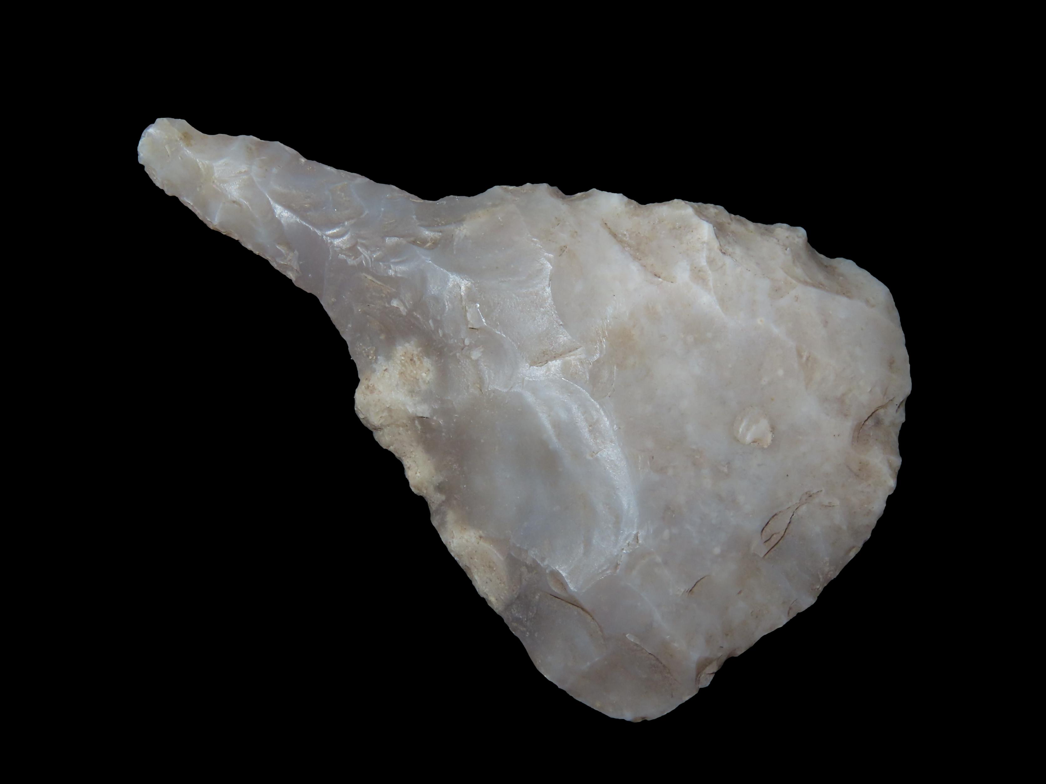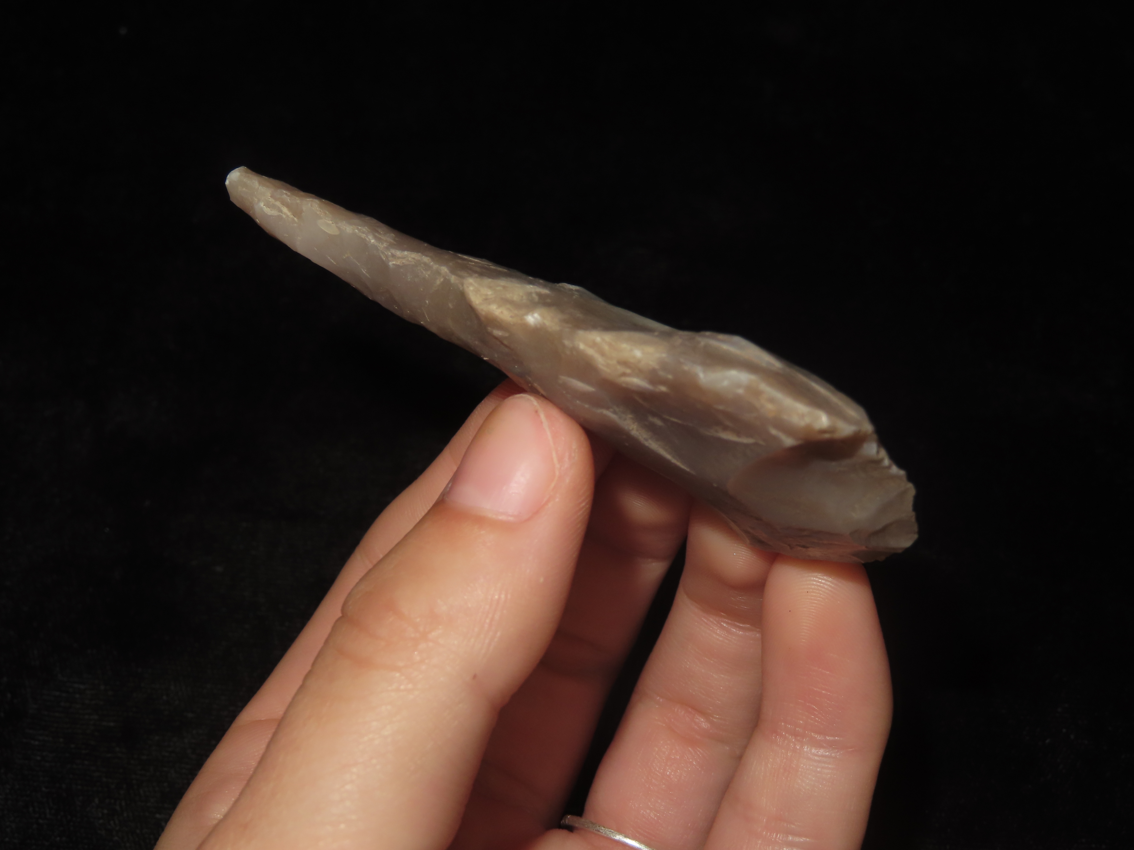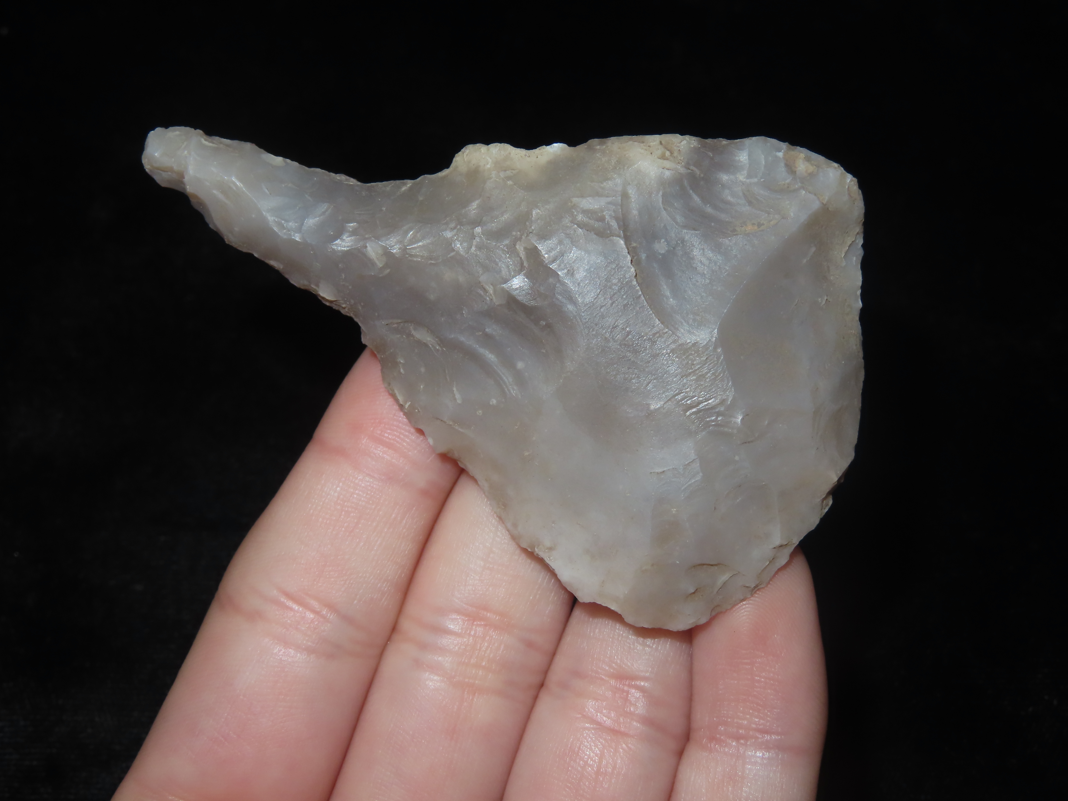 Highly Translucent 3″ Paddle Drill, Uvalde County Texas. Heavily Patinated Example, Well Flaked out of Edwards Plateau Chert.