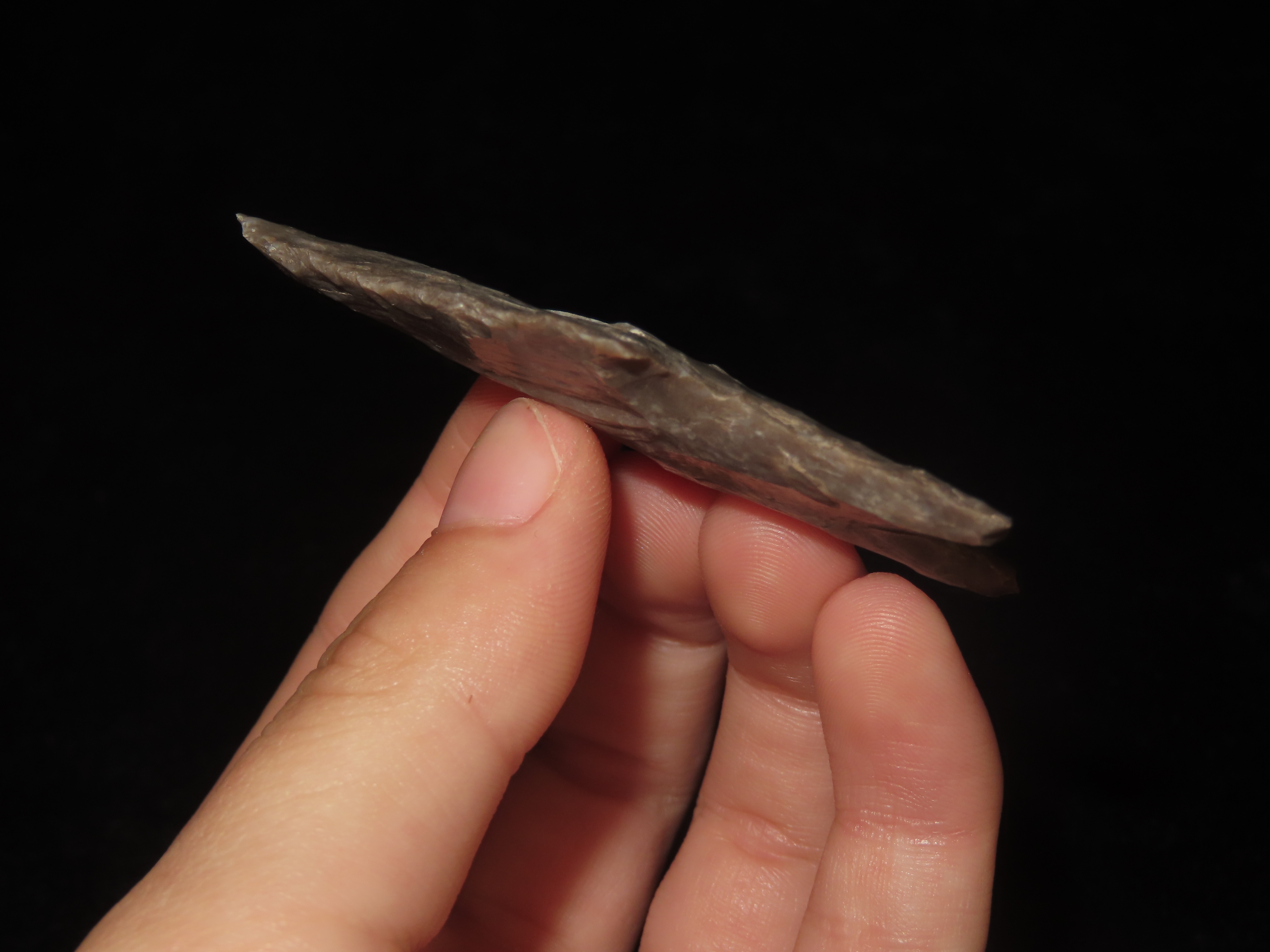 Amazing 2 5/8″ Perd, Pedernales, Uvalde County Texas. Great Well made Example, Very thin & Well Flaked. Heavy Patina!
