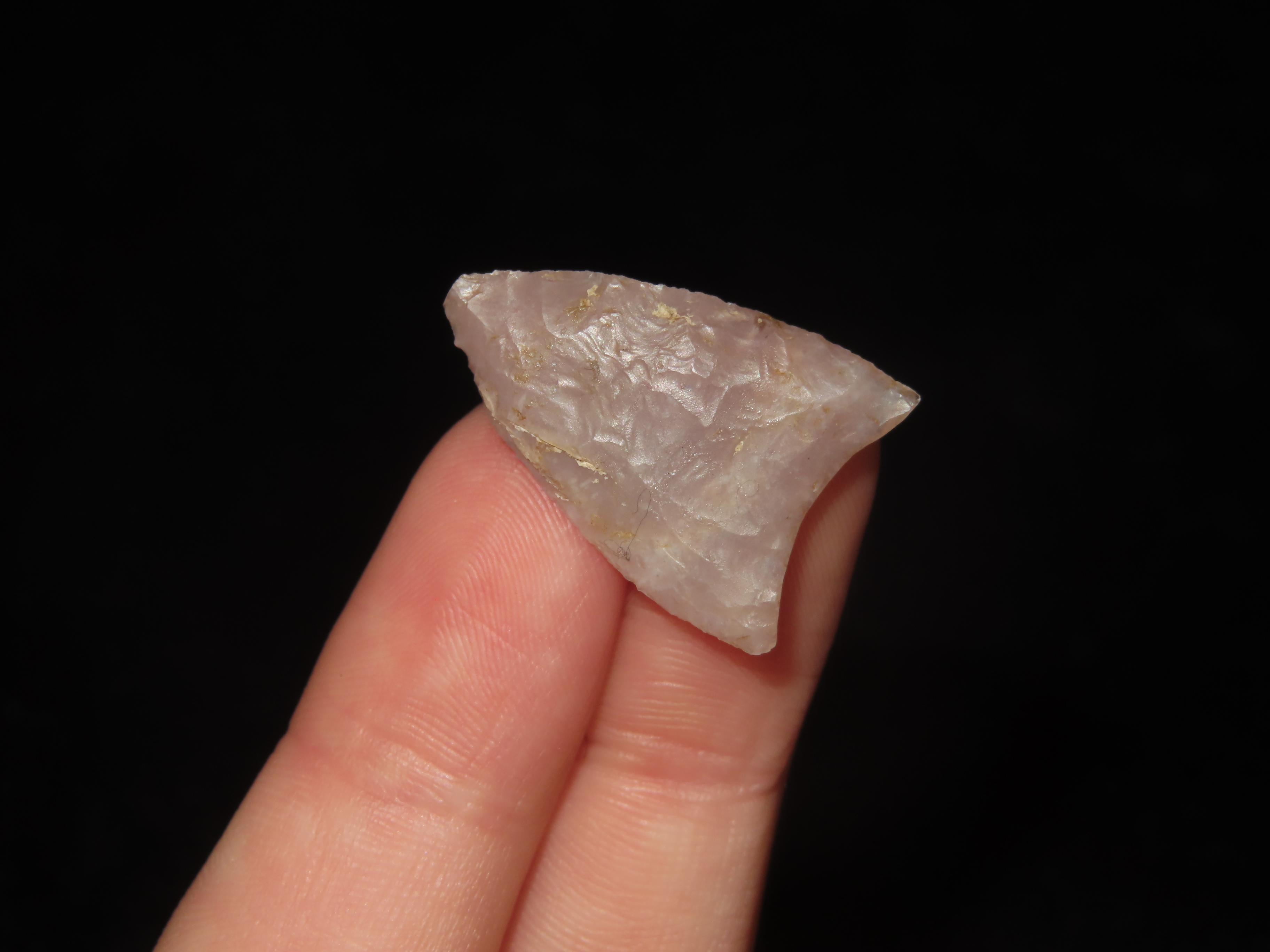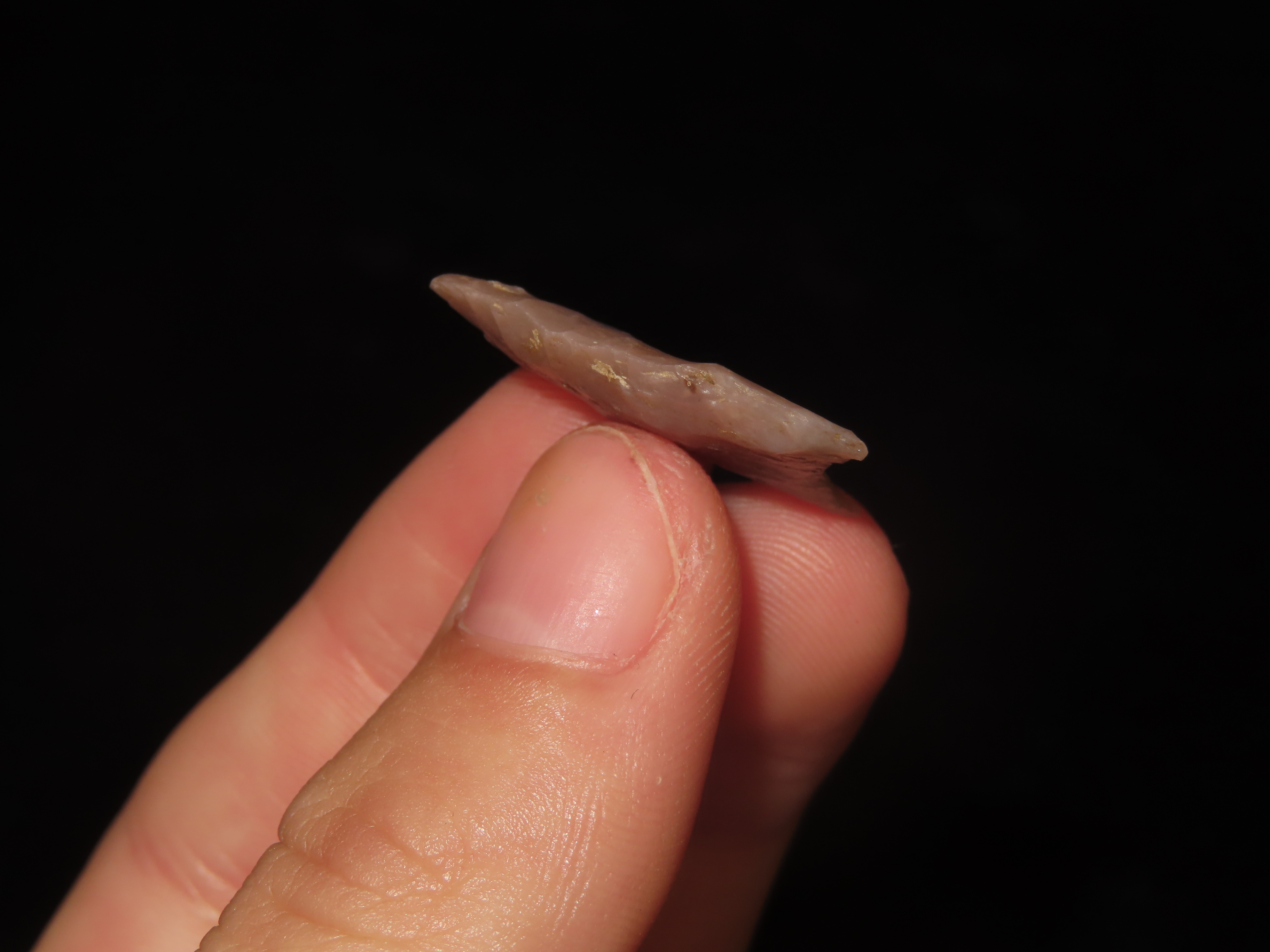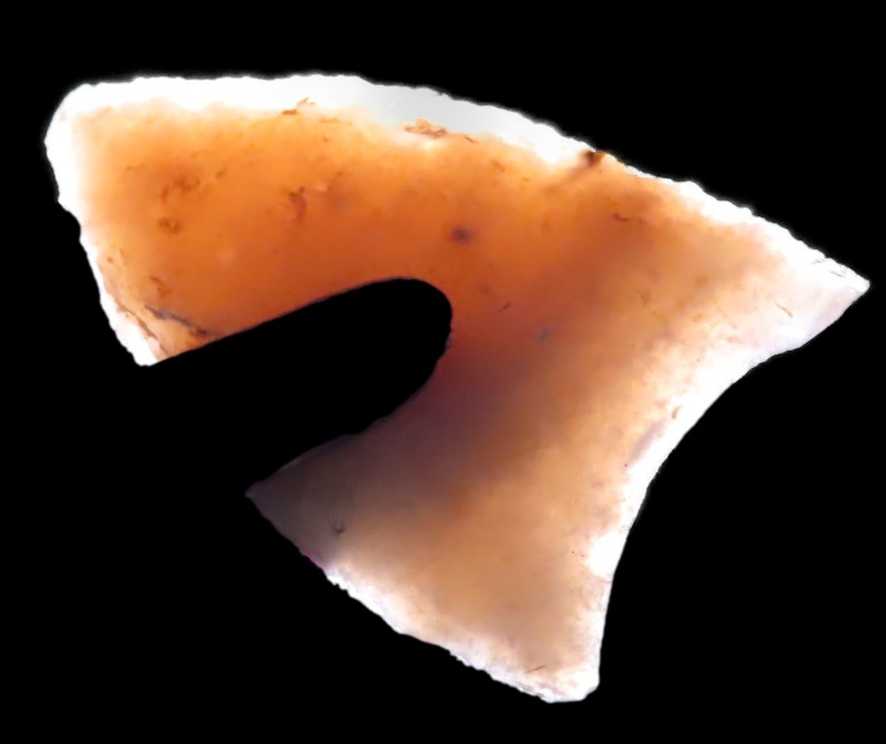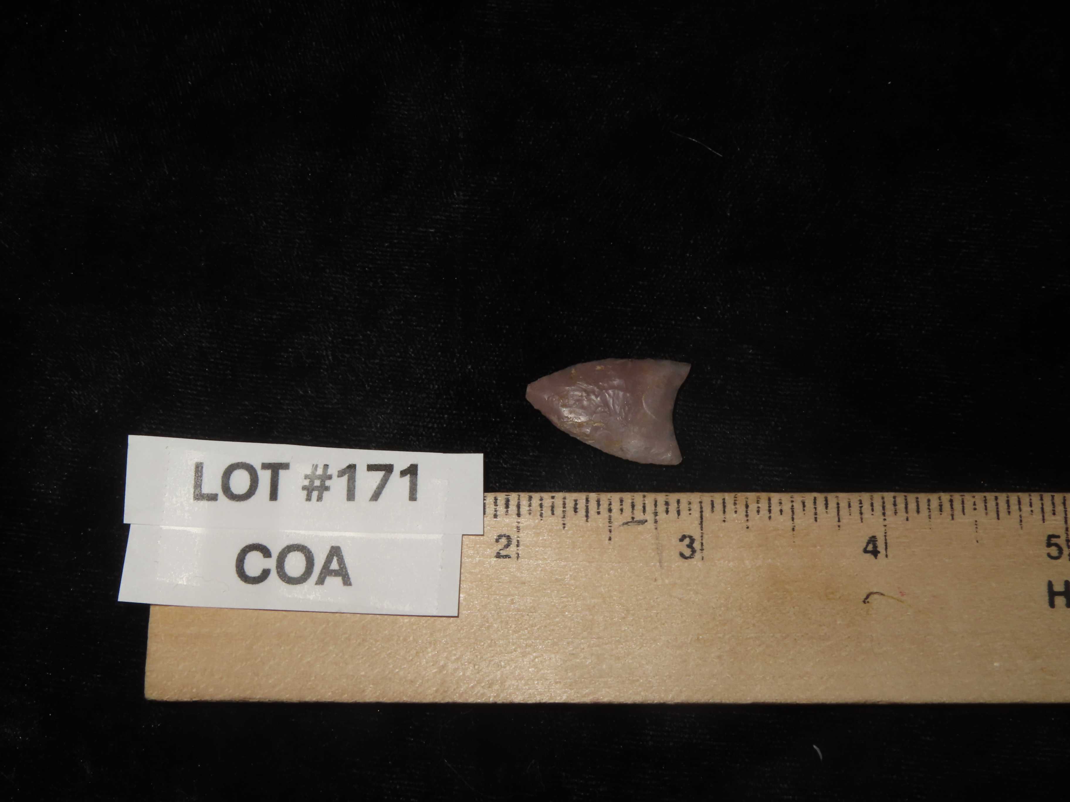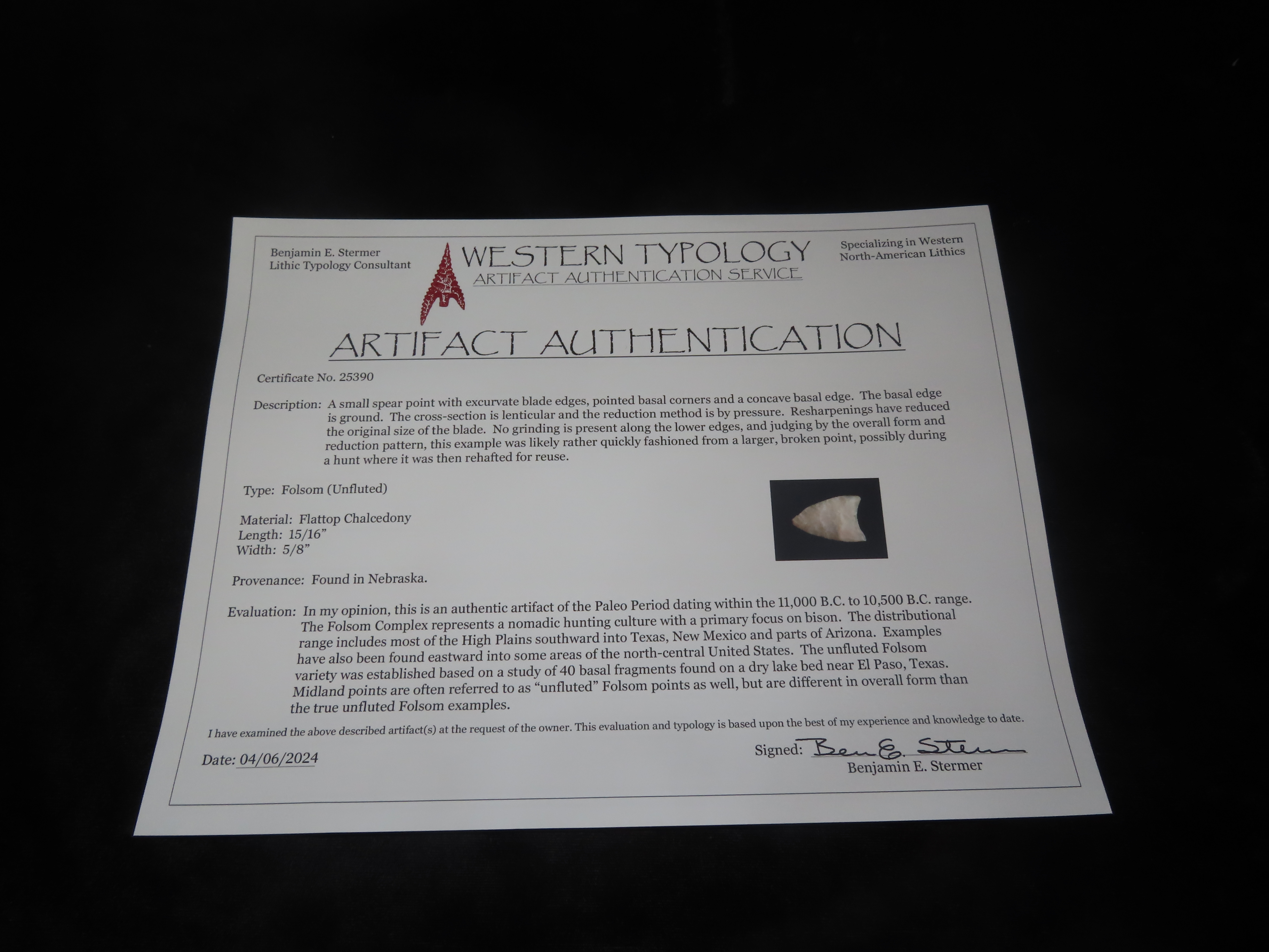 Rare Nebraska Folsom, Stermer COA. Measures 15/16′ Long, Highly Translucent Example with Fine Micro Flaking and Multiple Short Basal Thinning Flutes