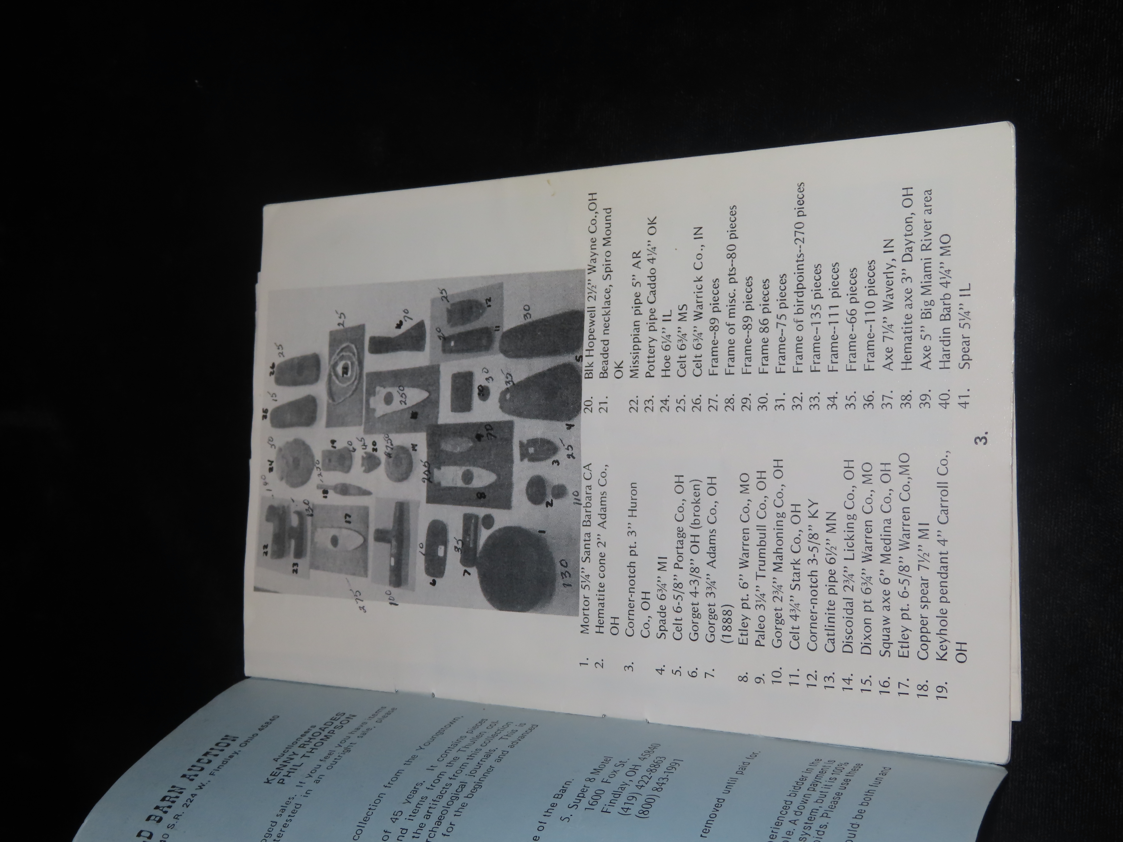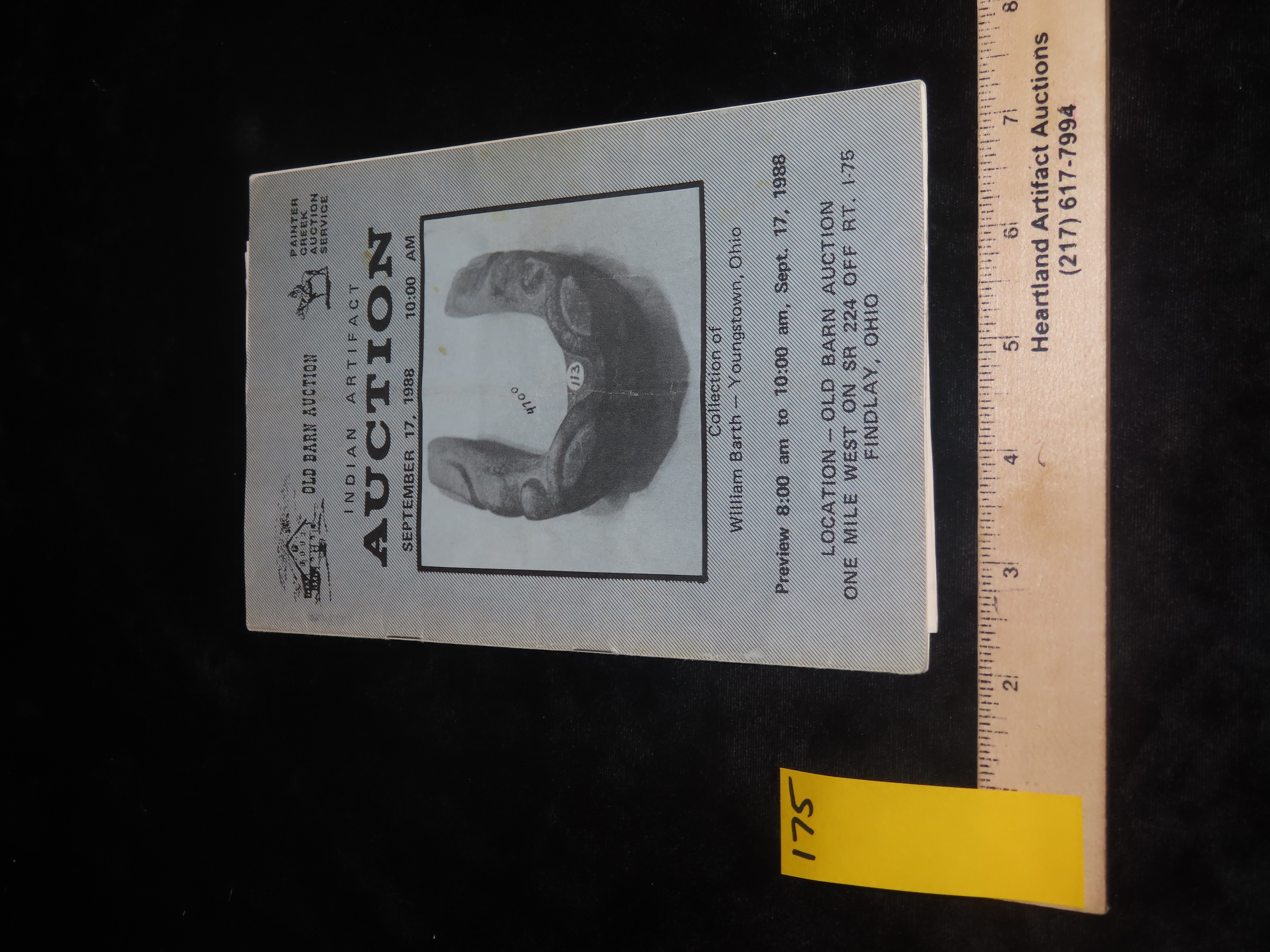 1988 William Barth Indian Artifact Collection Auction Catalog Part 2, Old Barn/Painter Creek Auction Service, Includes Prices Realized List Also; Dovetail, Birdstones, Pendants, Gorgets, Axes, Pestles, Etc… Tons of Great Old Time Relics