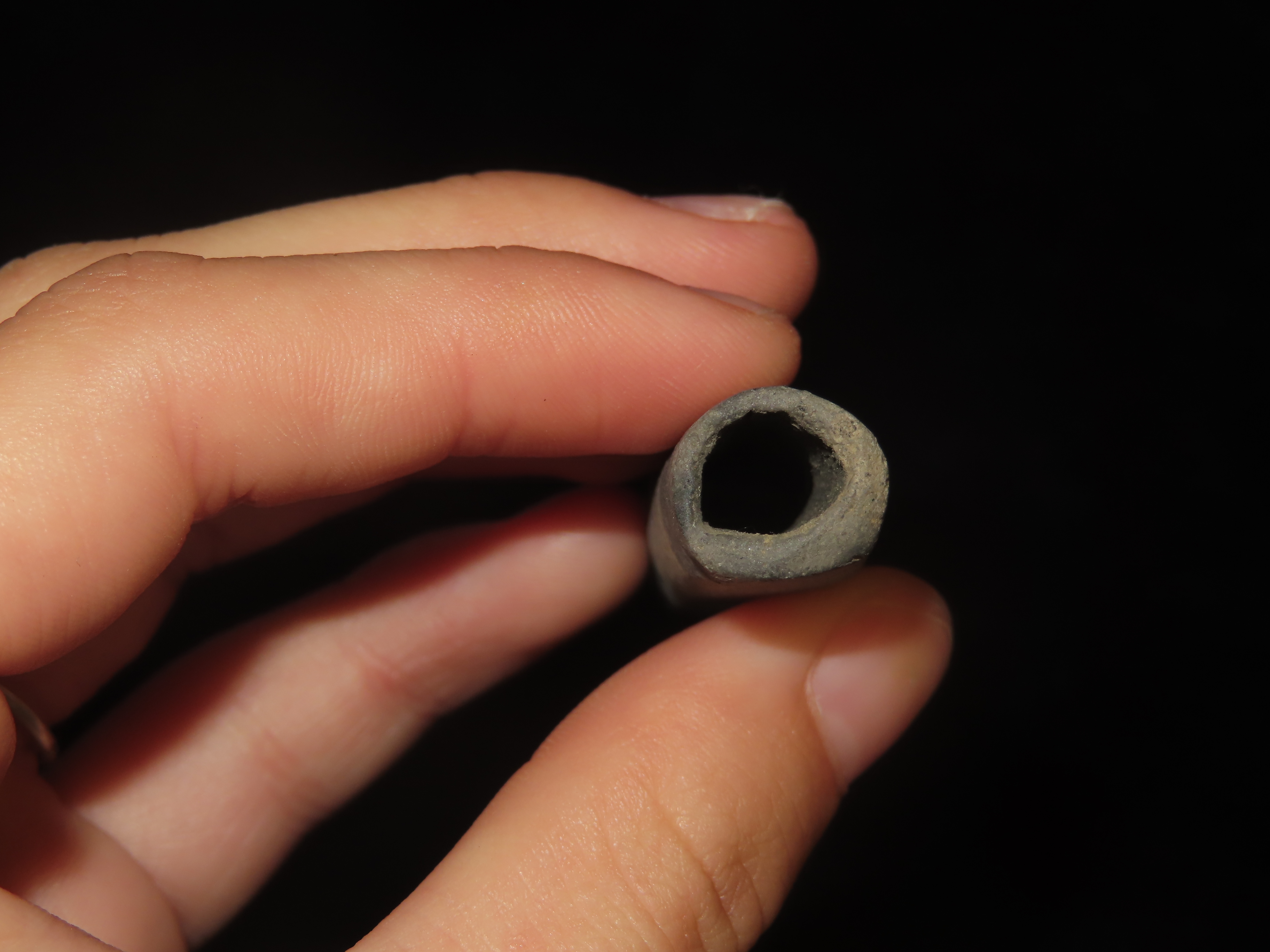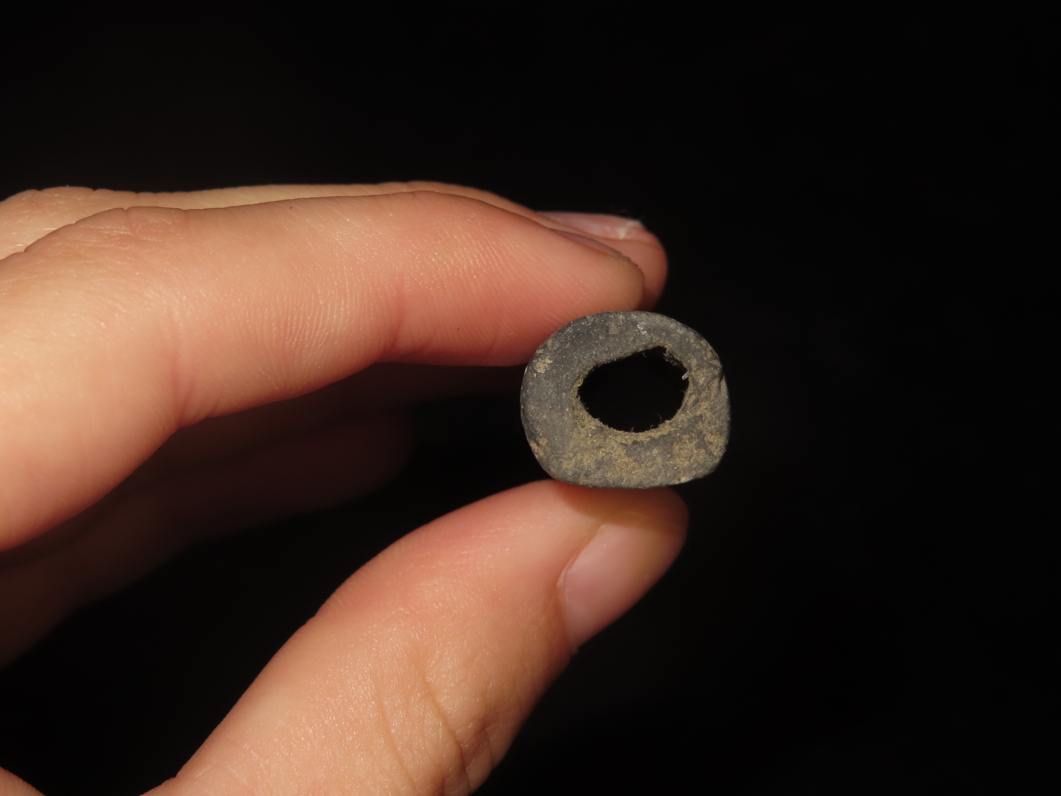 2 3/8″ Clay / Pottery Bead, Cass County Texas. Nice Well Made Example, Very Well Shaped and Nicely Patinated.