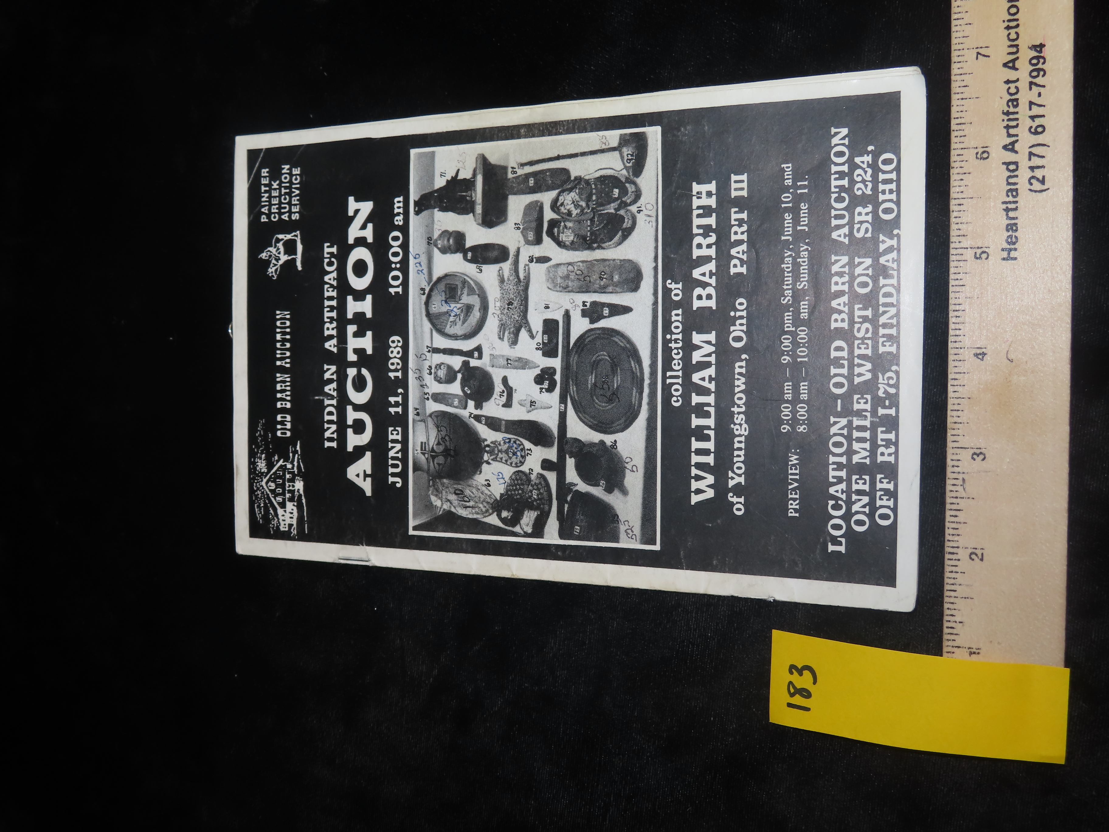 1988 William Barth Indian Artifact Collection Auction Catalog Part 3, Old Barn/Painter Creek Auction Service, Includes Prices Realized List Also; Historic Items, Beadwork, Dovetail, Birdstones, Pendants, Gorgets, Axes, Etc… Tons of Great Old Time Relics