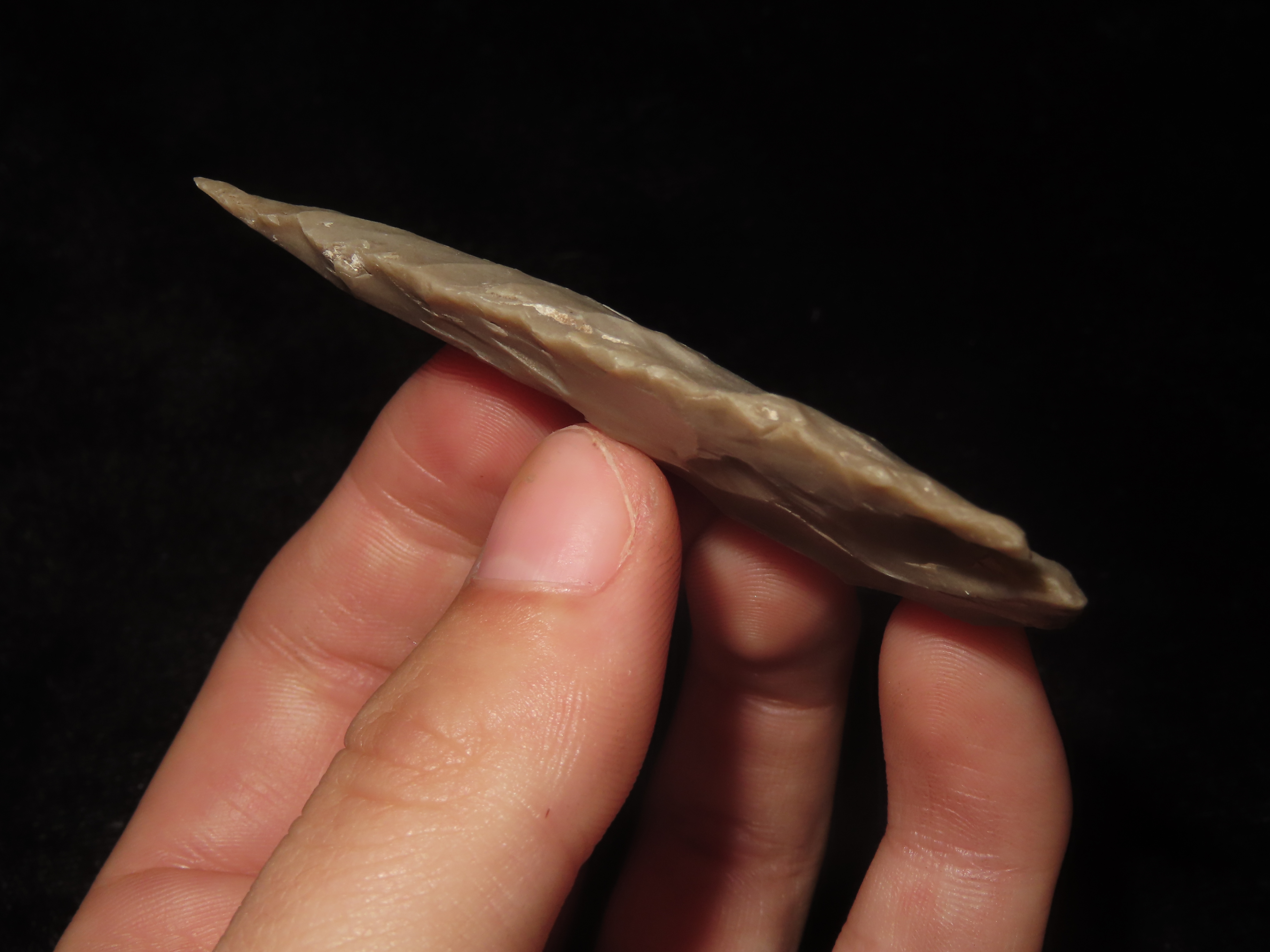 2 5/8″ Needle Tip Castroville, Bandera County Texas. Very Thin & Well Flaked Example, Indian Arrowhead, Artifact, Spear