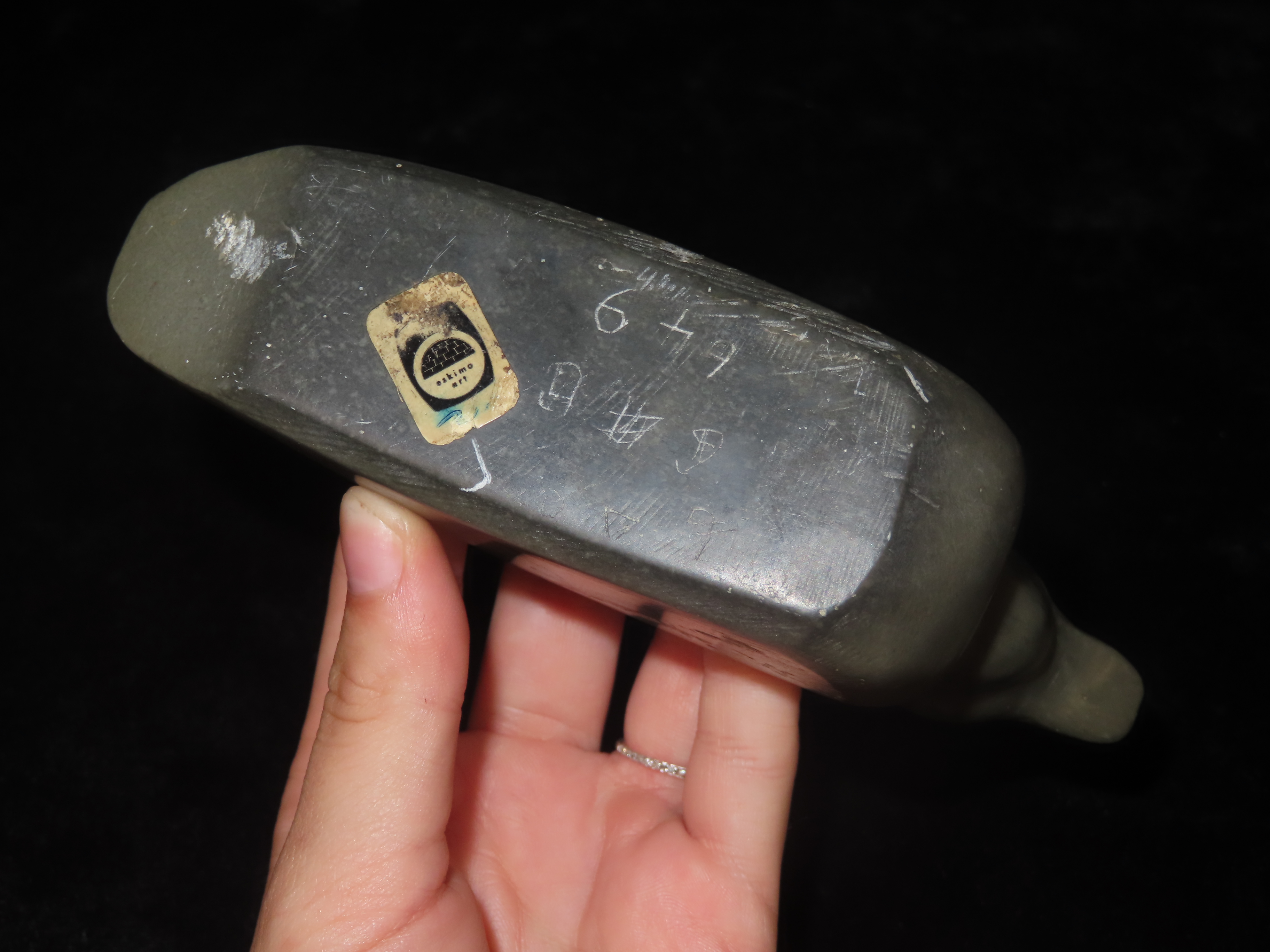 6″ Eskimo Inuit Carved Stone Bird, Nicely Designed Example With great Polish, Signed on Bottom