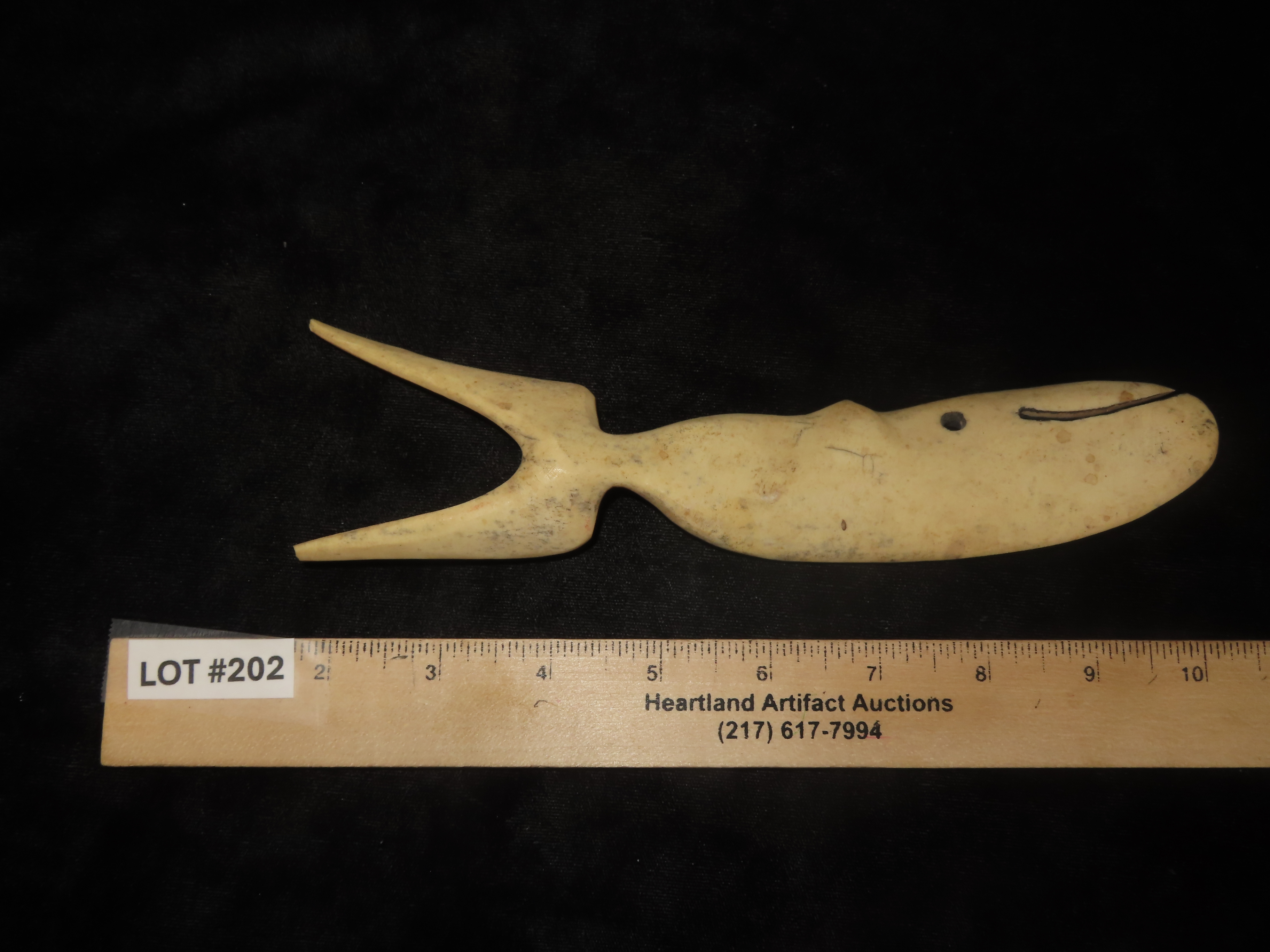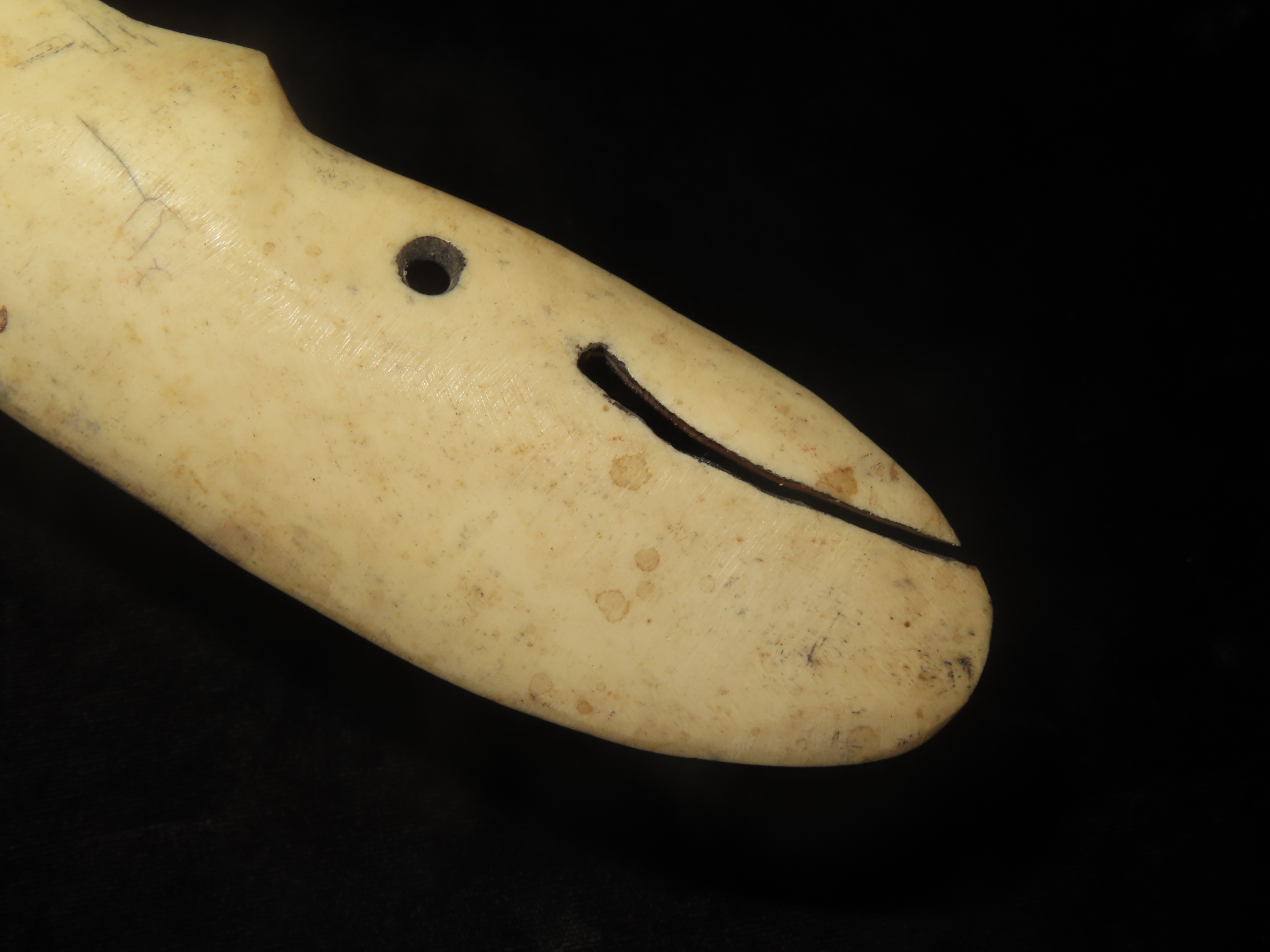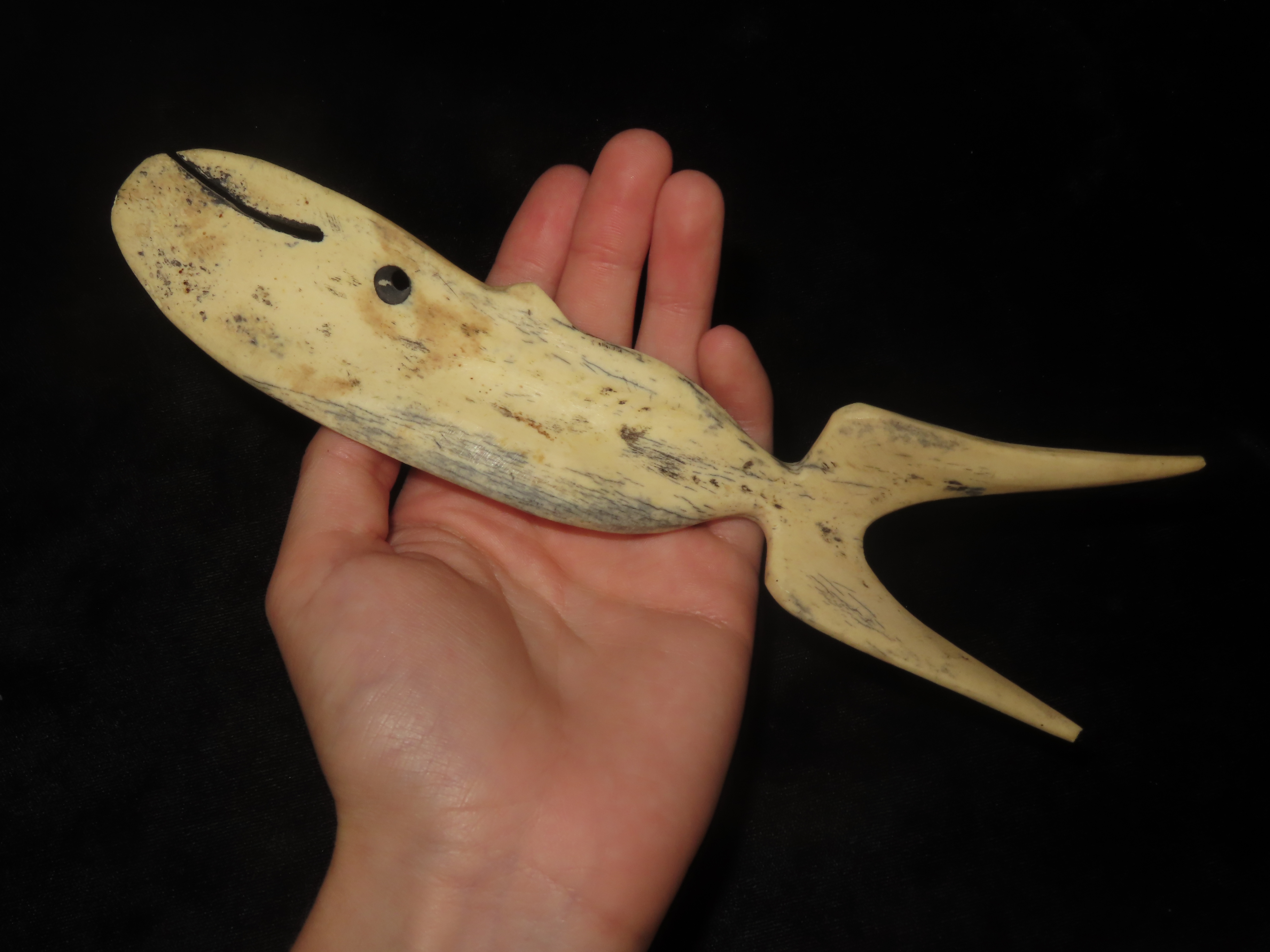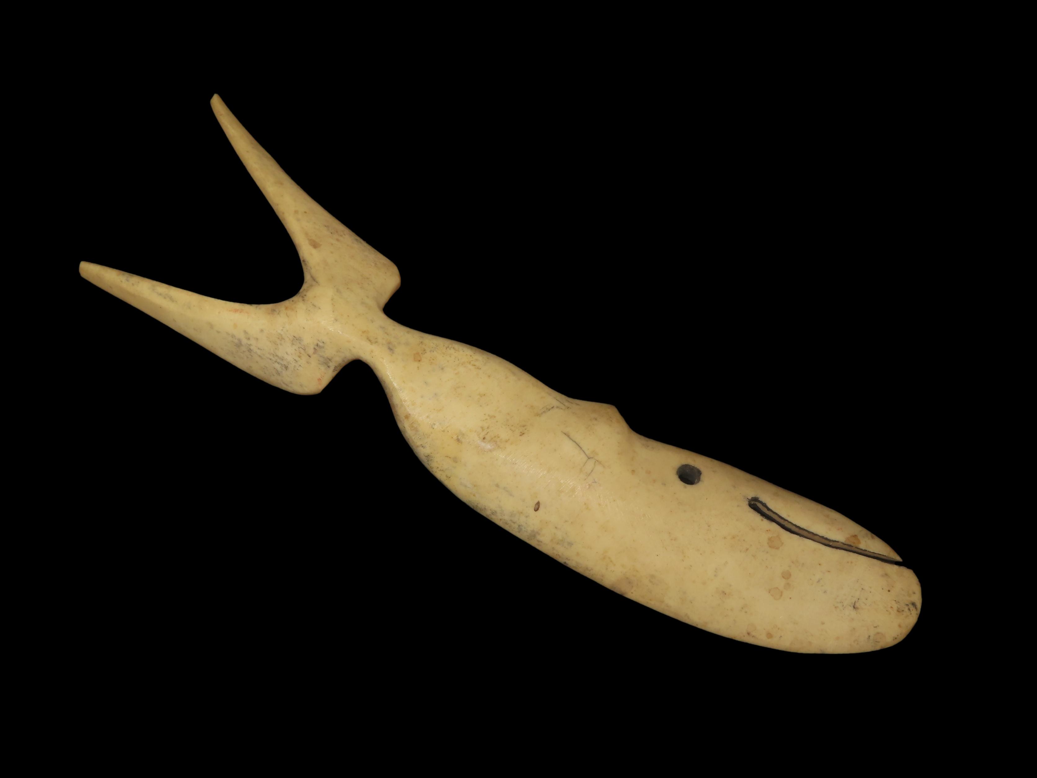 8 5/8″ Northwest Coast Whale Effigy Carving, Bone. Great Old Example