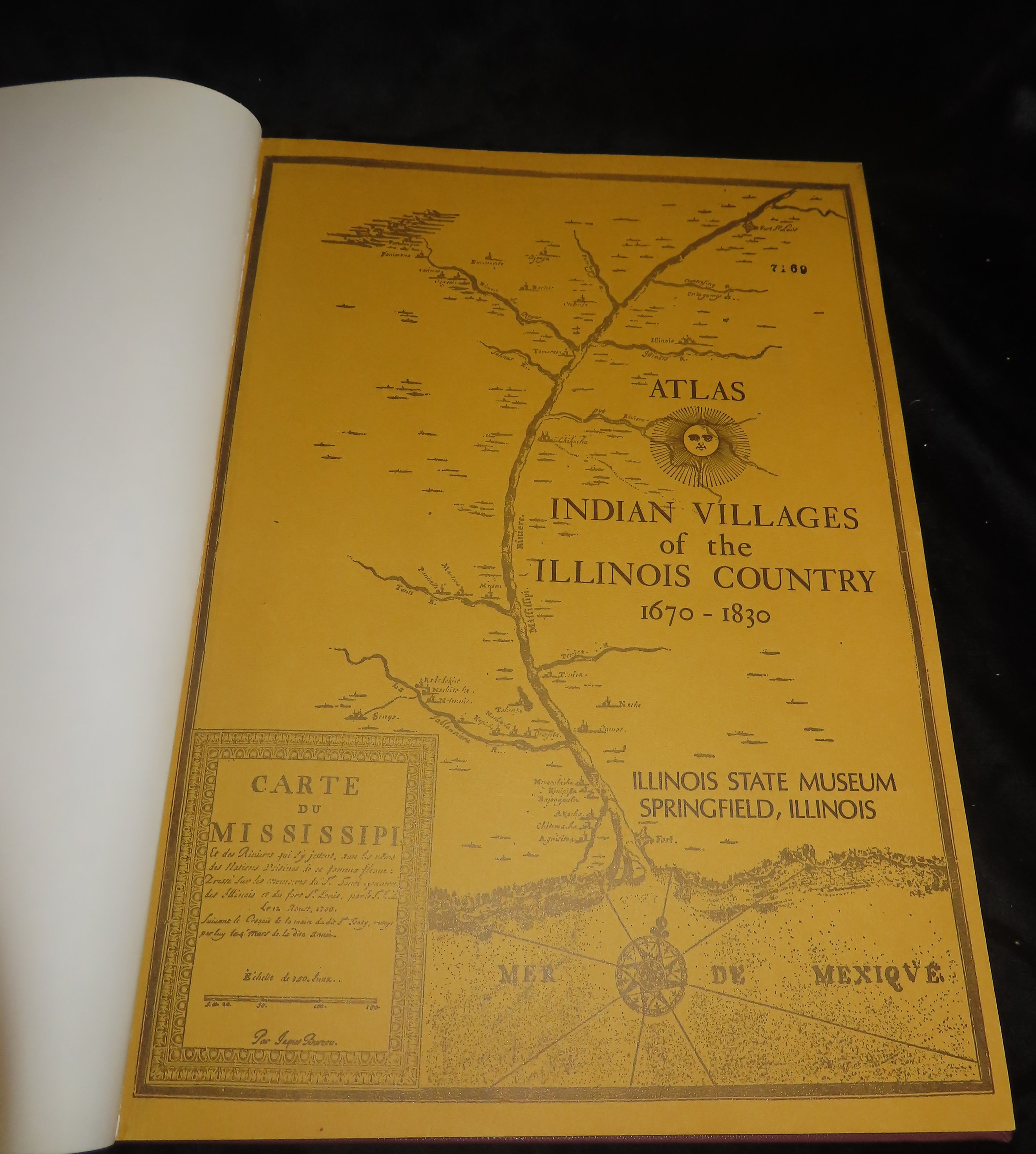 INDIAN VILLAGES OF THE ILLINOIS COUNTRY, LARGE HARDBACK BOOK WITH VERY OLD MAPS (1670-1830’S) OUTLINING MANY NATIVE AMERICAN SITES ACROSS ILLINOIS, BOOK DATED 1942, IN EXCELLENT ORIGINAL CONDITION, OVER 160 PAGES FULL