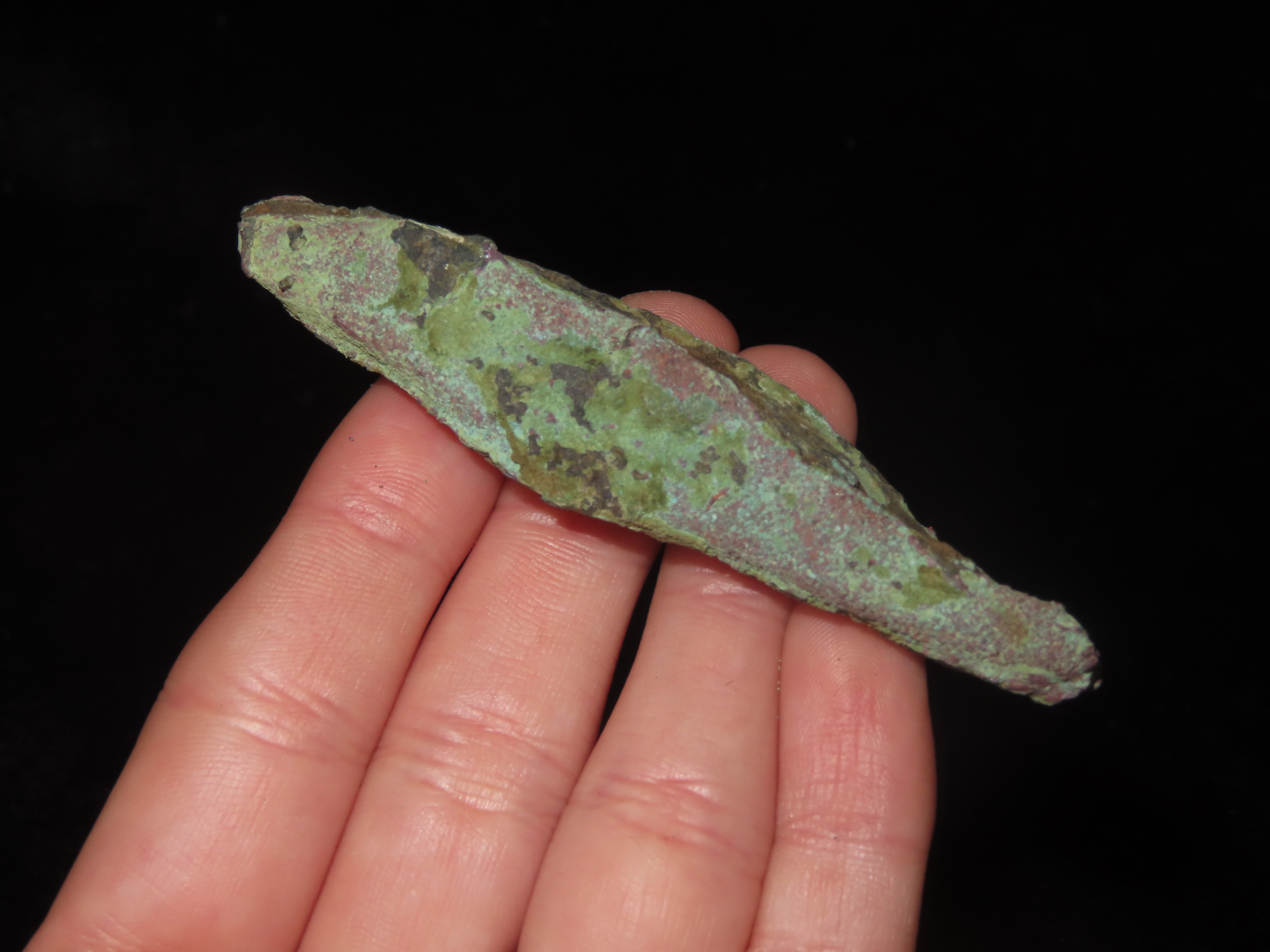 3 1/8″ Copper Awl, Vilas County Wisconsin. Nice Large Example with Great Original Patina. Old Copper Culture, 4000-6000 Year old Copper Relic!