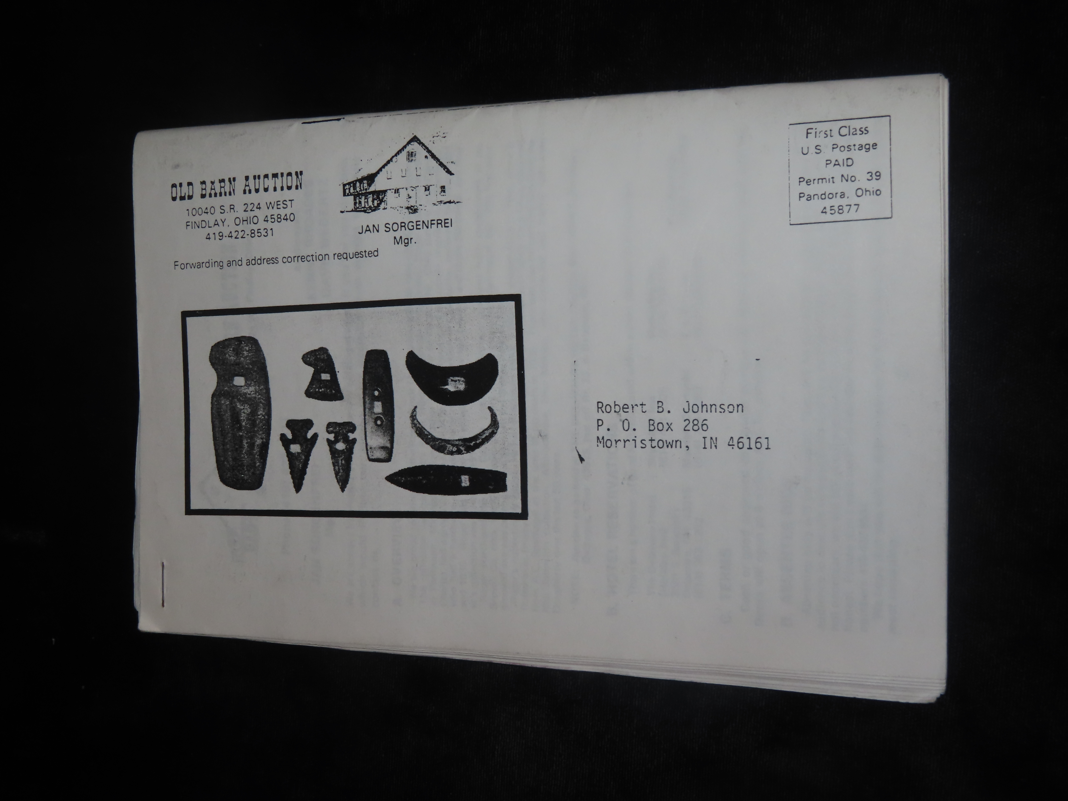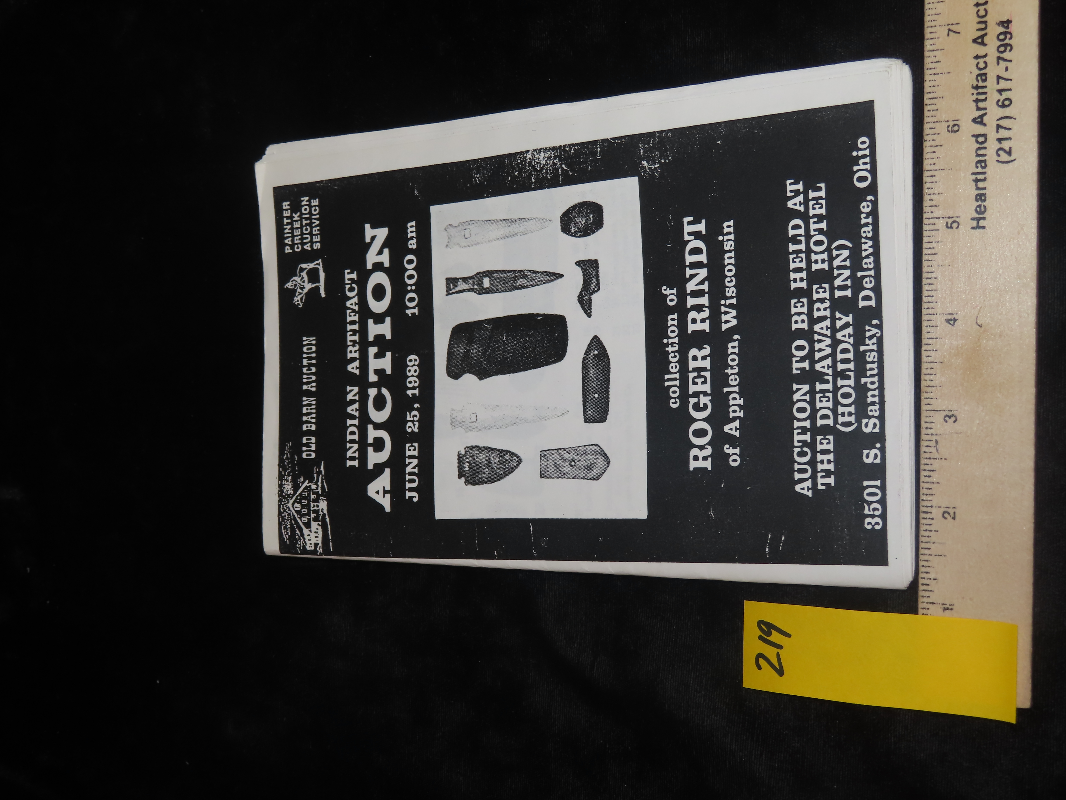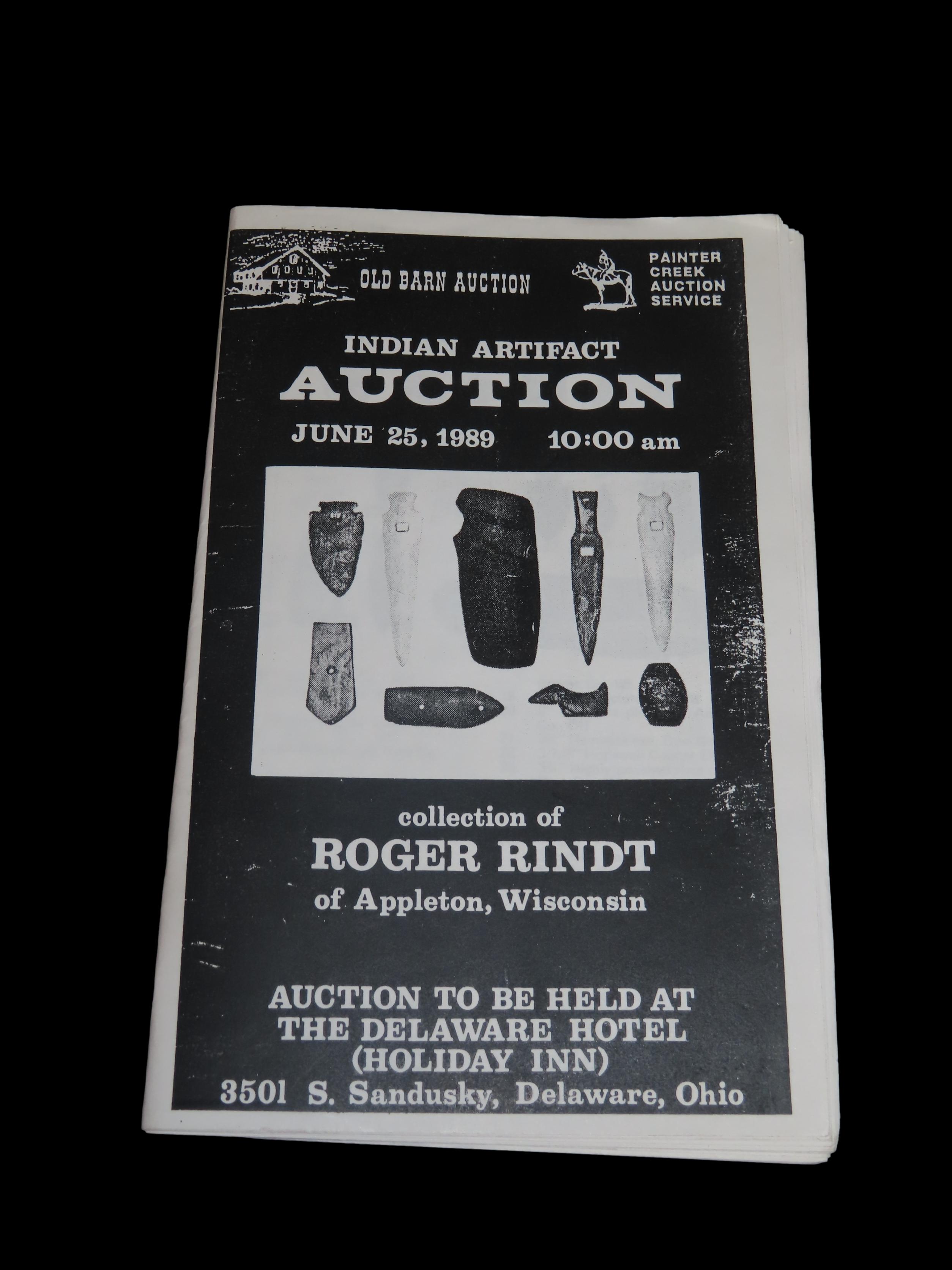 1989 Roger Rindt (Wisconsin) Indian Artifact Collection Auction Catalog, Old Barn/Painter Creek Auction Service, Arrowheads, Pottery, Copper, Pipes, Etc