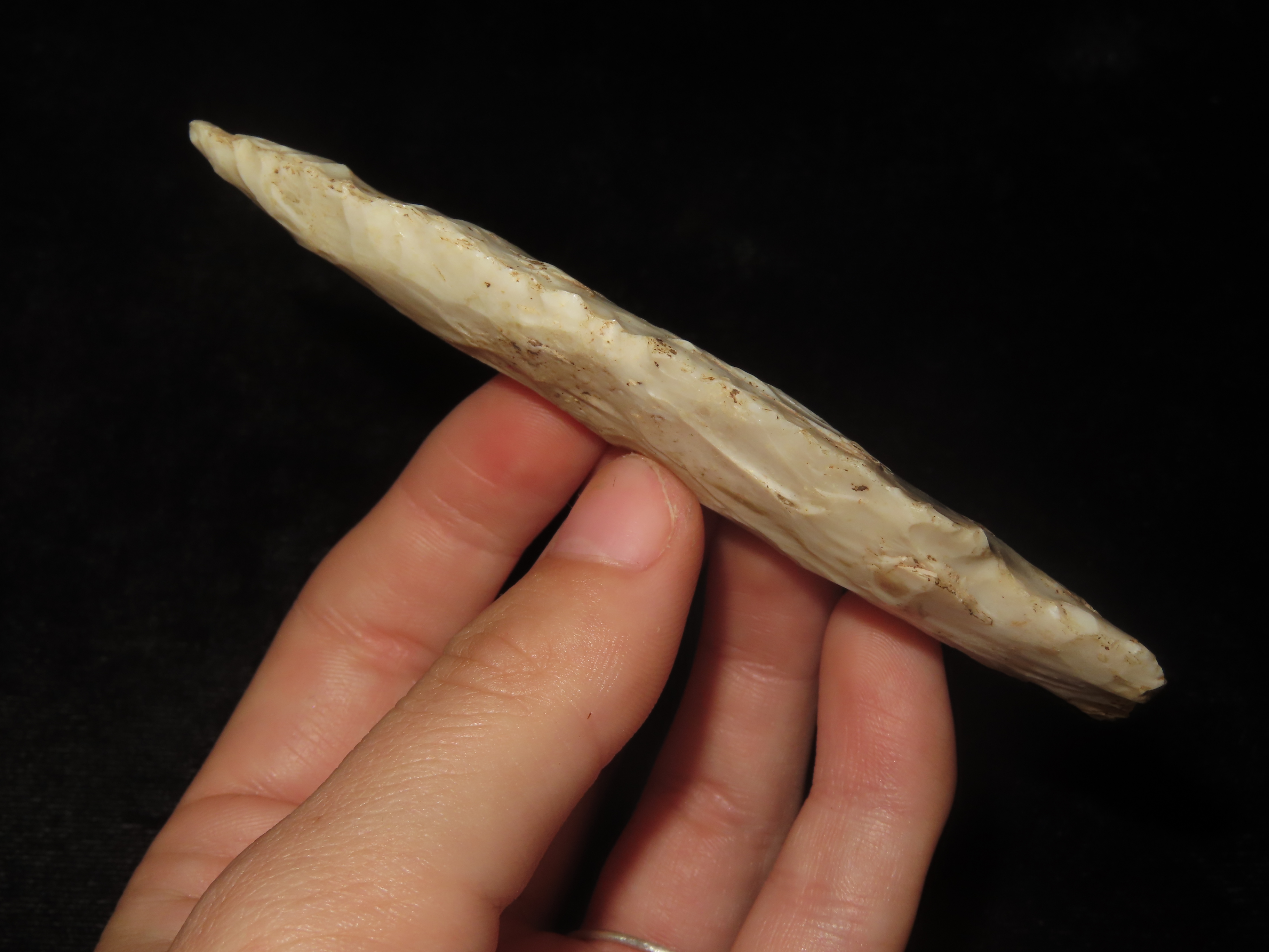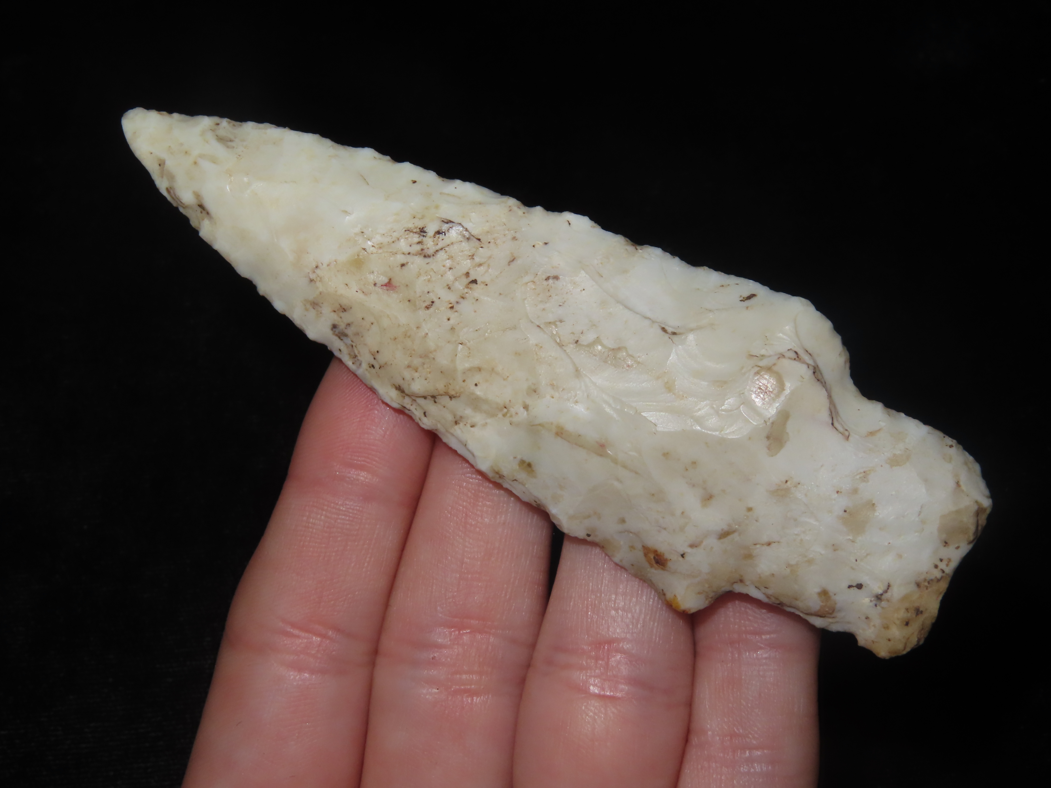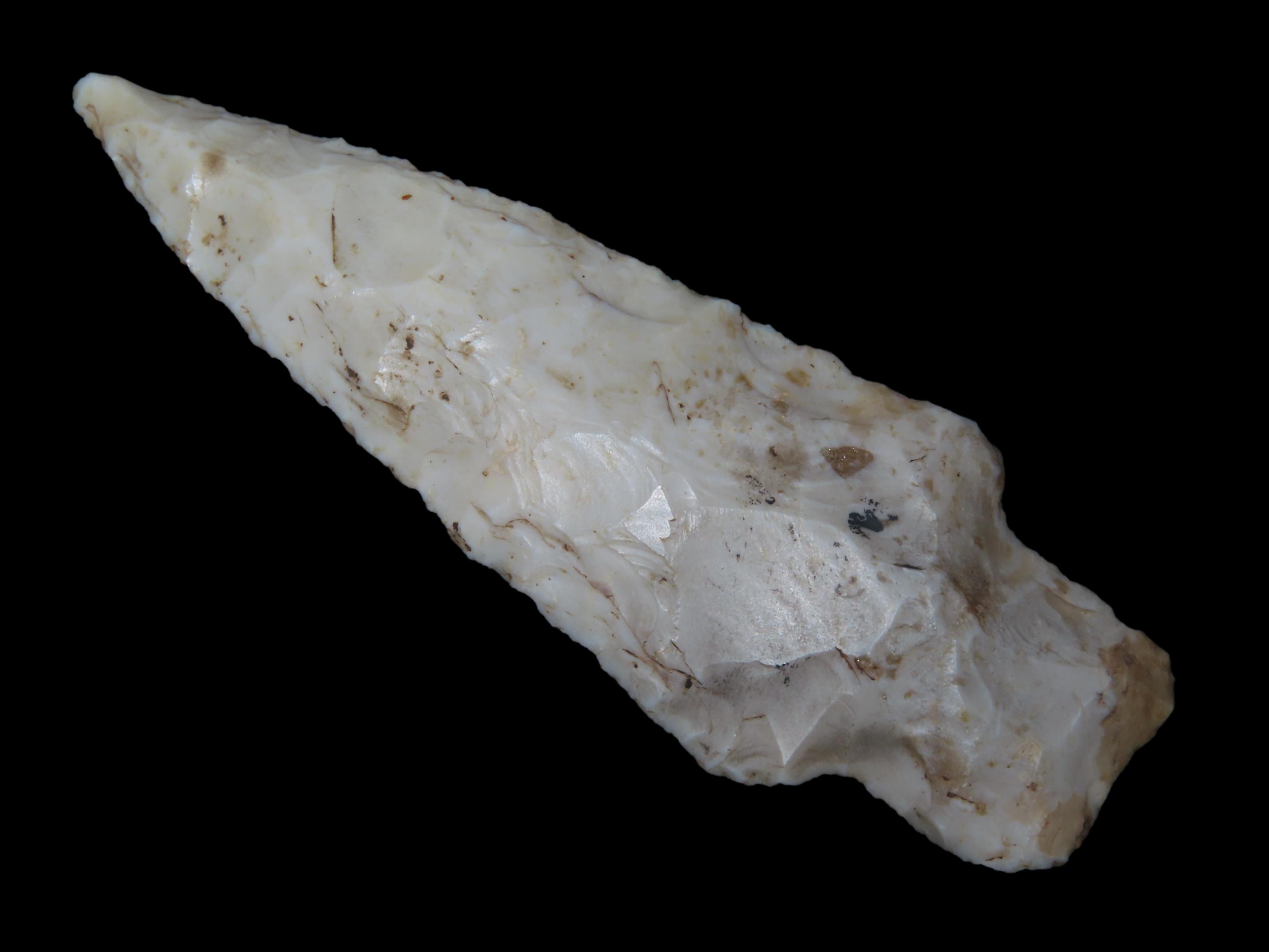 3 7/8″ Stone Square Stem, Adams County Illinois, Nice Large Example, Well Flaked with nice Deposits