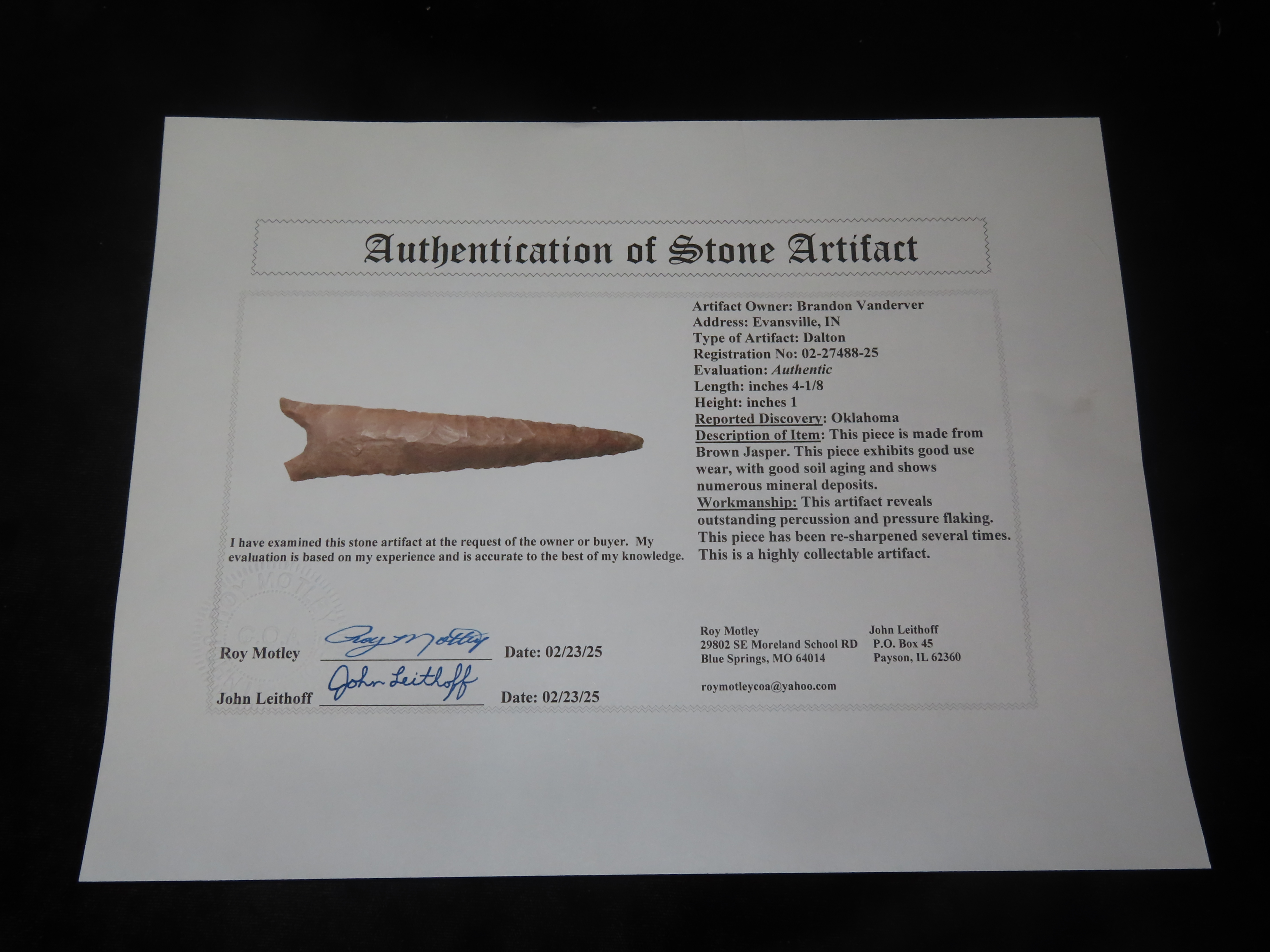 4 1/8″ Dalton, Oklahoma, Motley COA. Nice Large Classic Example, Great River Polish Patina