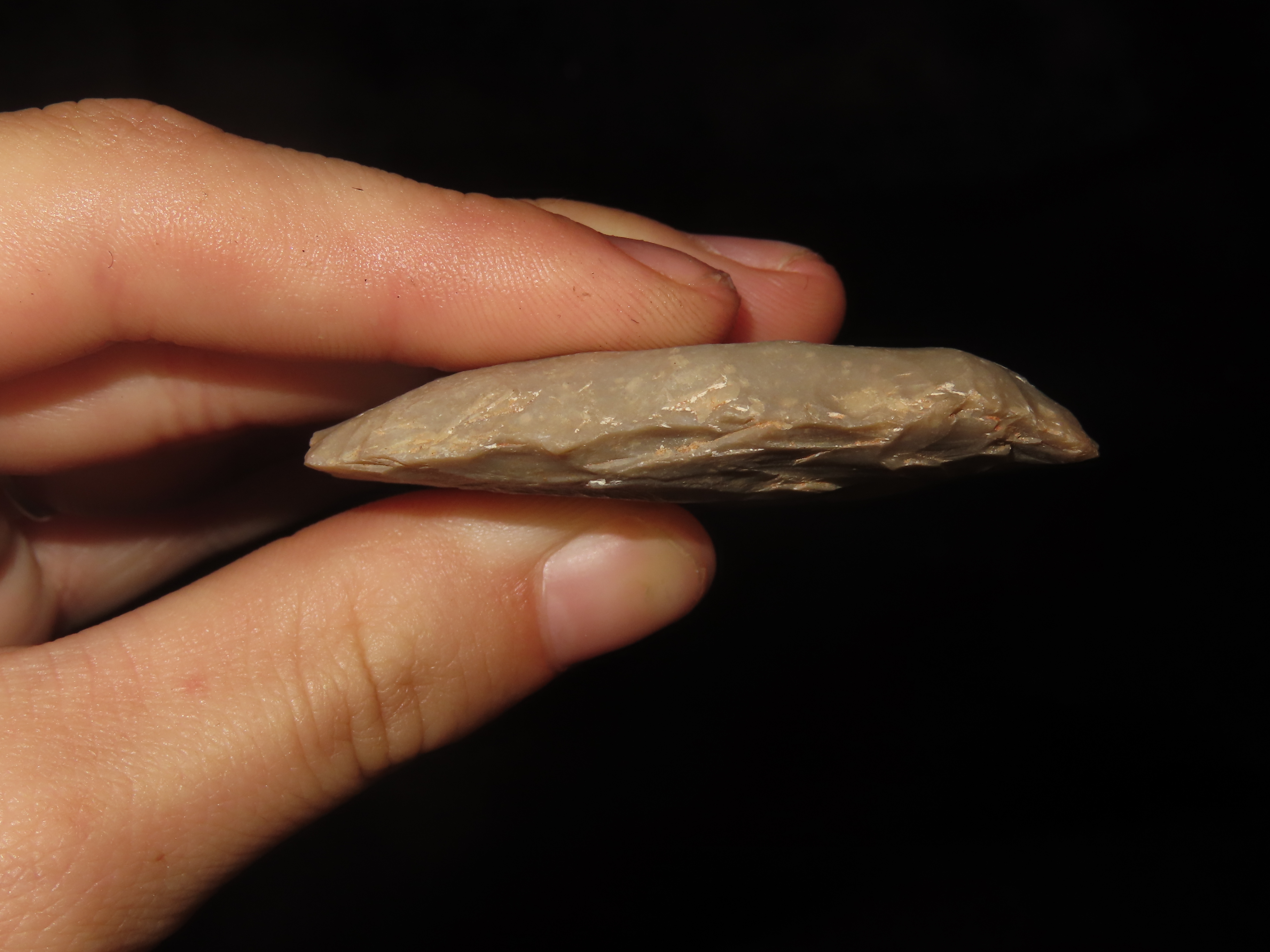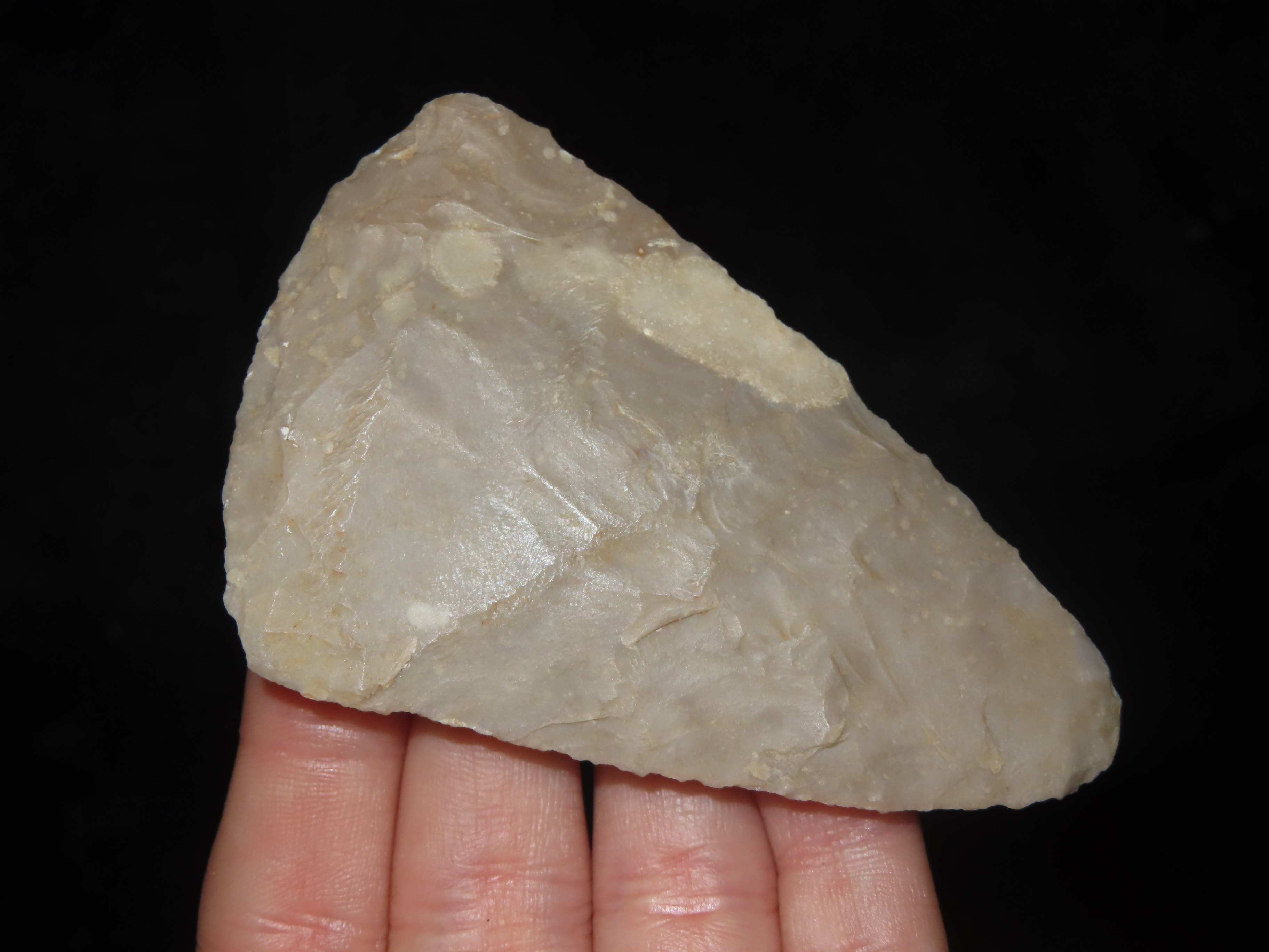 3 1/8″ Clear Fork Gouge / Flint Celt / Scraper, Uvalde County Texas, Great Flaking and Nice Form, Thin and Perfect, one of the Nicer Examples I’ve seen
