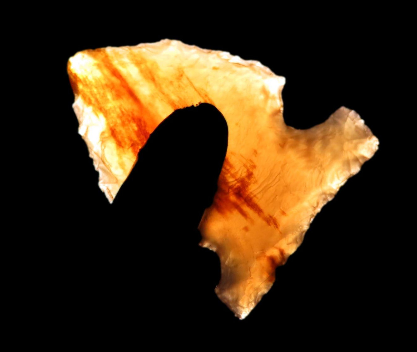 Knife River Flint Cut Bank Bird Point, Morton County North Dakota, Highly Translucent, well made example with Great patina