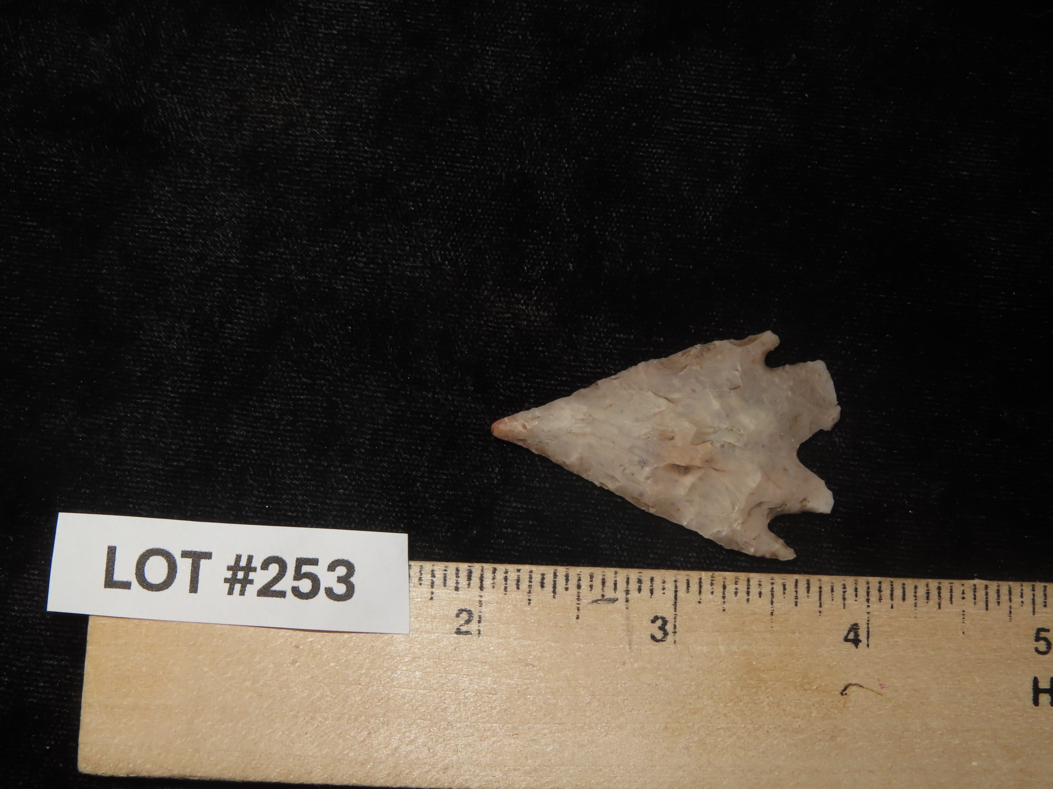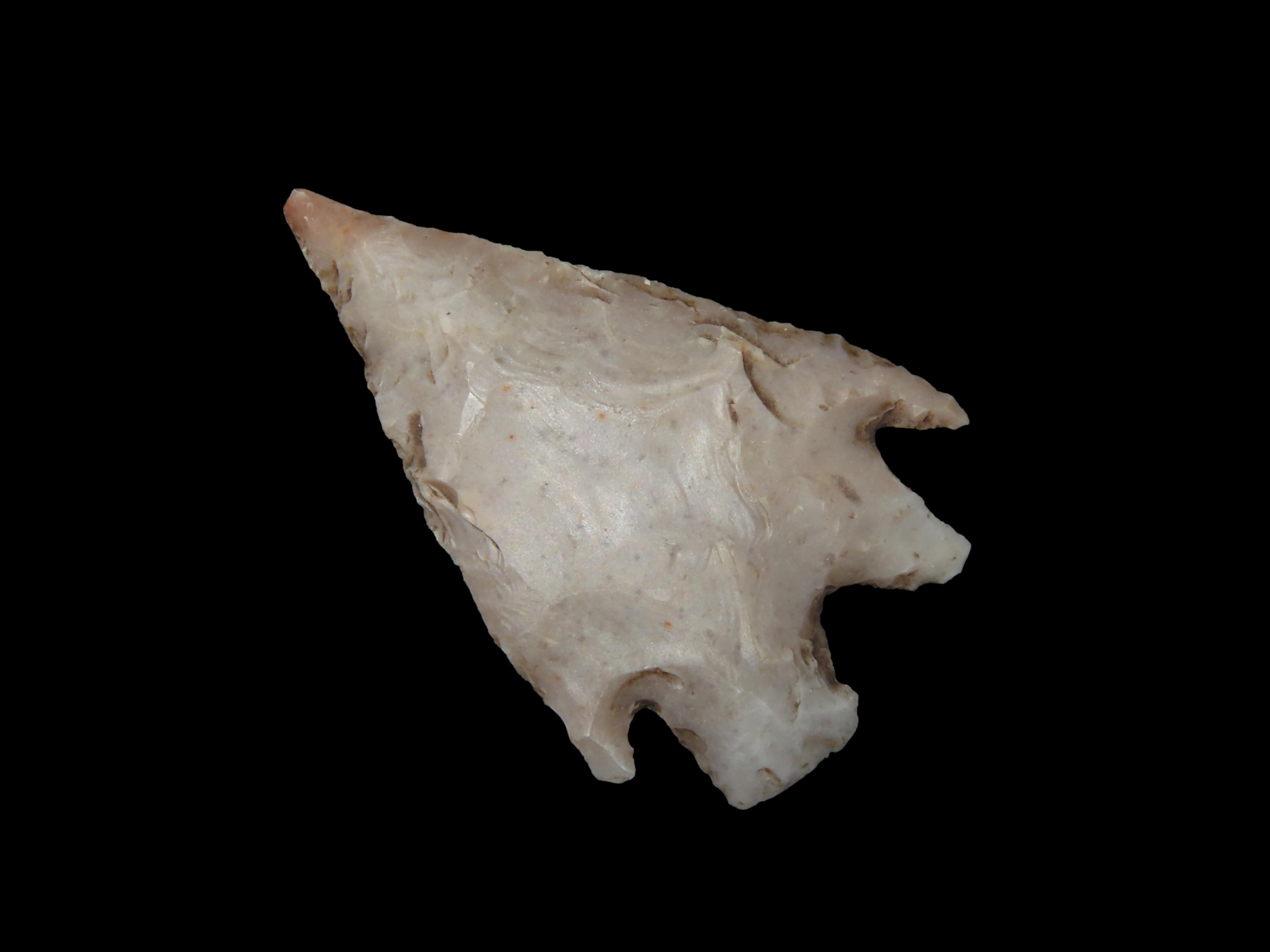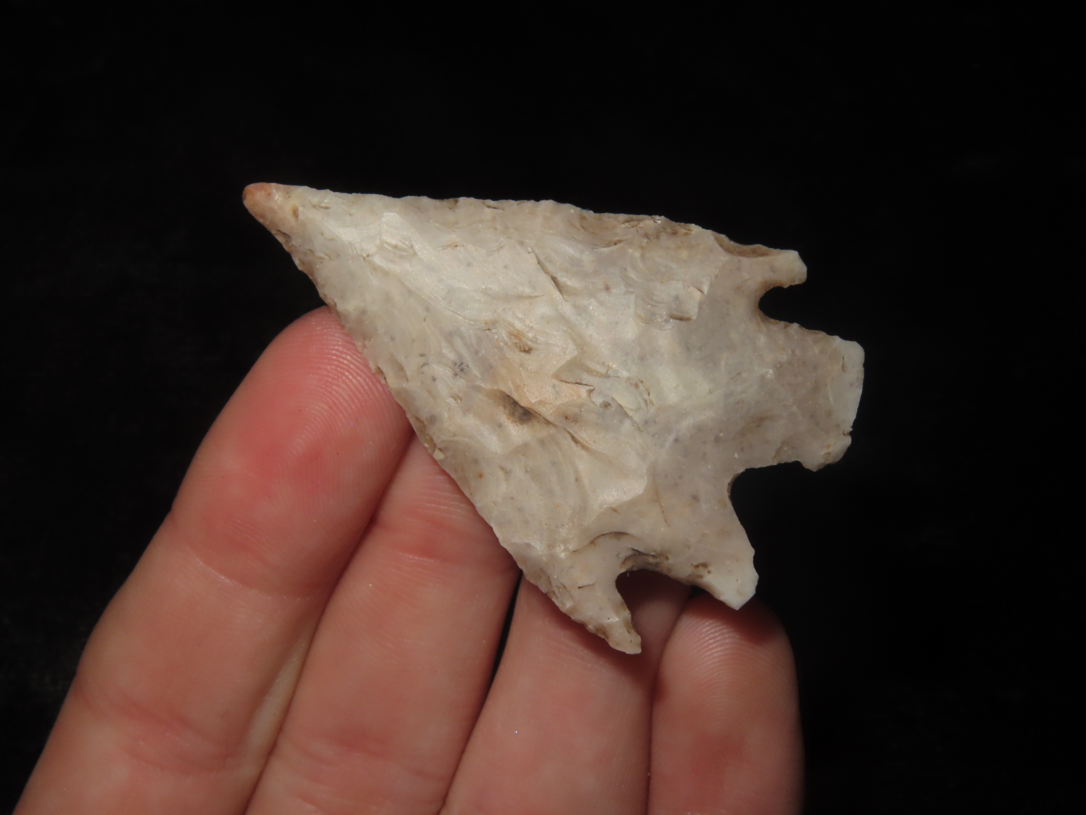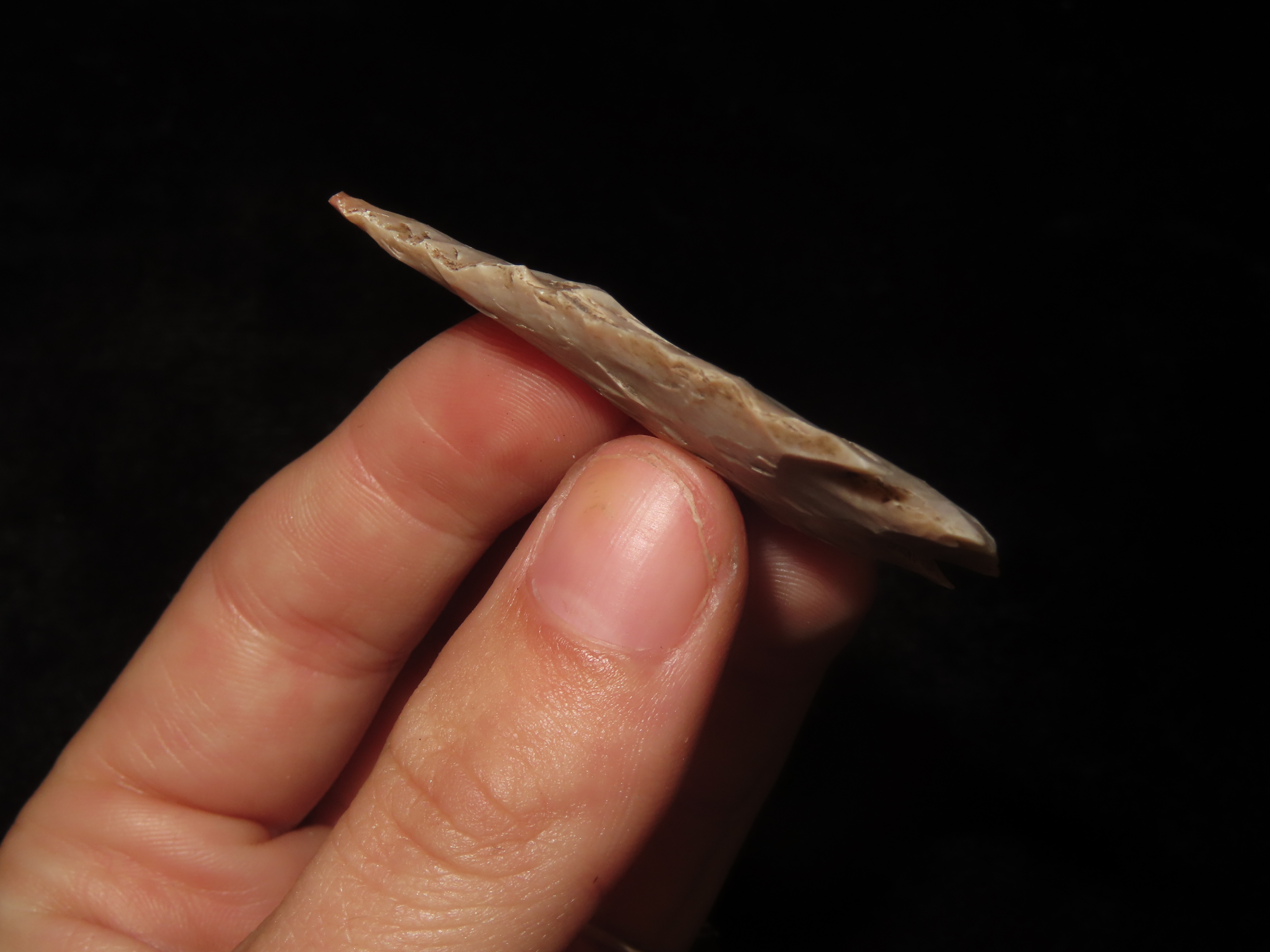 Wafer Thin 1 7/8″ Montell, Kerr County Texas, Delicate Barbed Ears & Needle Tip, Very thin & Highly Translucent Example.
