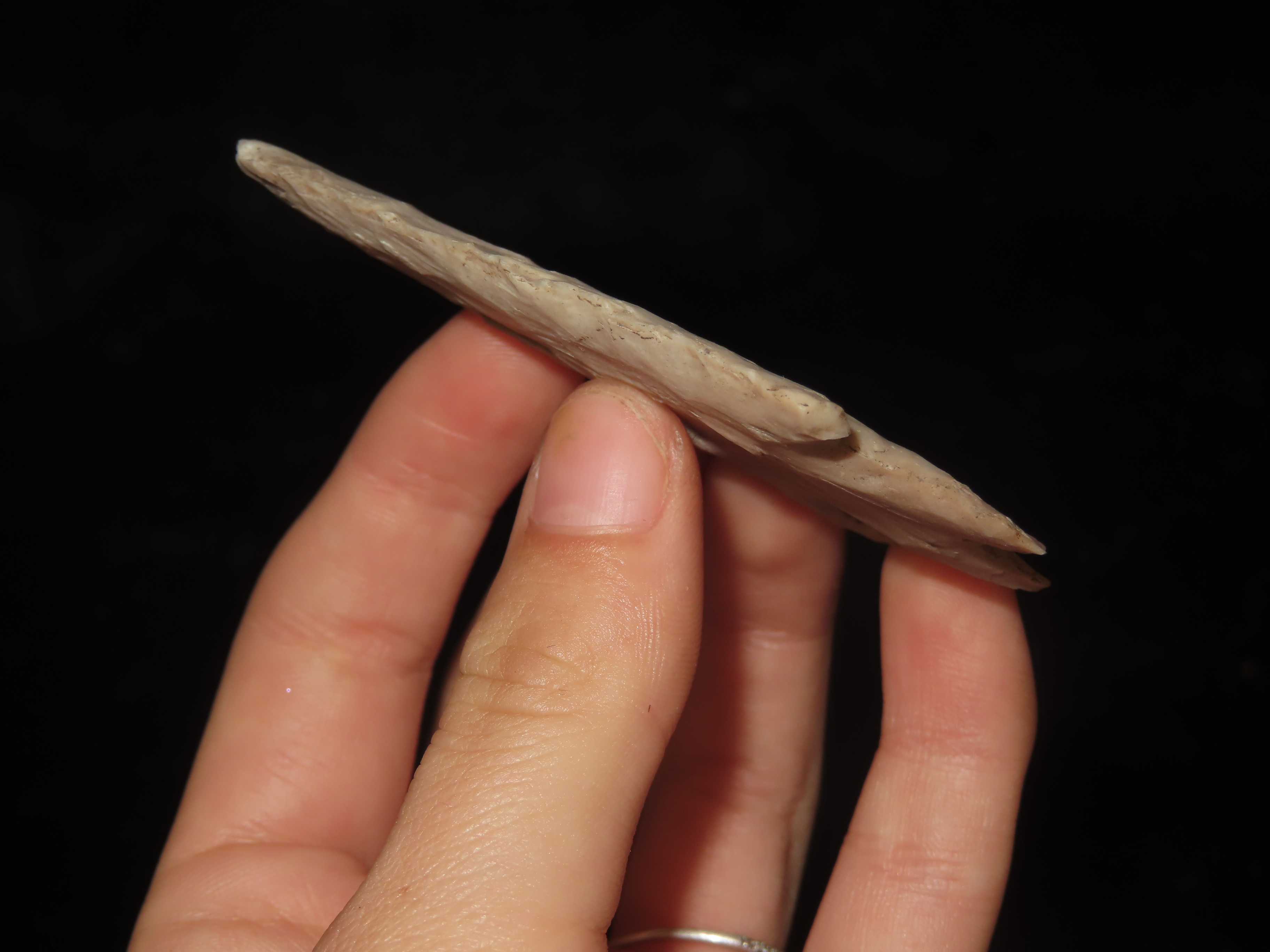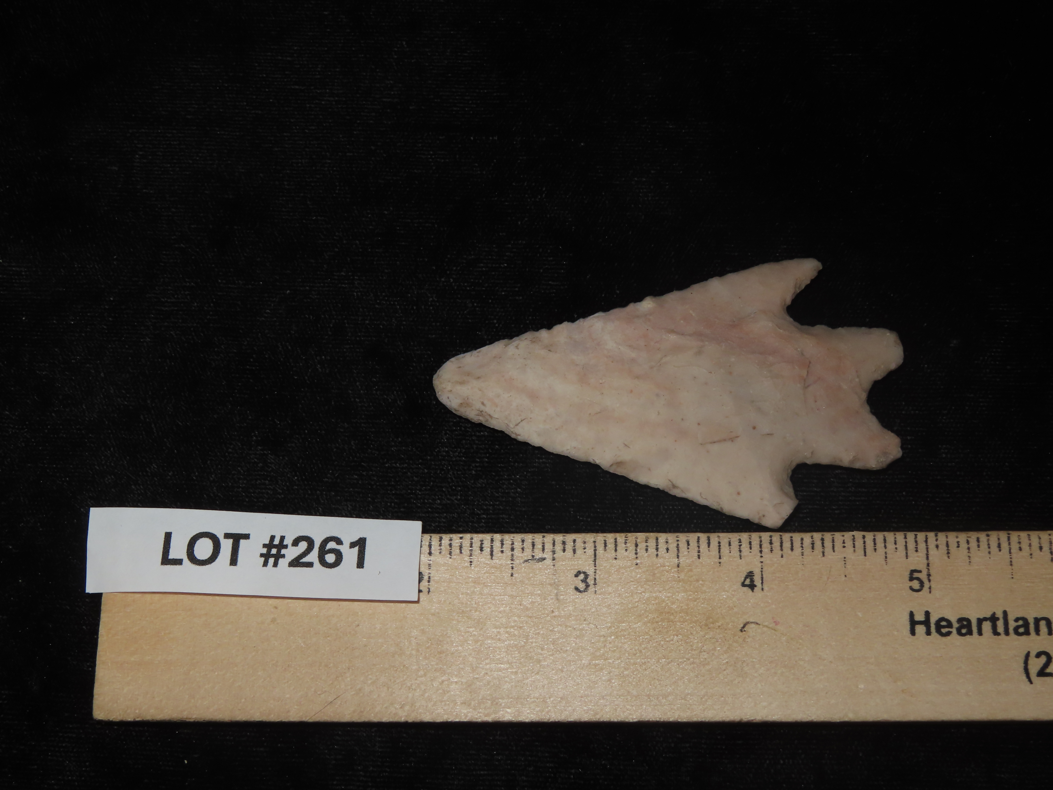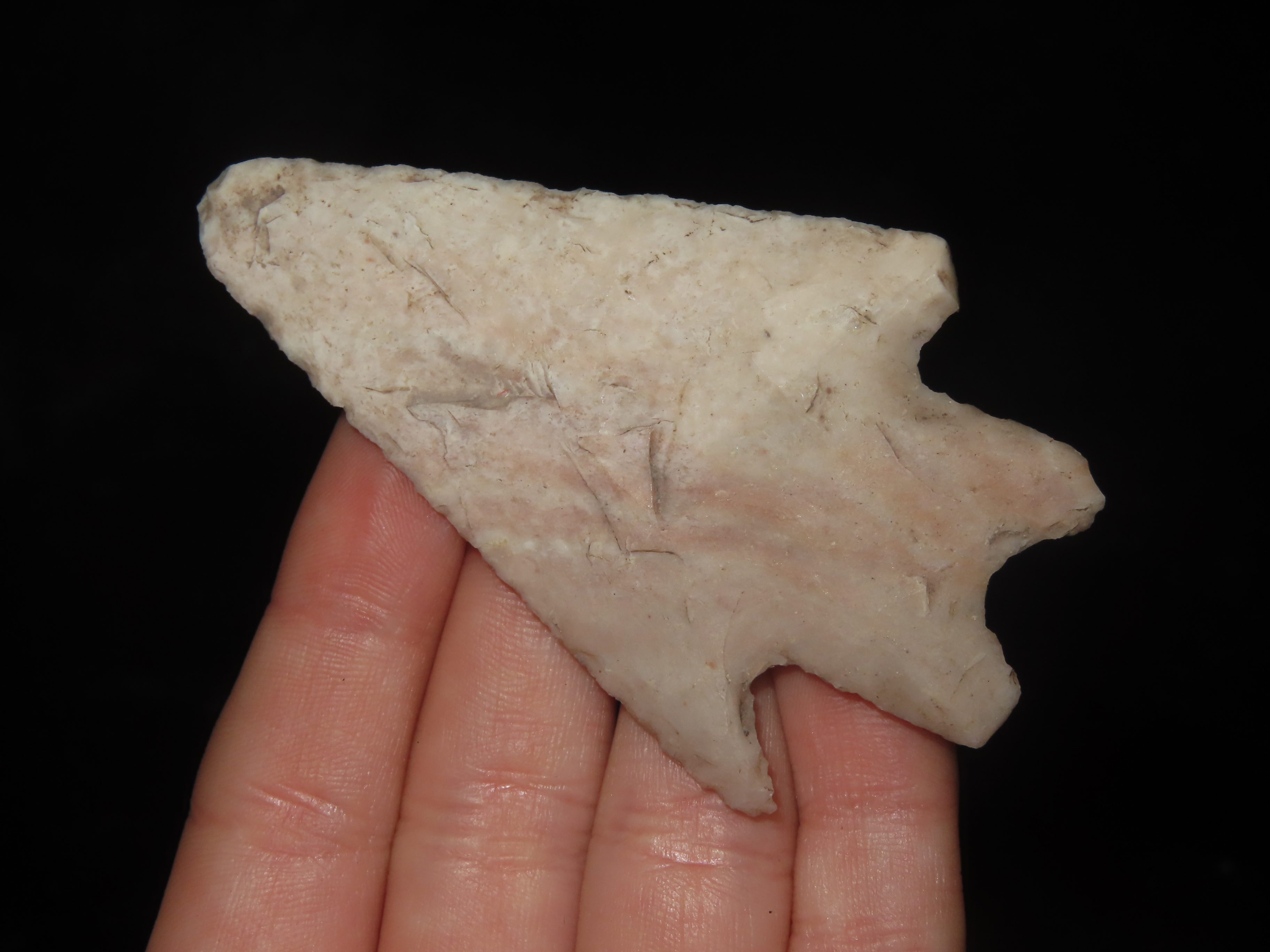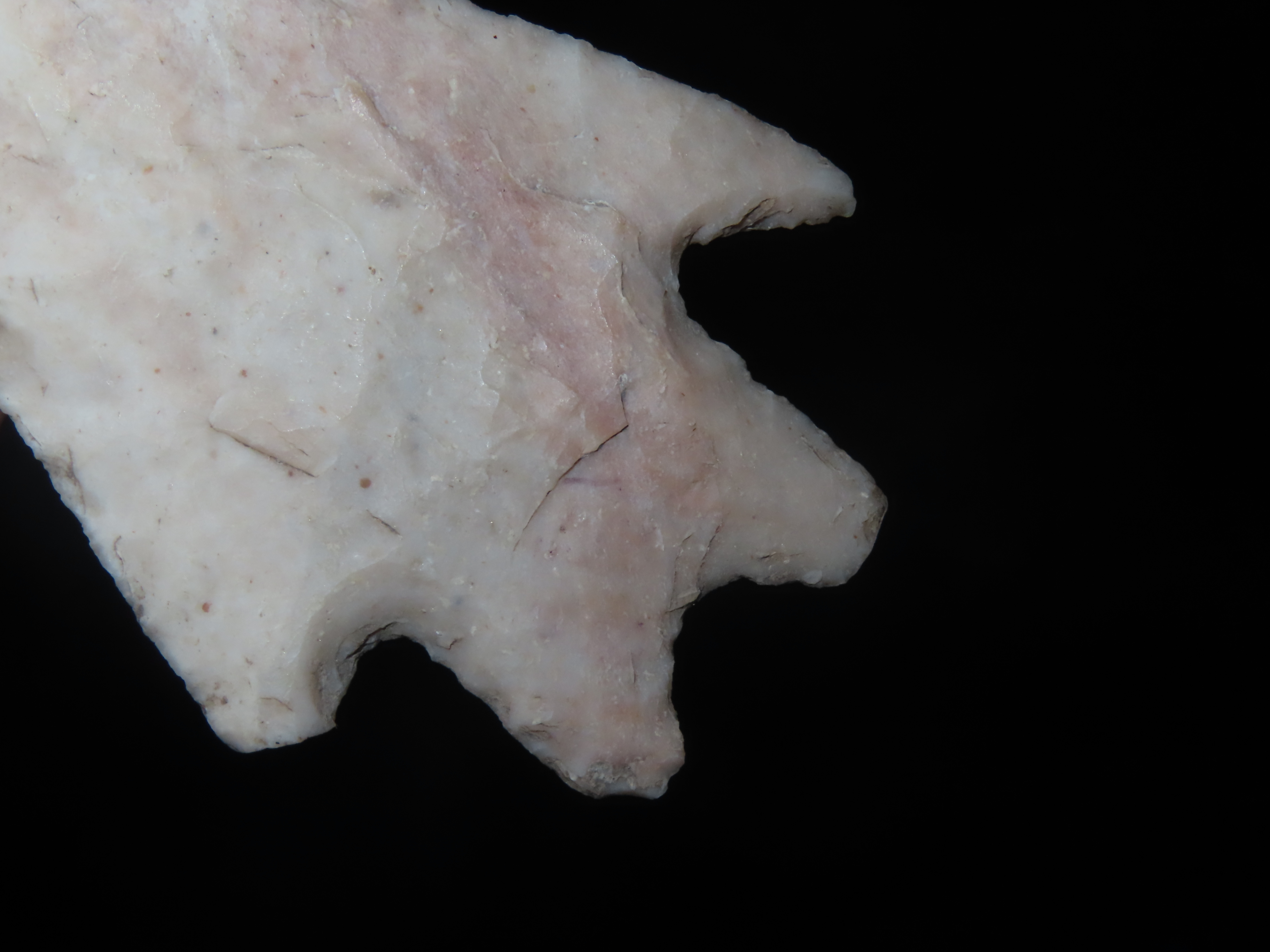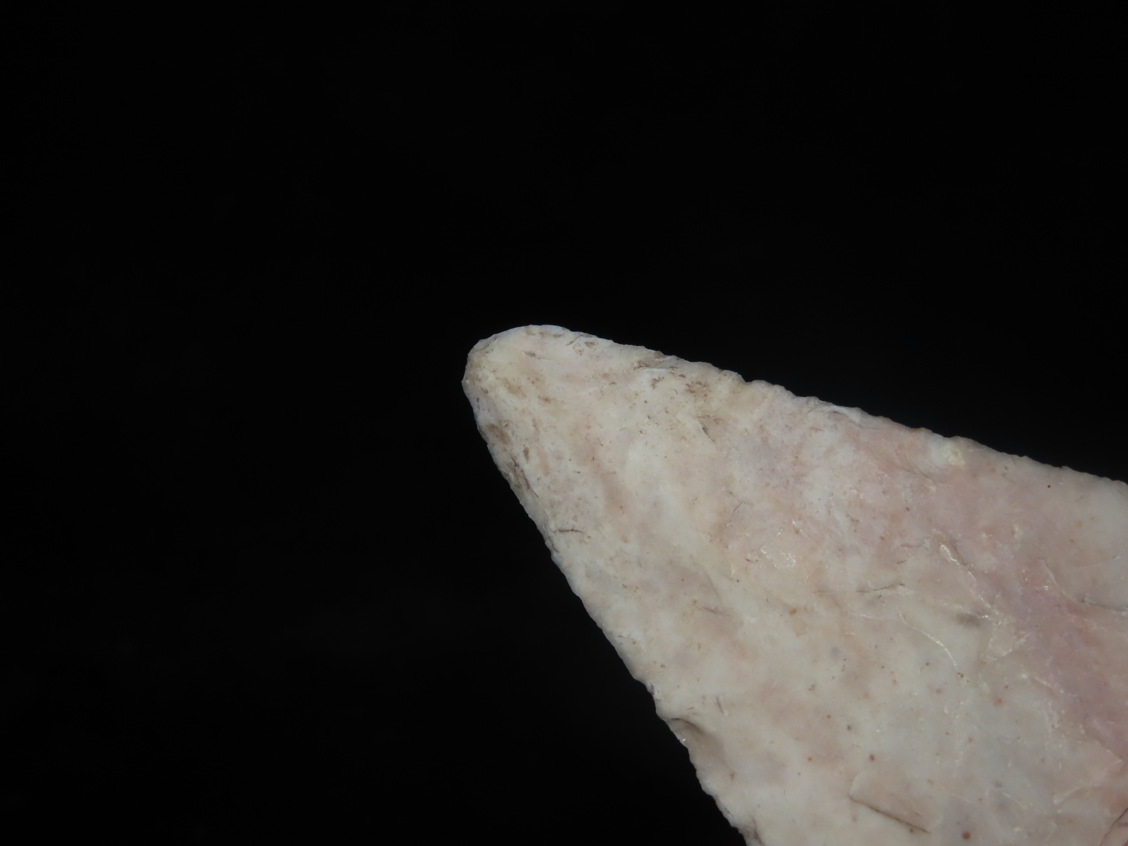 3″ Perd, Pedernales, Bell County Texas, Very Thin & Well Flaked Example with Great No Brainer Patina. Nice Larger Example, Pretty Pink & Cream Colored Chert