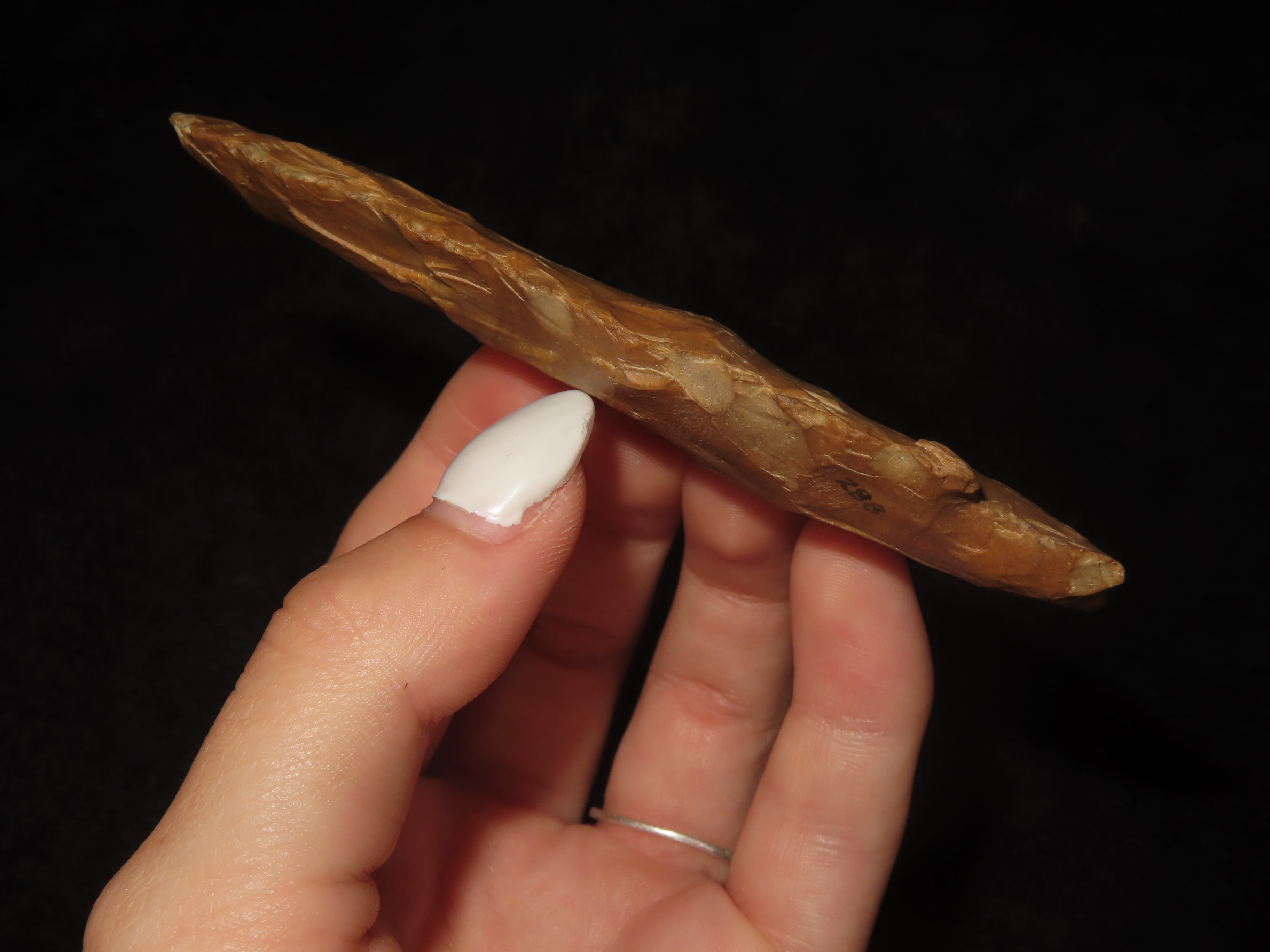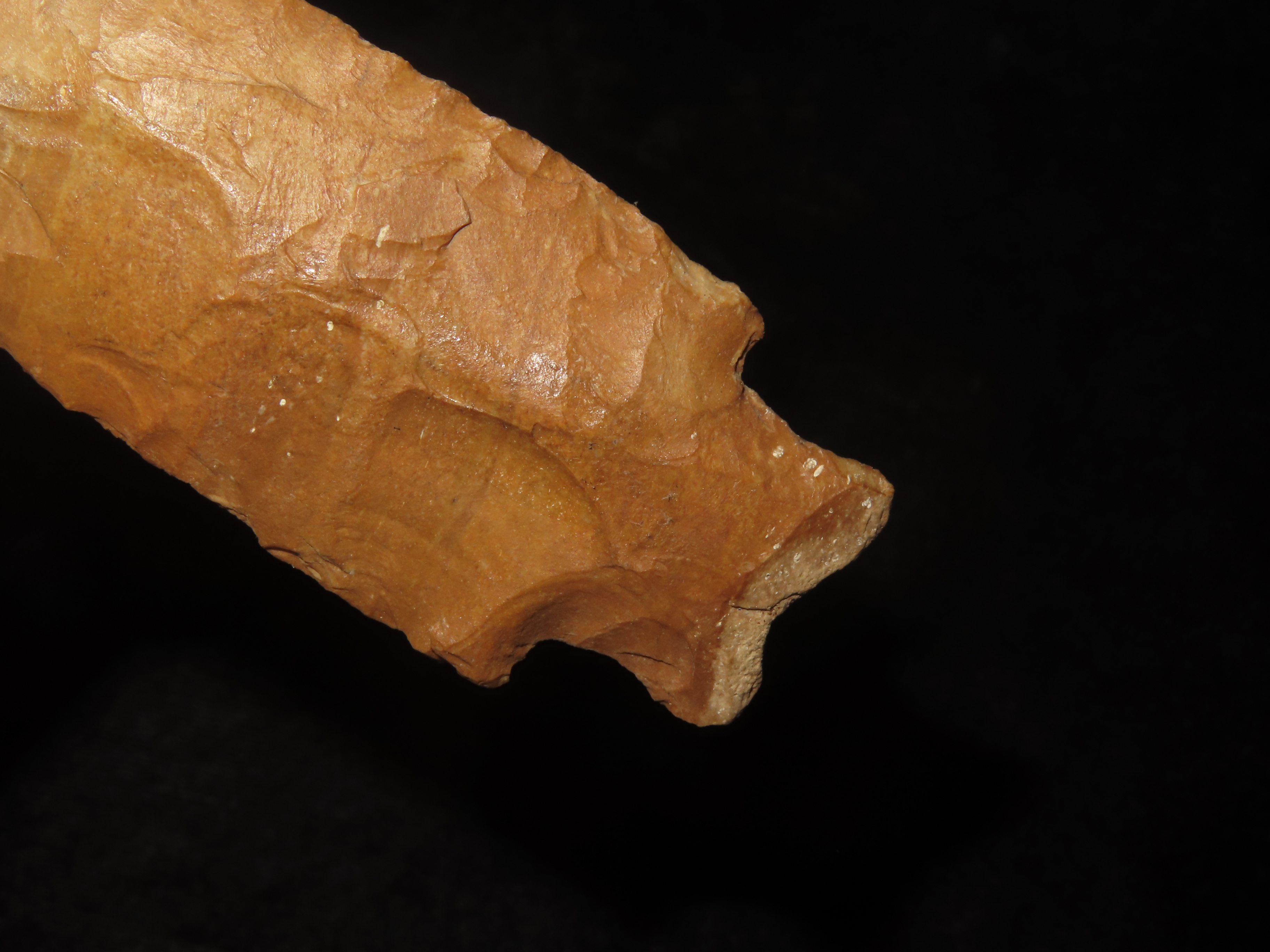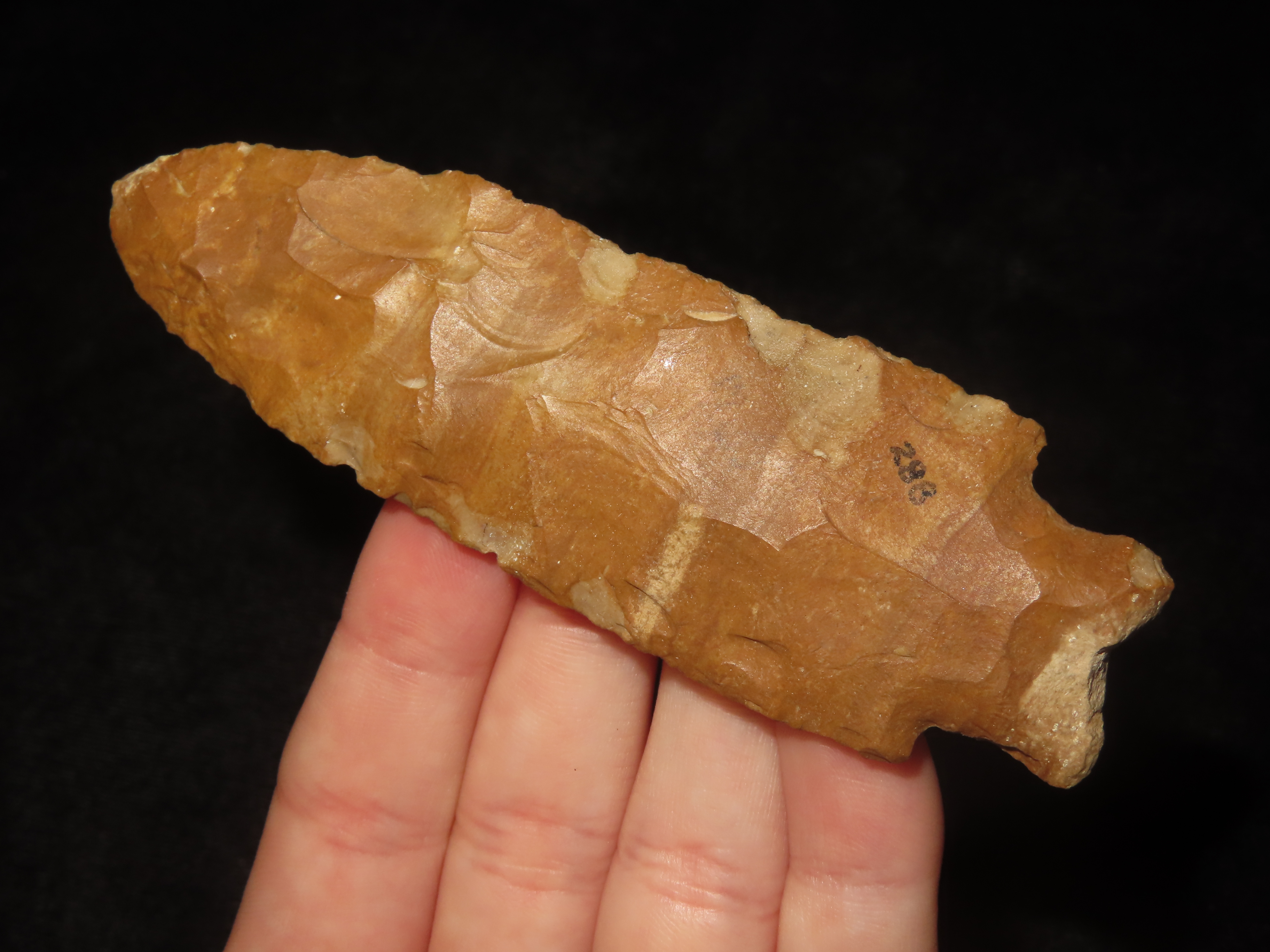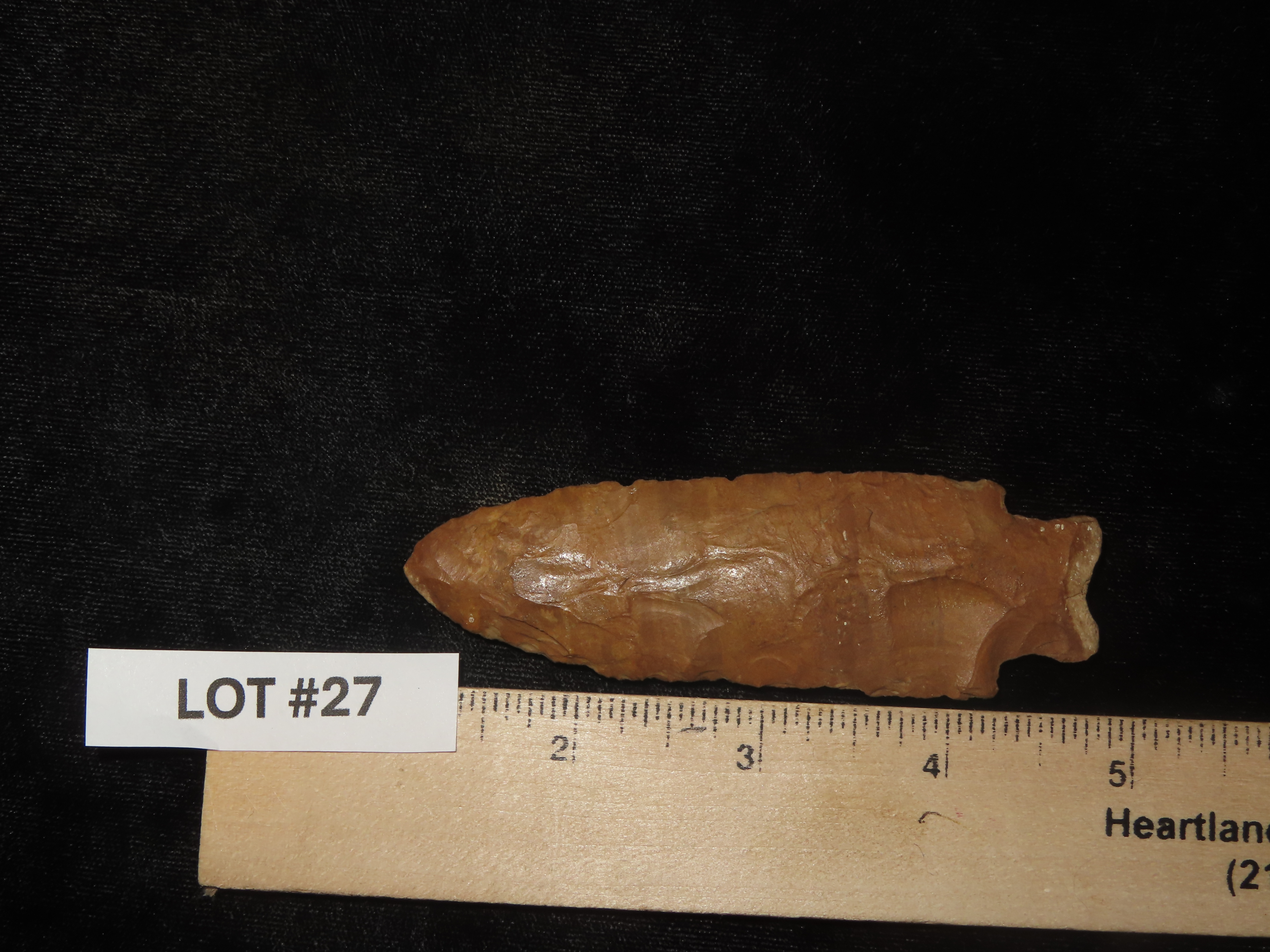3 7/8″ Heavy Duty, Ohio, Beautiful Orange Jasper, Very Well Flaked Example, Indian Arrowhead, Artifact, Spear