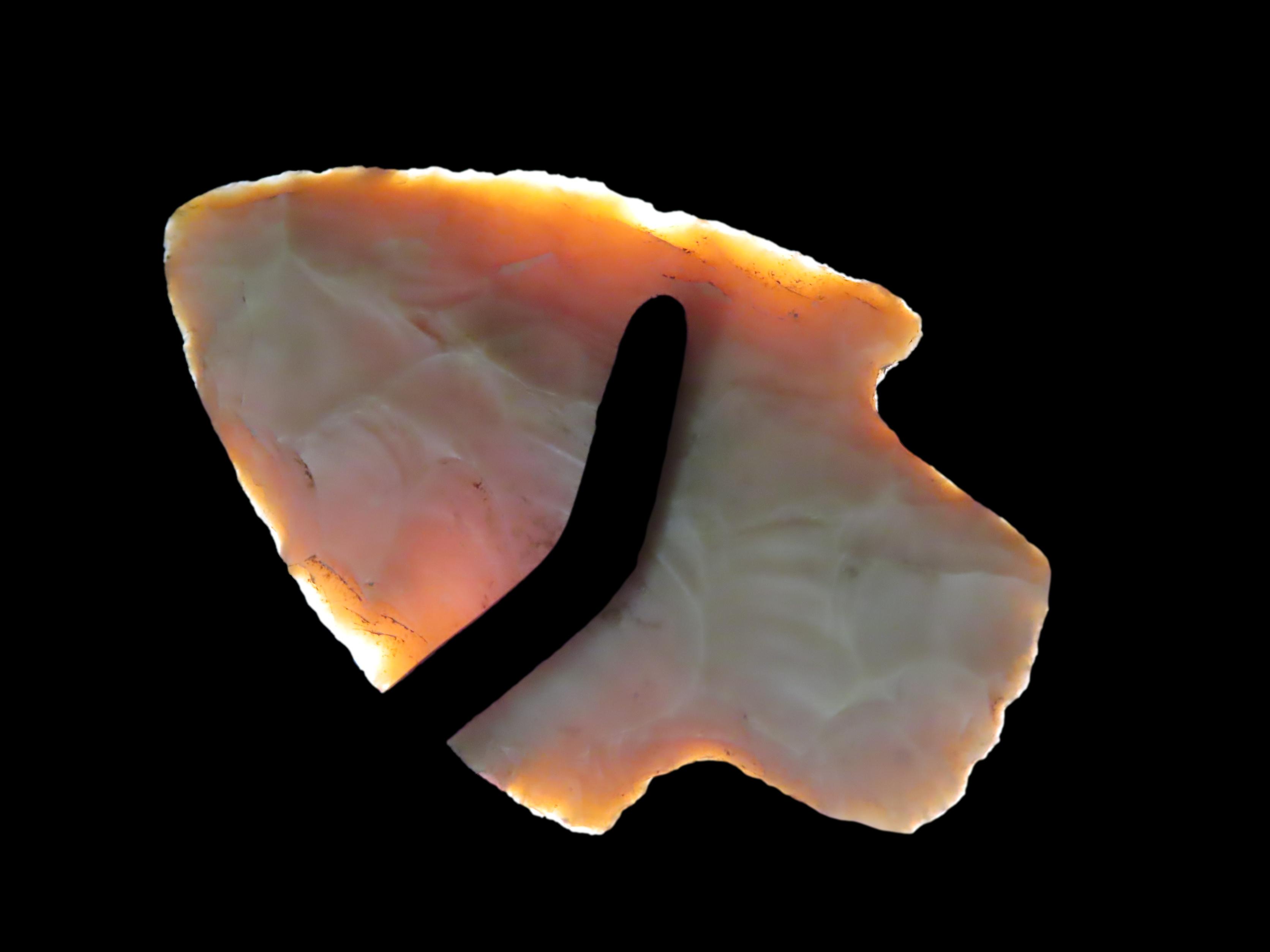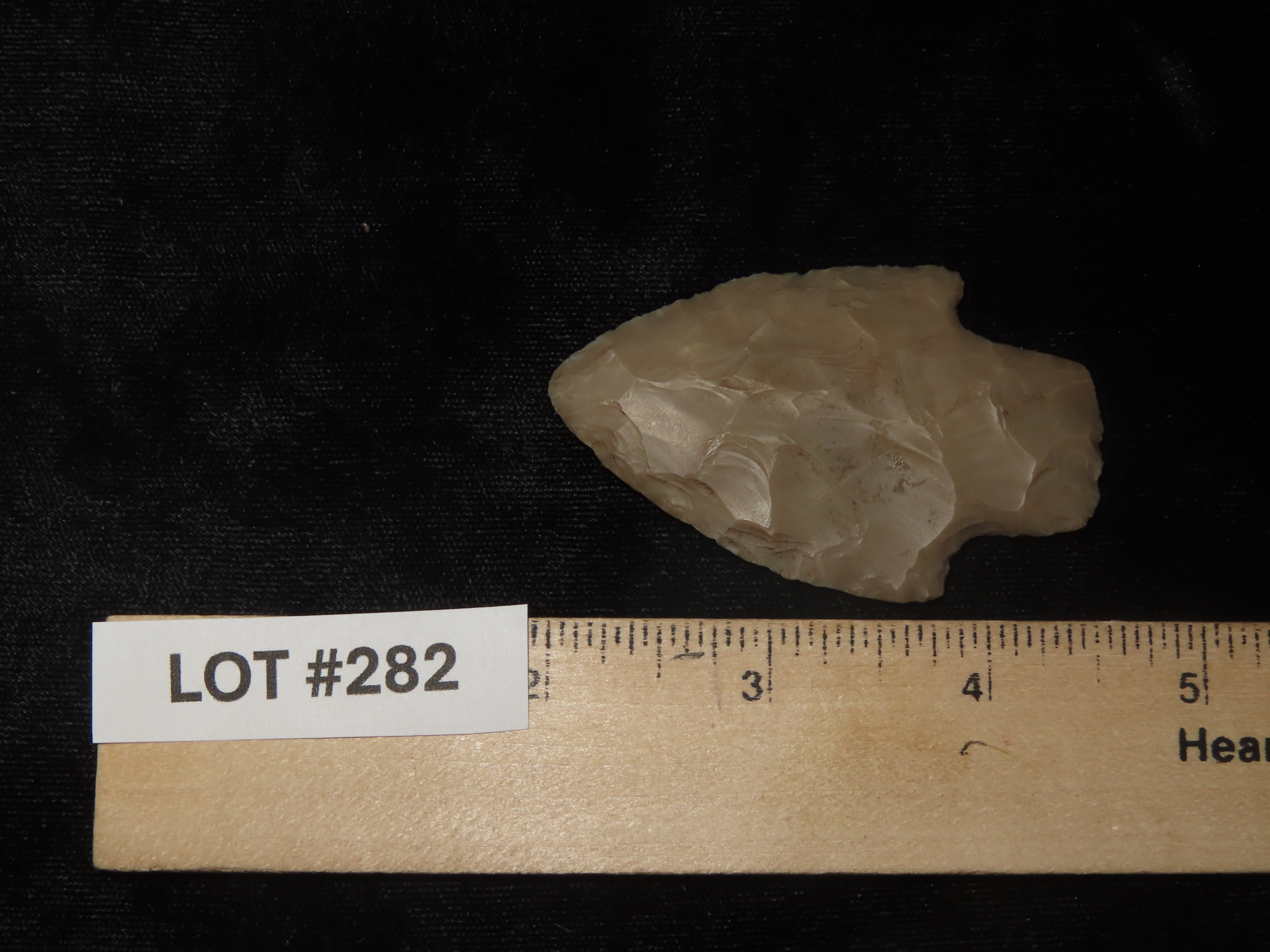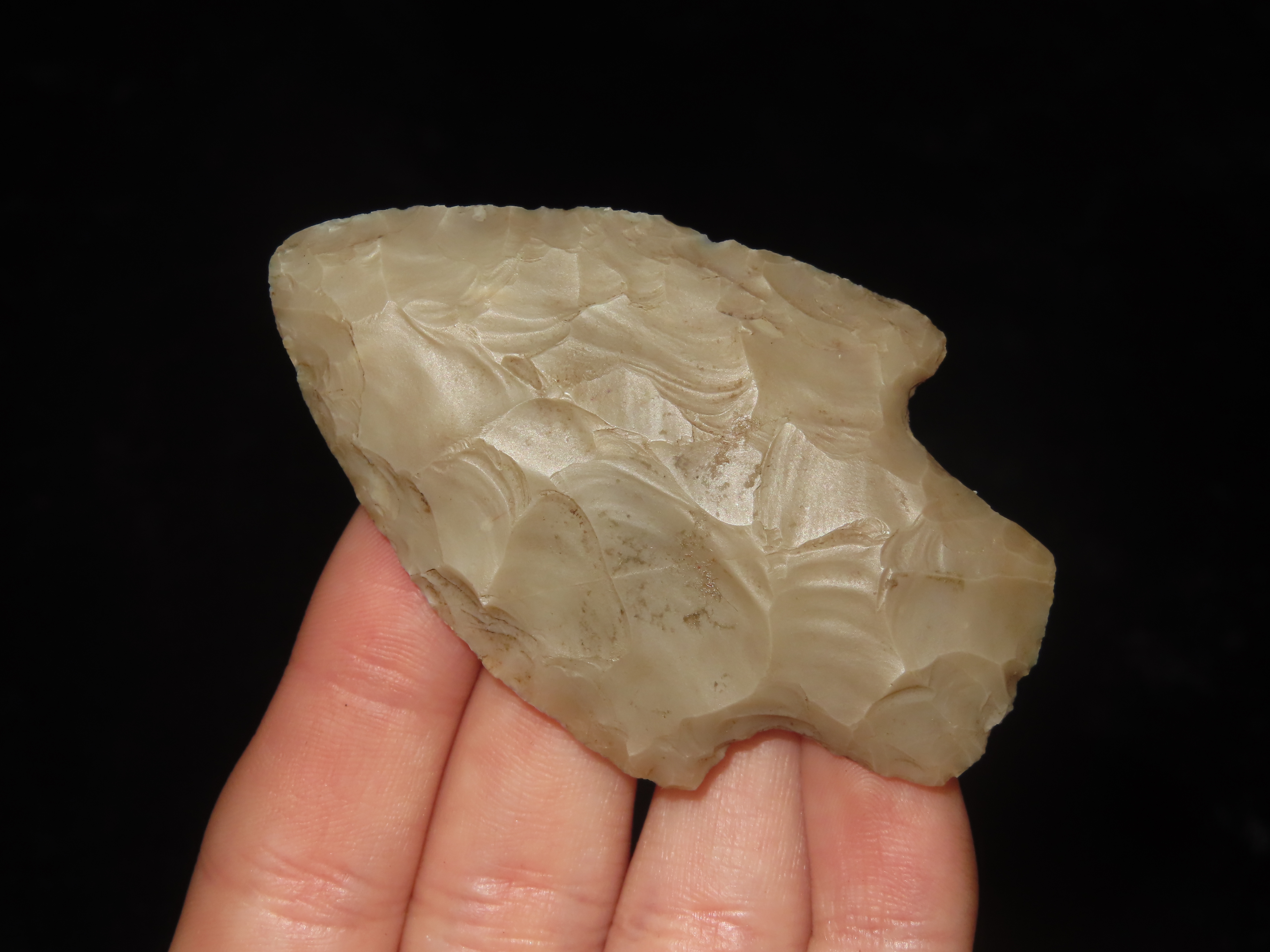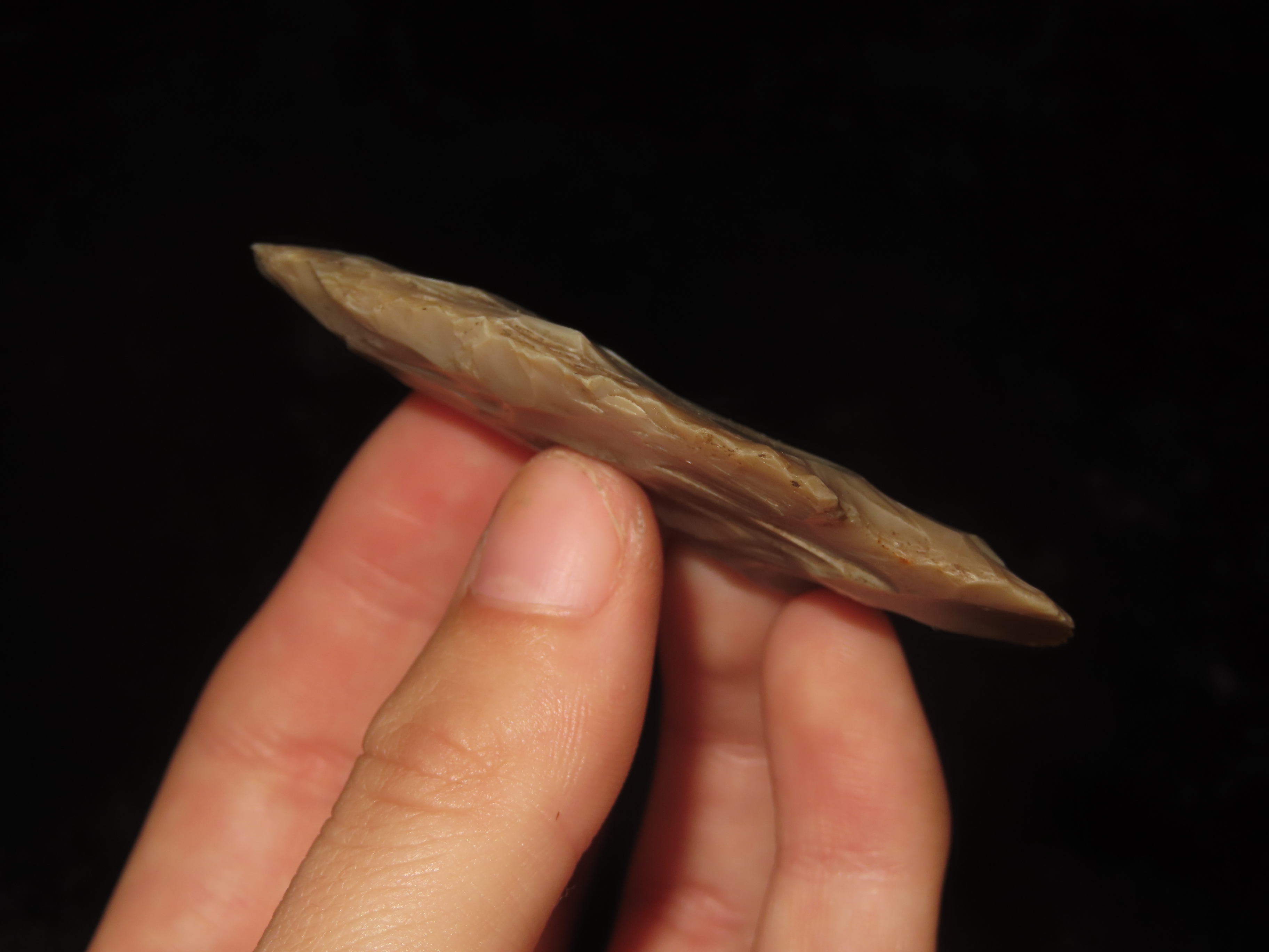 2 5/8″ Flint Ridge Robbins Adena, Ross County Ohio, Highly Translucent Piece of Ridge, Thin & Well Flaked Example with great Patina