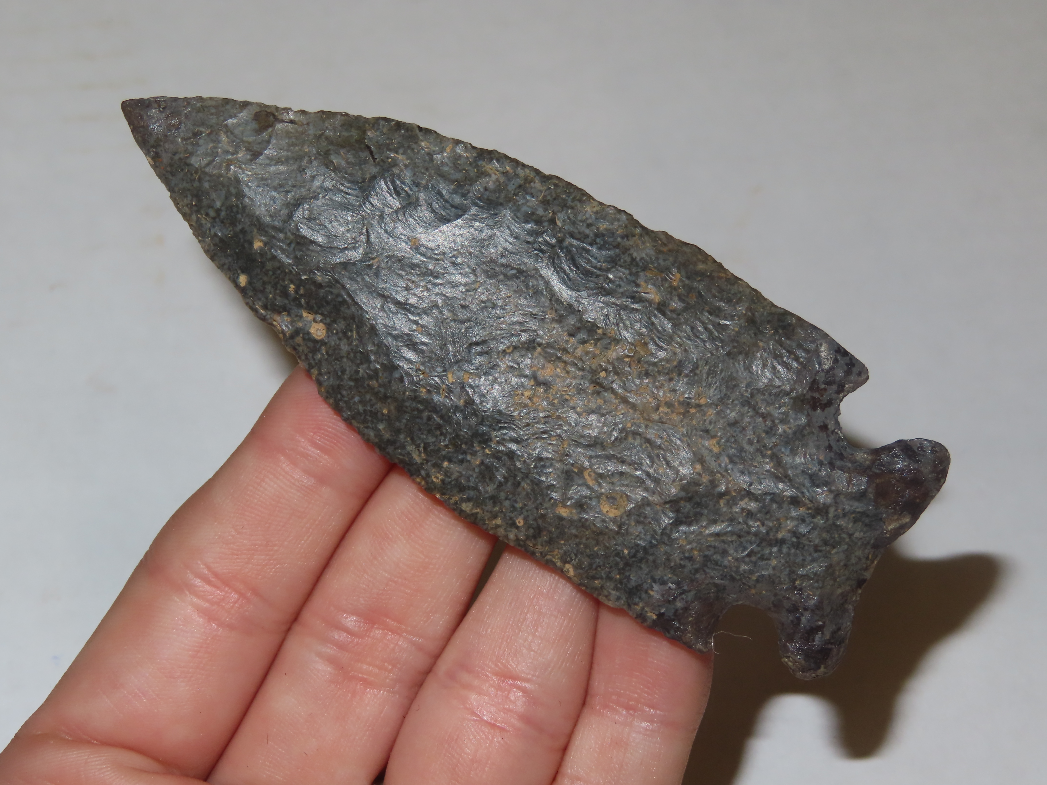 3 5/8″ Stillwell, Logan County Ohio, *Restored* Very Well Flaked Example with Minor Restoration to the last 1/8″ of the Tip and some of tips of the Ears/Basal Area.