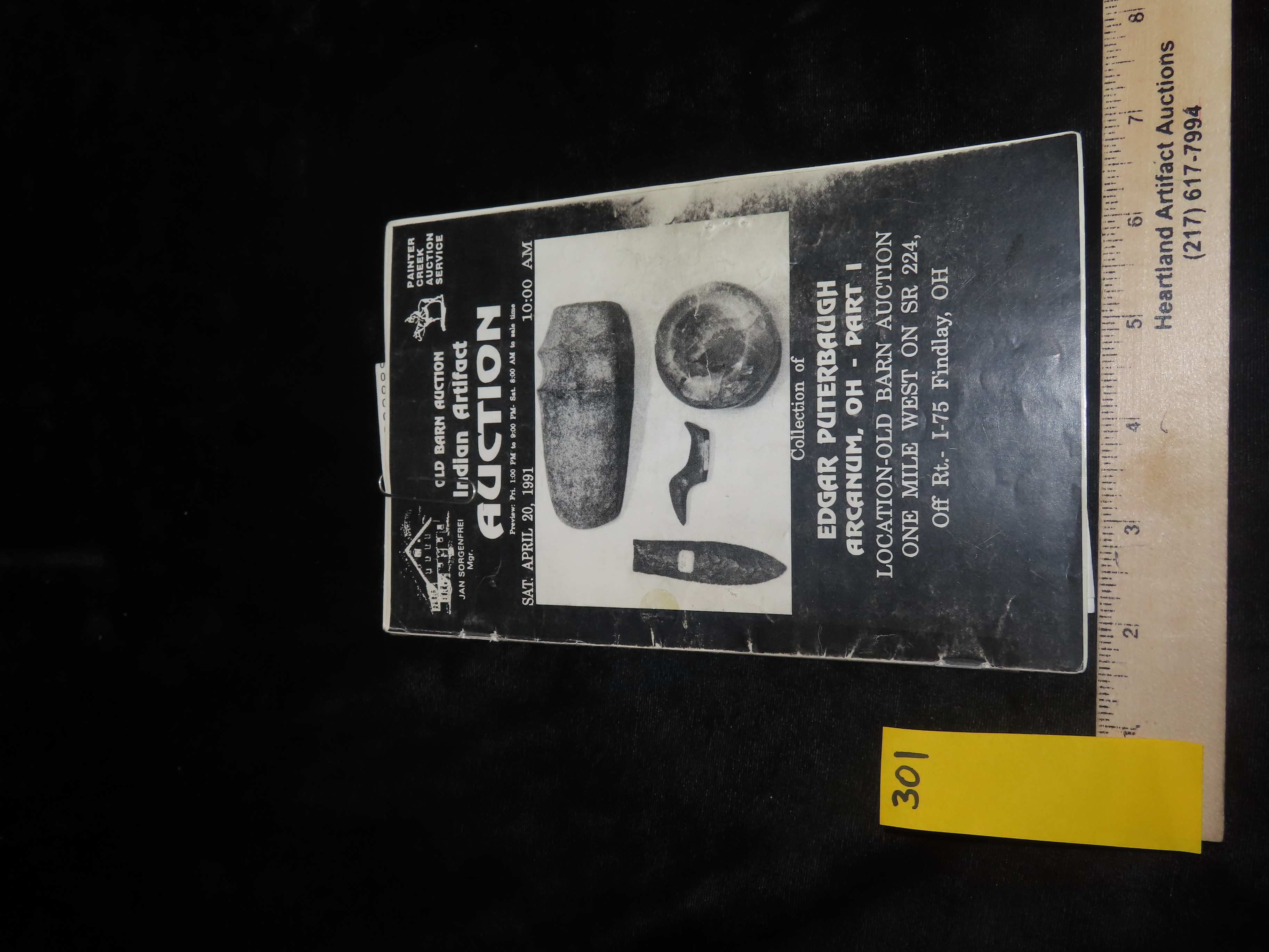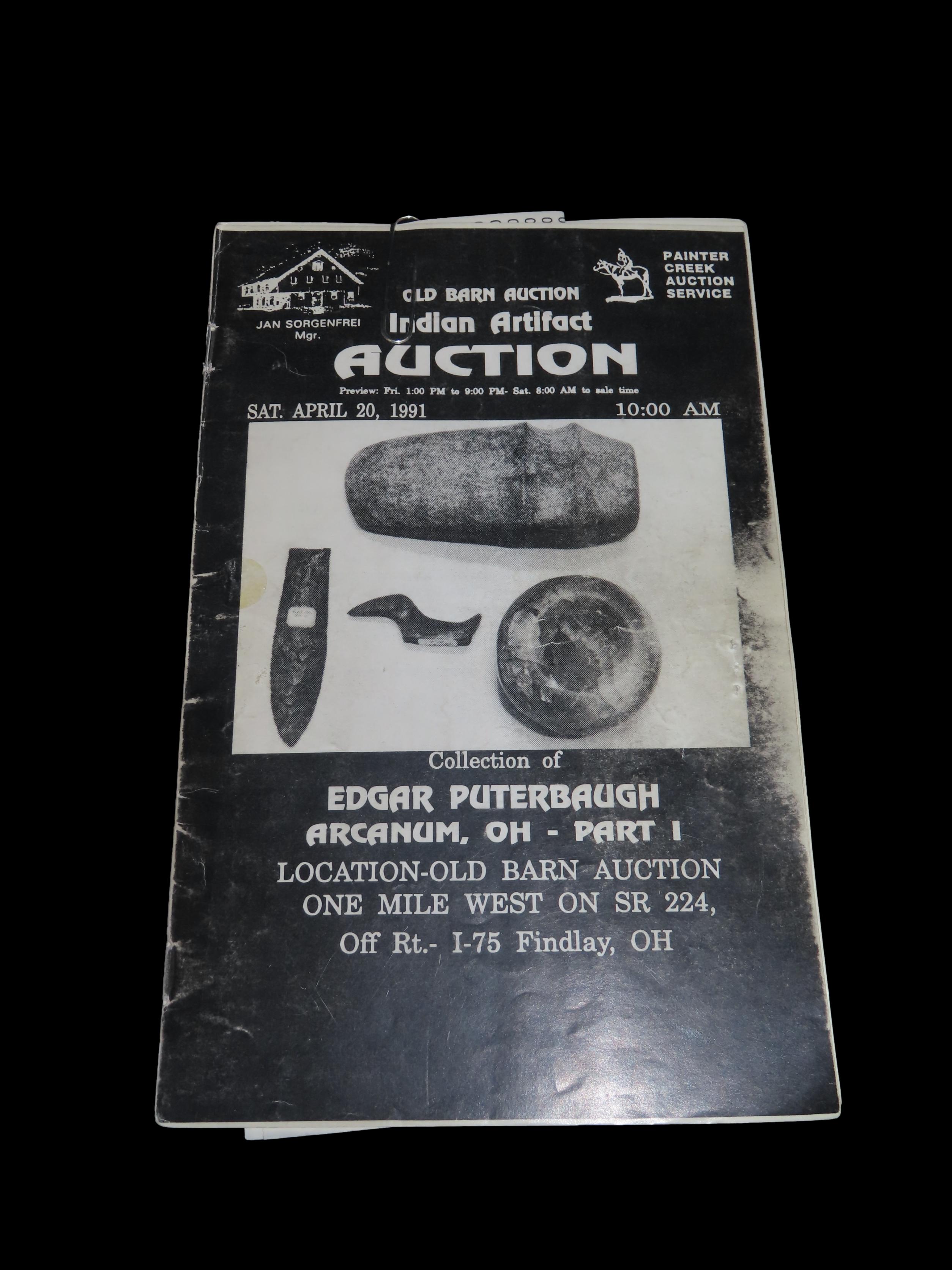 1991 Edgar Puterbaugh (ohio) Indian Artifact Collection Auction Catalog Part 1, Old Barn/Painter Creek Auction Service, Axes, Pendants & Gorgets, Bannerstones, Pottery, Arrowheads, Pipes, Birdstones, ETC. Also Includes Prices Realized List